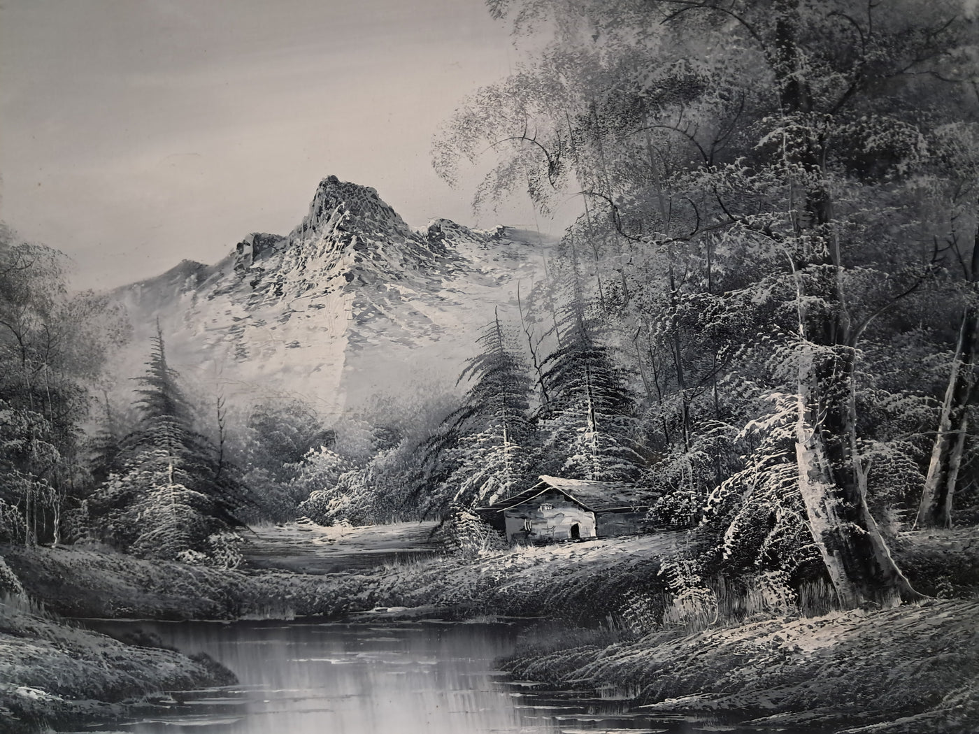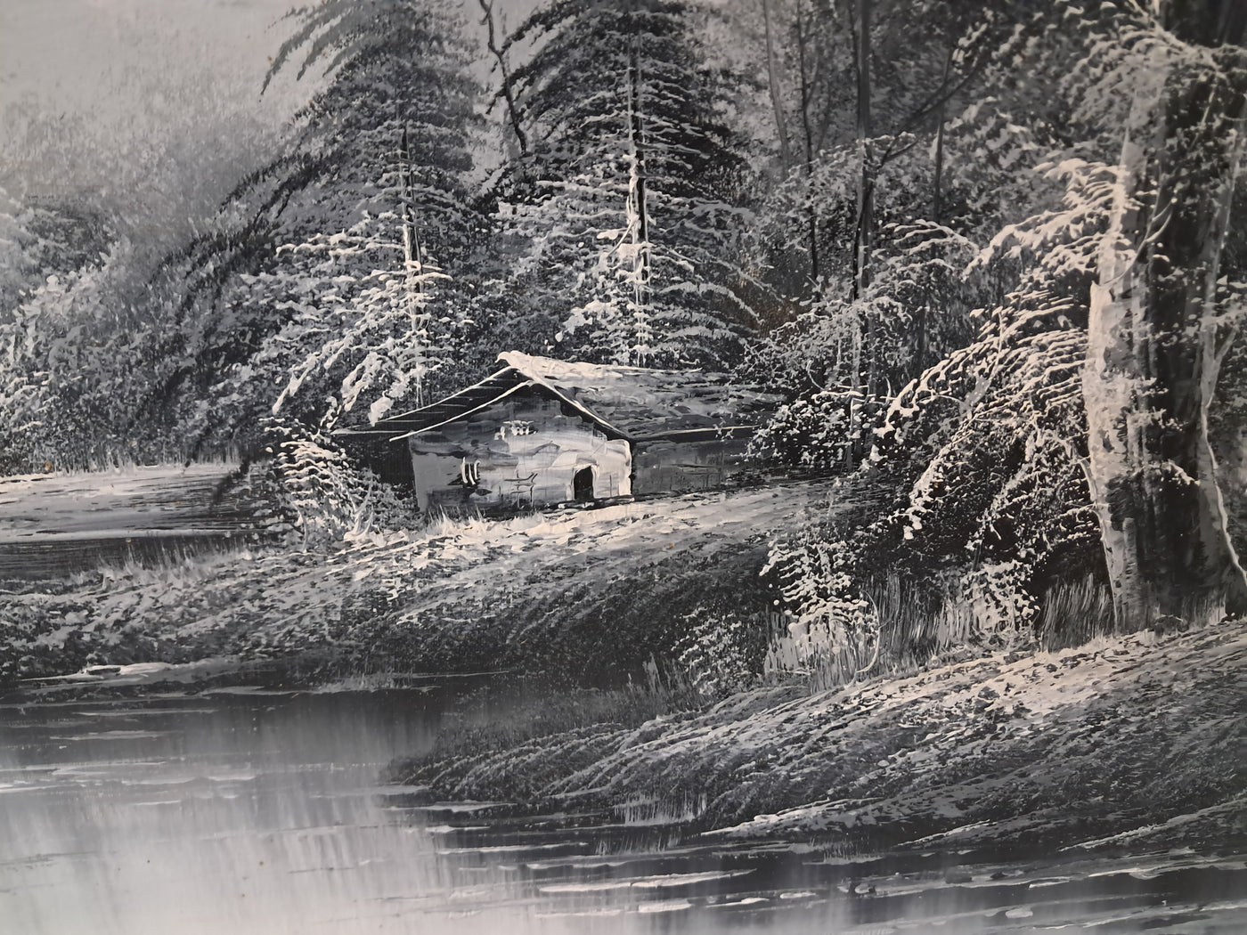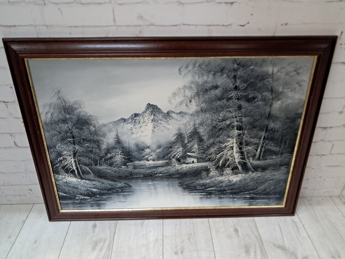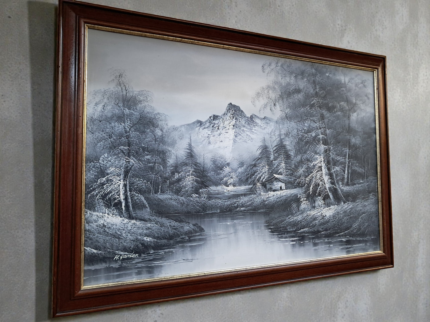 {"id":15606234775930,"title":"Large Oil Painting Black \u0026 White Winter Landscape On Canvas H Gamlen 1980 Framed","handle":"large-oil-painting-black-white-winter-landscape-on-canvas-h-gamlen-1980-framed","description":"\u003cdiv\u003e\n\u003cdiv\u003e\n\u003cdiv\u003e\u003cstrong\u003eLarge Vintage Black \u0026amp; White Winter Landscape Oil Painting On Canvas by H. Gamlen – 1980s – Framed \u0026amp; Signed\u003c\/strong\u003e\u003c\/div\u003e\n\u003cdiv\u003e\u003cbr\u003e\u003c\/div\u003e\n\u003cdiv\u003eThis large and atmospheric black and white winter landscape oil painting, signed by H. Gamlen and dating from the 1980s, is a striking and evocative work that brings a sense of calm, depth, and quiet drama to any interior. It is in superb condition.\u003c\/div\u003e\n\u003cdiv\u003e\u003cbr\u003e\u003c\/div\u003e\n\u003cdiv\u003eThe composition centres on a tranquil river winding through a snow-covered woodland, leading the eye towards a softly misted mountain in the distance. Bare winter trees frame the scene beautifully, their frost-laden branches rendered with delicate detail. Nestled discreetly among the trees is a small woodland cabin, adding warmth and narrative to the otherwise untouched landscape.\u003c\/div\u003e\n\u003cdiv\u003e\u003cbr\u003e\u003c\/div\u003e\n\u003cdiv\u003eThe restrained monochrome palette enhances the mood of the painting, allowing light, texture, and contrast to take precedence. It is easy to imagine sitting inside that secluded cabin on a cold winter’s day, the glow of a log fire inside while the frozen stillness outside remains undisturbed. The painting has a timeless, contemplative quality that invites the viewer to pause and escape.\u003c\/div\u003e\n\u003cdiv\u003e\u003cbr\u003e\u003c\/div\u003e\n\u003cdiv\u003ePresented in a substantial mahogany frame with an elegant speckled gold inner border, the artwork has a strong and confident presence. The frame complements the painting perfectly, adding warmth and refinement without overpowering the composition.\u003c\/div\u003e\n\u003cdiv\u003e\u003cbr\u003e\u003c\/div\u003e\n\u003cdiv\u003eThis is a commanding piece, ideal as a focal point above a fireplace, in a living room, study, or country home interior. It will appeal to collectors, interior designers, and those who appreciate expressive landscape art with atmosphere and narrative.\u003c\/div\u003e\n\u003cdiv\u003e\u003cb\u003e\u003cbr\u003e\u003c\/b\u003e\u003c\/div\u003e\n\u003cdiv\u003e\u003cb\u003eMeasurements:\u003c\/b\u003e\u003c\/div\u003e\n\u003cdiv\u003eOverall including frame: 103cm L x 72cm H x 3cm D\u003c\/div\u003e\n\u003cdiv\u003eActual canvas: 90cm L x 60cm H\u003c\/div\u003e\n\u003cdiv\u003e\u003cbr\u003e\u003c\/div\u003e\n\u003cdiv\u003eOur motto is to reuse and recycle these wonderful antique and vintage items so that they get a new lease of life and at the same time you will have a unique, personal item of good quality in your home that will also contribute to the world's carbon footprint. We owe it to our future generations NOT to be a throwaway society.\u003c\/div\u003e\n\u003cdiv\u003e\u003cbr\u003e\u003c\/div\u003e\n\u003cdiv\u003eThe delivery quoted in this listing is for mainland UK only.\u003c\/div\u003e\n\u003cdiv\u003ePlease contact us for a delivery quote to Cornwall, Scotland, Highlands or Islands or Offshore UK, Northern Ireland, Jersey, Guernsey, IOW, etc as it may be more than the price quoted.\u003c\/div\u003e\n\u003cdiv\u003e\u003cbr\u003e\u003c\/div\u003e\n\u003cdiv\u003eThis item is available to view at our showroom RetroNovia , 12 New Pond Parade, West End Road, Ruislip Gardens, Middlesex HA4 6LR . Please call us on 01895 675596 to make sure the item is available before coming to view.\u003c\/div\u003e\n\u003cdiv\u003e\u003cbr\u003e\u003c\/div\u003e\n\u003cdiv\u003eWe are located easy access from London and Oxford and are directly off the Main A40 Polish War memorial junction.\u003c\/div\u003e\n\u003c\/div\u003e\n\u003c\/div\u003e","published_at":"2026-01-07T11:32:36+00:00","created_at":"2026-01-07T11:32:36+00:00","vendor":"H Gamlen","type":"Art","tags":["Art","Impressionist","Oil Painting","Woodland"],"price":15000,"price_min":15000,"price_max":15000,"available":true,"price_varies":false,"compare_at_price":null,"compare_at_price_min":0,"compare_at_price_max":0,"compare_at_price_varies":false,"variants":[{"id":56428048187770,"title":"Default Title","option1":"Default Title","option2":null,"option3":null,"sku":"1551","requires_shipping":true,"taxable":false,"featured_image":null,"available":true,"name":"Large Oil Painting Black \u0026 White Winter Landscape On Canvas H Gamlen 1980 Framed","public_title":null,"options":["Default Title"],"price":15000,"weight":50000,"compare_at_price":null,"inventory_management":"shopify","barcode":null,"requires_selling_plan":false,"selling_plan_allocations":[]}],"images":["\/\/retronovia.co.uk\/cdn\/shop\/files\/Oil_on_canvas_black_and_white_landscape_1.jpg?v=1767785623","\/\/retronovia.co.uk\/cdn\/shop\/files\/Oil_on_canvas_black_and_white_landscape_2.jpg?v=1767785623","\/\/retronovia.co.uk\/cdn\/shop\/files\/Oil_on_canvas_black_and_white_landscape_3.jpg?v=1767785623","\/\/retronovia.co.uk\/cdn\/shop\/files\/Oil_on_canvas_black_and_white_landscape_4.jpg?v=1767785623","\/\/retronovia.co.uk\/cdn\/shop\/files\/Oil_on_canvas_black_and_white_landscape_5.jpg?v=1767785622","\/\/retronovia.co.uk\/cdn\/shop\/files\/Oil_on_canvas_black_and_white_landscape_6.jpg?v=1767785623","\/\/retronovia.co.uk\/cdn\/shop\/files\/Oil_on_canvas_black_and_white_landscape_7.jpg?v=1767785622","\/\/retronovia.co.uk\/cdn\/shop\/files\/Oil_on_canvas_black_and_white_landscape_8.jpg?v=1767785622","\/\/retronovia.co.uk\/cdn\/shop\/files\/Oil_on_canvas_black_and_white_landscape_9.jpg?v=1767785622","\/\/retronovia.co.uk\/cdn\/shop\/files\/Oil_on_canvas_black_and_white_landscape_10.jpg?v=1767785623","\/\/retronovia.co.uk\/cdn\/shop\/files\/Oil_on_canvas_black_and_white_landscape_11.jpg?v=1767785622","\/\/retr