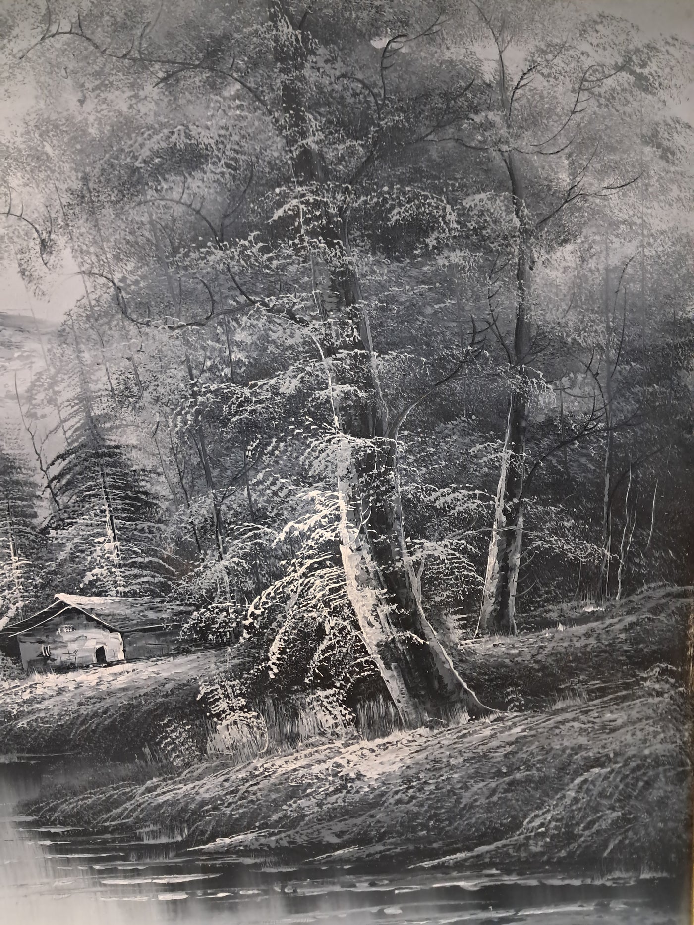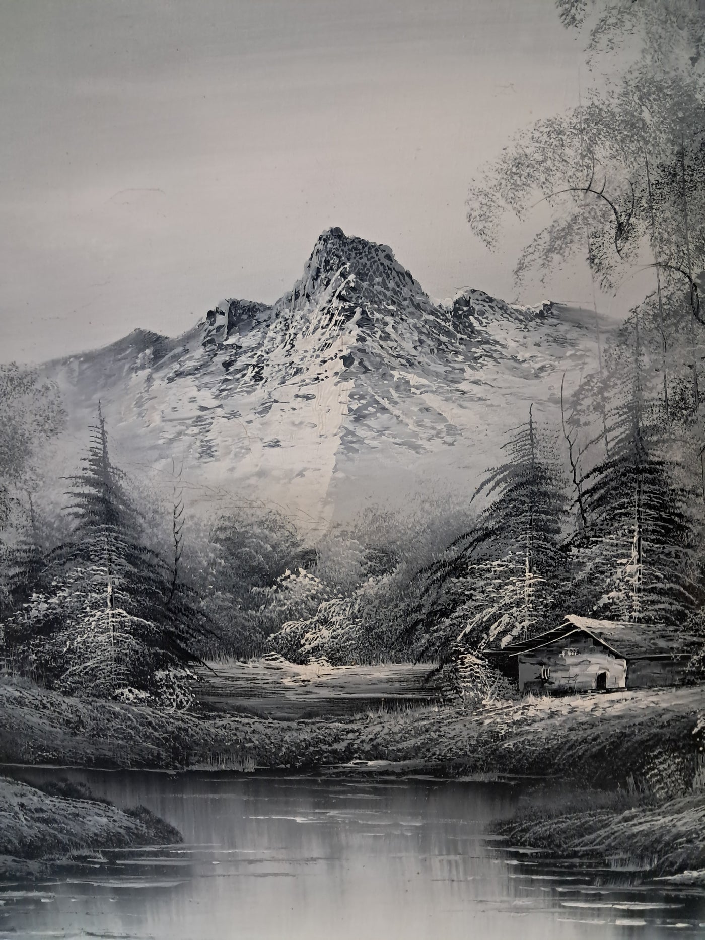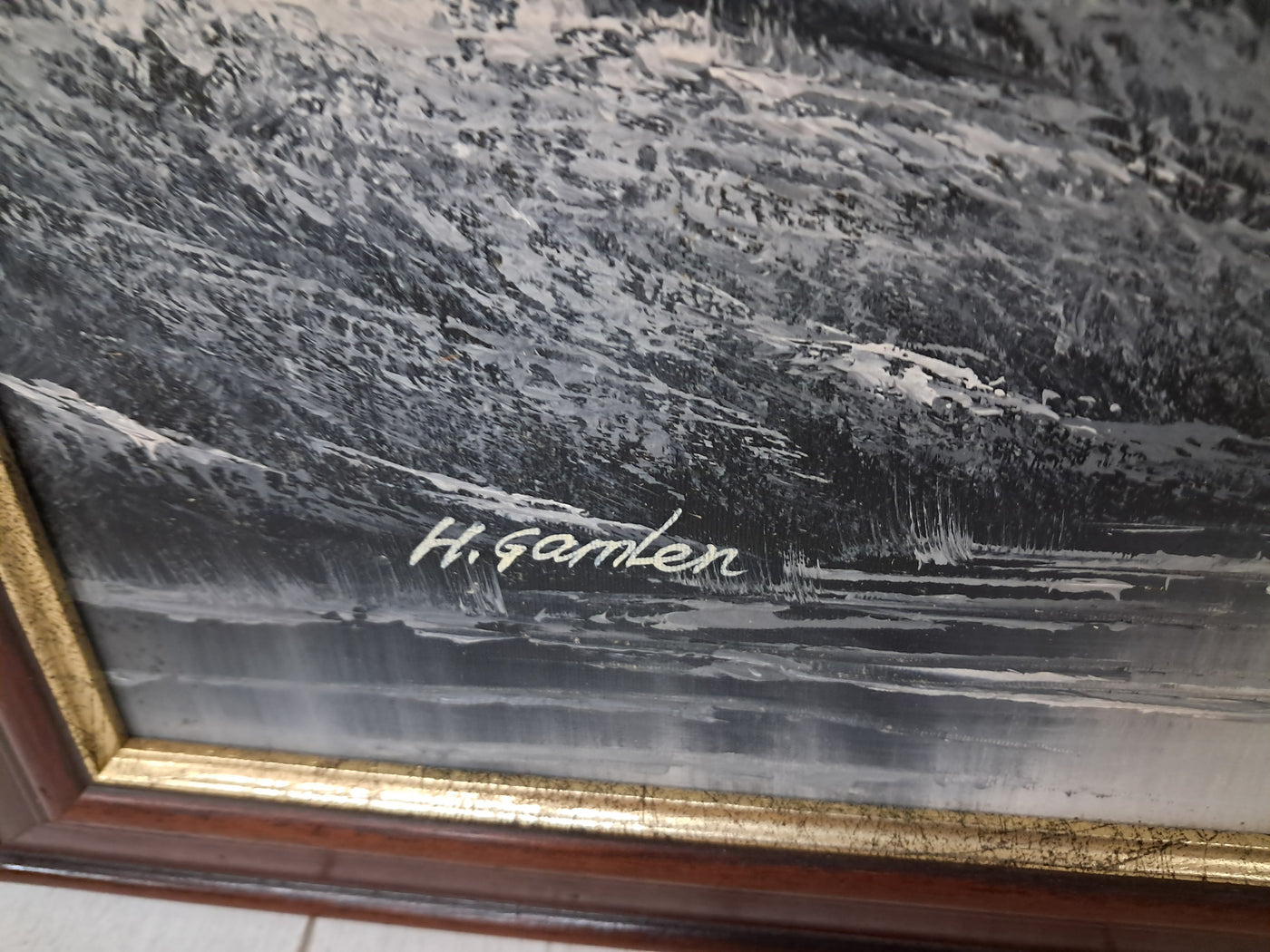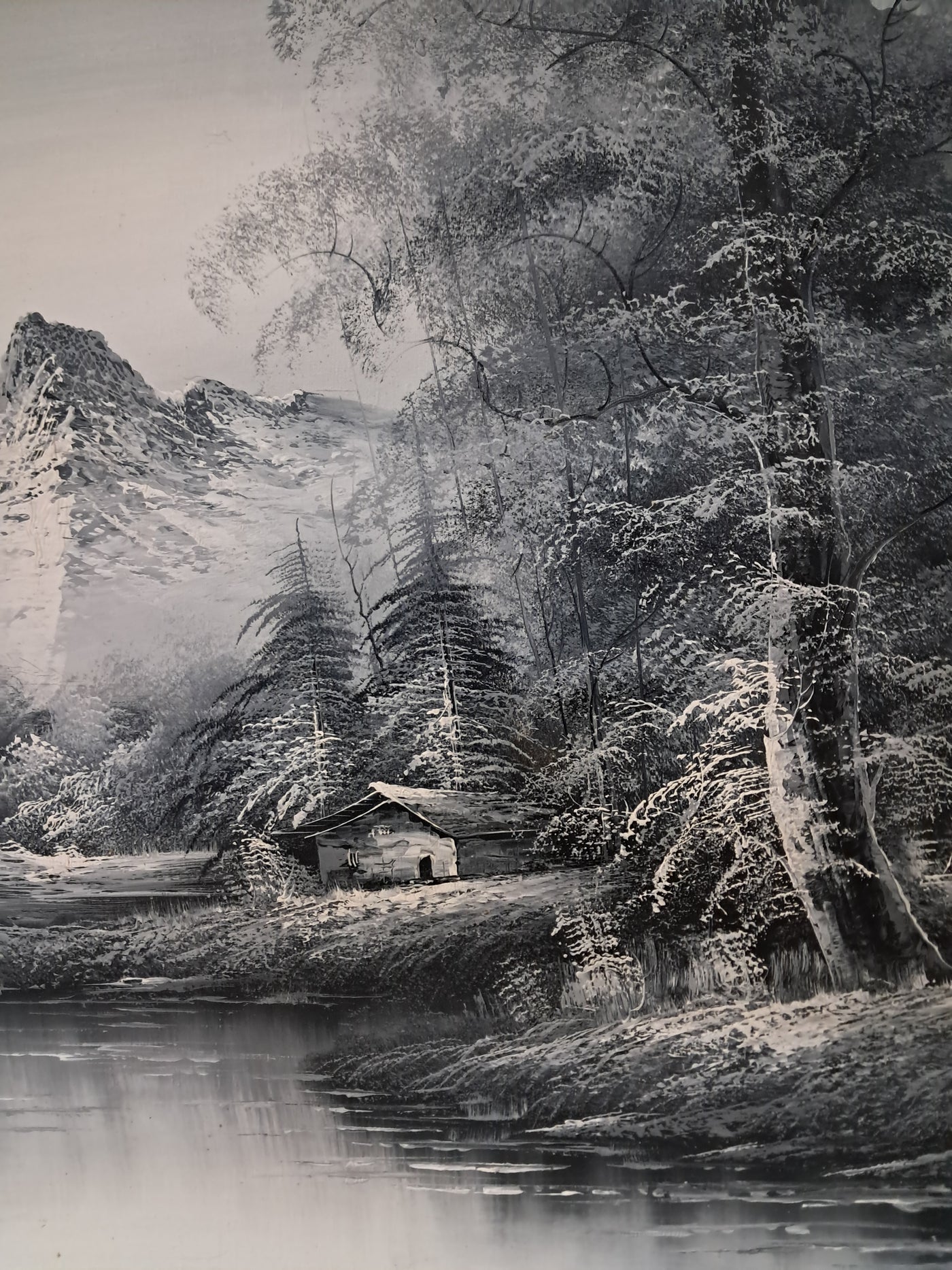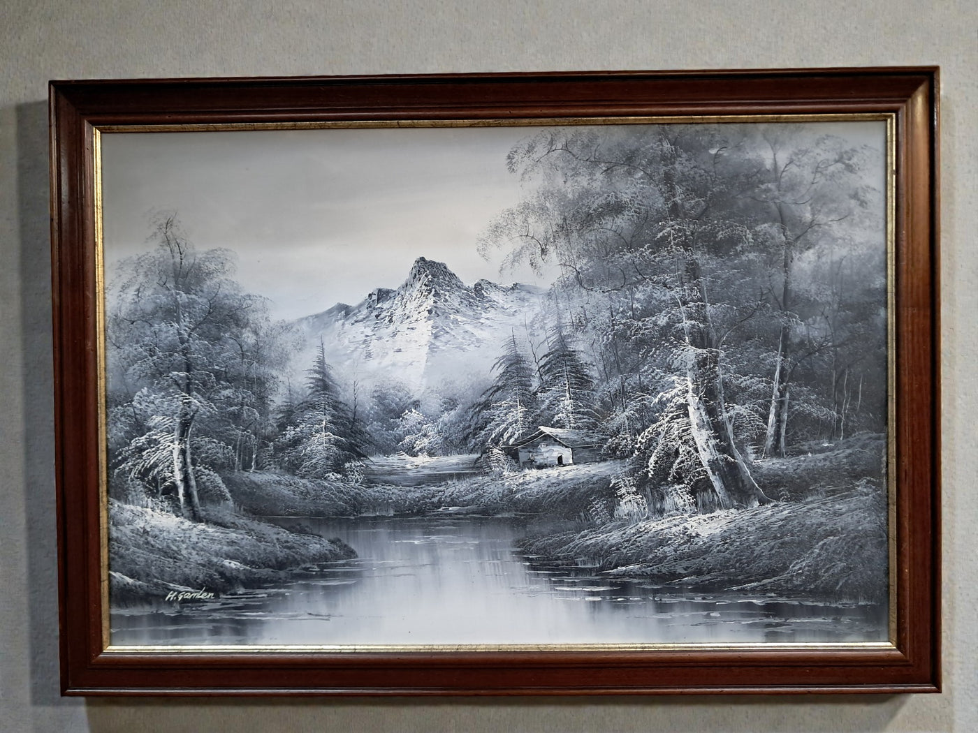 {"id":15606234775930,"title":"Large Oil Painting Black \u0026 White Winter Landscape On Canvas H Gamlen 1980 Framed","handle":"large-oil-painting-black-white-winter-landscape-on-canvas-h-gamlen-1980-framed","description":"\u003cdiv\u003e\n\u003cdiv\u003e\n\u003cdiv\u003e\u003cstrong\u003eLarge Vintage Black \u0026amp; White Winter Landscape Oil Painting On Canvas by H. Gamlen – 1980s – Framed \u0026amp; Signed\u003c\/strong\u003e\u003c\/div\u003e\n\u003cdiv\u003e\u003cbr\u003e\u003c\/div\u003e\n\u003cdiv\u003eThis large and atmospheric black and white winter landscape oil painting, signed by H. Gamlen and dating from the 1980s, is a striking and evocative work that brings a sense of calm, depth, and quiet drama to any interior. It is in superb condition.\u003c\/div\u003e\n\u003cdiv\u003e\u003cbr\u003e\u003c\/div\u003e\n\u003cdiv\u003eThe composition centres on a tranquil river winding through a snow-covered woodland, leading the eye towards a softly misted mountain in the distance. Bare winter trees frame the scene beautifully, their frost-laden branches rendered with delicate detail. Nestled discreetly among the trees is a small woodland cabin, adding warmth and narrative to the otherwise untouched landscape.\u003c\/div\u003e\n\u003cdiv\u003e\u003cbr\u003e\u003c\/div\u003e\n\u003cdiv\u003eThe restrained monochrome palette enhances the mood of the painting, allowing light, texture, and contrast to take precedence. It is easy to imagine sitting inside that secluded cabin on a cold winter’s day, the glow of a log fire inside while the frozen stillness outside remains undisturbed. The painting has a timeless, contemplative quality that invites the viewer to pause and escape.\u003c\/div\u003e\n\u003cdiv\u003e\u003cbr\u003e\u003c\/div\u003e\n\u003cdiv\u003ePresented in a substantial mahogany frame with an elegant speckled gold inner border, the artwork has a strong and confident presence. The frame complements the painting perfectly, adding warmth and refinement without overpowering the composition.\u003c\/div\u003e\n\u003cdiv\u003e\u003cbr\u003e\u003c\/div\u003e\n\u003cdiv\u003eThis is a commanding piece, ideal as a focal point above a fireplace, in a living room, study, or country home interior. It will appeal to collectors, interior designers, and those who appreciate expressive landscape art with atmosphere and narrative.\u003c\/div\u003e\n\u003cdiv\u003e\u003cb\u003e\u003cbr\u003e\u003c\/b\u003e\u003c\/div\u003e\n\u003cdiv\u003e\u003cb\u003eMeasurements:\u003c\/b\u003e\u003c\/div\u003e\n\u003cdiv\u003eOverall including frame: 103cm L x 72cm H x 3cm D\u003c\/div\u003e\n\u003cdiv\u003eActual canvas: 90cm L x 60cm H\u003c\/div\u003e\n\u003cdiv\u003e\u003cbr\u003e\u003c\/div\u003e\n\u003cdiv\u003eOur motto is to reuse and recycle these wonderful antique and vintage items so that they get a new lease of life and at the same time you will have a unique, personal item of good quality in your home that will also contribute to the world's carbon footprint. We owe it to our future generations NOT to be a throwaway society.\u003c\/div\u003e\n\u003cdiv\u003e\u003cbr\u003e\u003c\/div\u003e\n\u003cdiv\u003eThe delivery quoted in this listing is for mainland UK only.\u003c\/div\u003e\n\u003cdiv\u003ePlease contact us for a delivery quote to Cornwall, Scotland, Highlands or Islands or Offshore UK, Northern Ireland, Jersey, Guernsey, IOW, etc as it may be more than the price quoted.\u003c\/div\u003e\n\u003cdiv\u003e\u003cbr\u003e\u003c\/div\u003e\n\u003cdiv\u003eThis item is available to view at our showroom RetroNovia , 12 New Pond Parade, West End Road, Ruislip Gardens, Middlesex HA4 6LR . Please call us on 01895 675596 to make sure the item is available before coming to view.\u003c\/div\u003e\n\u003cdiv\u003e\u003cbr\u003e\u003c\/div\u003e\n\u003cdiv\u003eWe are located easy access from London and Oxford and are directly off the Main A40 Polish War memorial junction.\u003c\/div\u003e\n\u003c\/div\u003e\n\u003c\/div\u003e","published_at":"2026-01-07T11:32:36+00:00","created_at":"2026-01-07T11:32:36+00:00","vendor":"H Gamlen","type":"Art","tags":["Art","Impressionist","Oil Painting","Woodland"],"price":15000,"price_min":15000,"price_max":15000,"available":true,"price_varies":false,"compare_at_price":null,"compare_at_price_min":0,"compare_at_price_max":0,"compare_at_price_varies":false,"variants":[{"id":56428048187770,"title":"Default Title","option1":"Default Title","option2":null,"option3":null,"sku":"1551","requires_shipping":true,"taxable":false,"featured_image":null,"available":true,"name":"Large Oil Painting Black \u0026 White Winter Landscape On Canvas H Gamlen 1980 Framed","public_title":null,"options":["Default Title"],"price":15000,"weight":50000,"compare_at_price":null,"inventory_management":"shopify","barcode":null,"requires_selling_plan":false,"selling_plan_allocations":[]}],"images":["\/\/retronovia.co.uk\/cdn\/shop\/files\/Oil_on_canvas_black_and_white_landscape_1.jpg?v=1767785623","\/\/retronovia.co.uk\/cdn\/shop\/files\/Oil_on_canvas_black_and_white_landscape_2.jpg?v=1767785623","\/\/retronovia.co.uk\/cdn\/shop\/files\/Oil_on_canvas_black_and_white_landscape_3.jpg?v=1767785623","\/\/retronovia.co.uk\/cdn\/shop\/files\/Oil_on_canvas_black_and_white_landscape_4.jpg?v=1767785623","\/\/retronovia.co.uk\/cdn\/shop\/files\/Oil_on_canvas_black_and_white_landscape_5.jpg?v=1767785622","\/\/retronovia.co.uk\/cdn\/shop\/files\/Oil_on_canvas_black_and_white_landscape_6.jpg?v=1767785623","\/\/retronovia.co.uk\/cdn\/shop\/files\/Oil_on_canvas_black_and_white_landscape_7.jpg?v=1767785622","\/\/retronovia.co.uk\/cdn\/shop\/files\/Oil_on_canvas_black_and_white_landscape_8.jpg?v=1767785622","\/\/retronovia.co.uk\/cdn\/shop\/files\/Oil_on_canvas_black_and_white_landscape_9.jpg?v=1767785622","\/\/retronovia.co.uk\/cdn\/shop\/files\/Oil_on_canvas_black_and_white_landscape_10.jpg?v=1767785623","\/\/retronovia.co.uk\/cdn\/shop\/files\/Oil_on_canvas_black_and_white_landscape_11.jpg?v=1767785622","\/\/retr