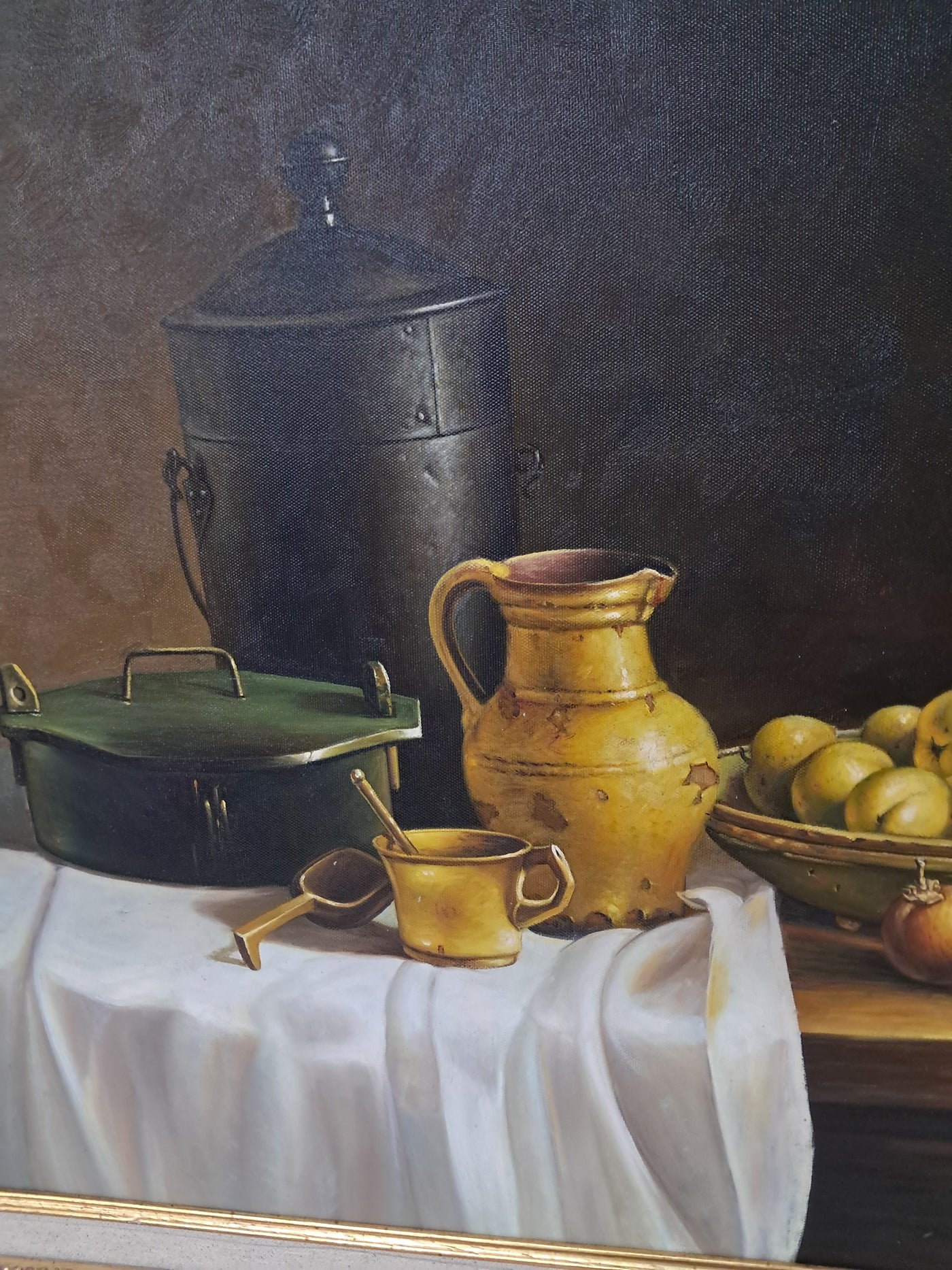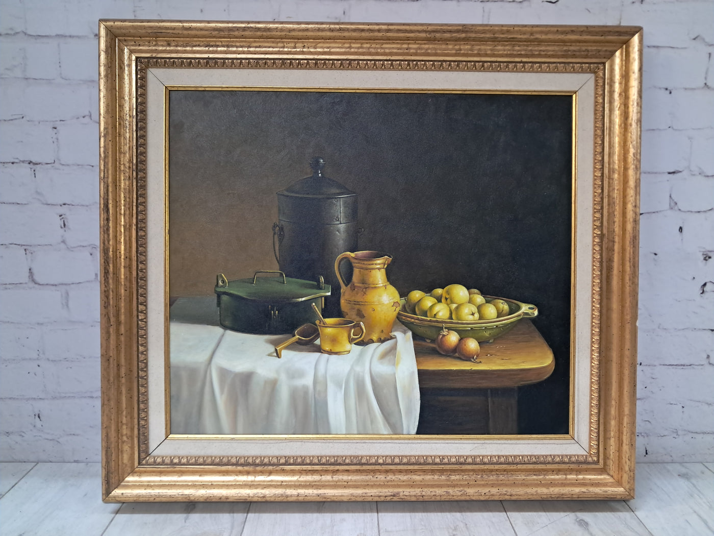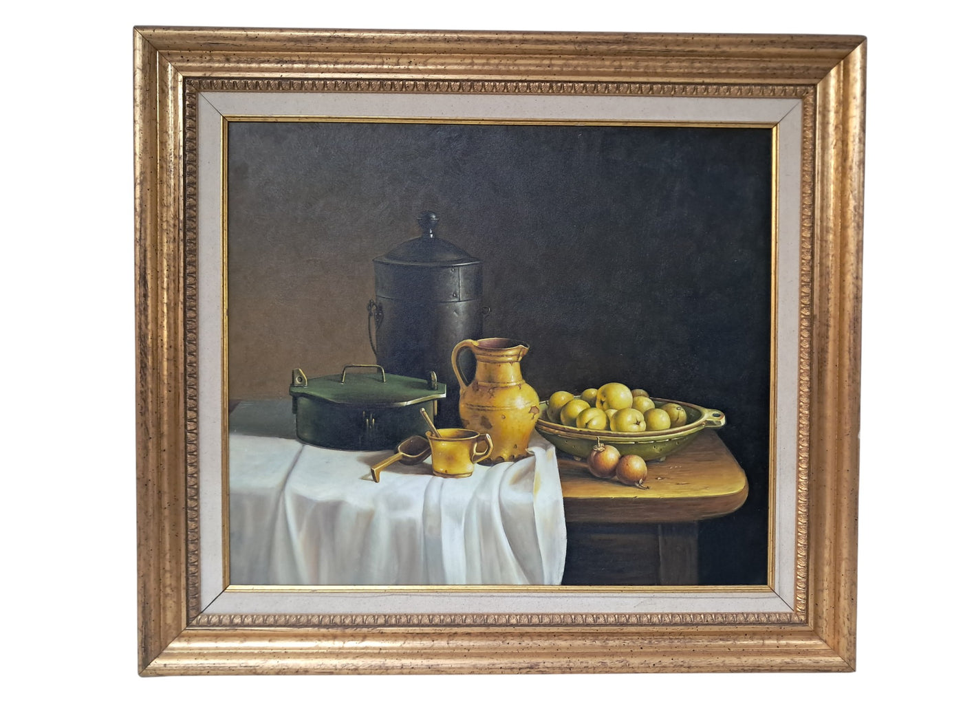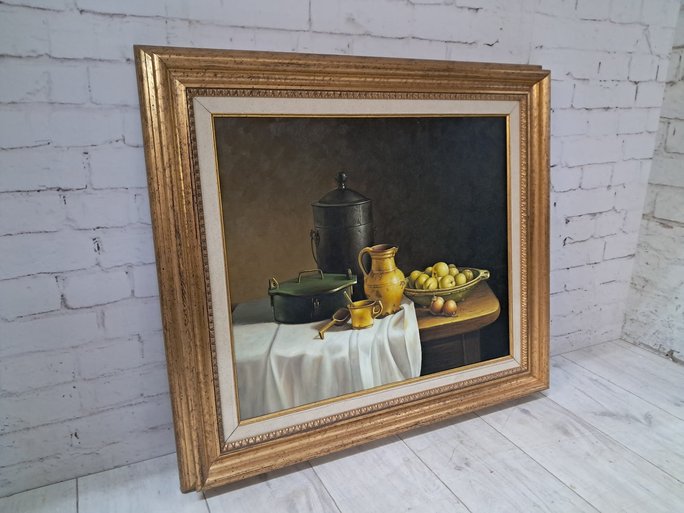 {"id":15606256370042,"title":"Vintage Still Life Oil Painting Canvas Fruit Framed Classical Table Top Scene 1980","handle":"vintage-still-life-oil-painting-canvas-fruit-framed-classical-table-top-scene-1980","description":"\u003cdiv\u003e\n\u003cdiv\u003e\u003cstrong\u003eVintage Still Life Oil Painting on Canvas Gilt Gold Frame Classical Table Top Scene 1980\u003c\/strong\u003e\u003c\/div\u003e\n\u003cdiv\u003e\n\u003cdiv\u003e\u003cbr\u003e\u003c\/div\u003e\n\u003cdiv\u003eThis beautifully composed oil on canvas still life exudes a quiet, classical elegance that will appeal to discerning collectors and lovers of traditional interior styling. This beautifully composed oil on canvas still life exudes a quiet, classical elegance that will appeal to discerning collectors and lovers of traditional interior styling. It is in superb condition.\u003c\/div\u003e\n\u003cdiv\u003e\u003cbr\u003e\u003c\/div\u003e\n\u003cdiv\u003eSet against a dark, atmospheric backdrop, the composition centres on a carefully arranged table top scene: a warm ochre ceramic jug, a lidded metal vessel, a green-painted box, and a shallow bowl of gently glowing fruit. A softly draped white cloth falls over the edge of the table, its subtle folds catching the light and creating a refined contrast with the deeper, earthy tones of the objects around it. The detailing throughout is exceptionally well observed, with crisp yet delicate definition that gives the piece a sense of depth, balance, and quiet realism.\u003c\/div\u003e\n\u003cdiv\u003e\u003cbr\u003e\u003c\/div\u003e\n\u003cdiv\u003eThe painting is presented in an impressive gold gilt wooden frame, delicately flecked and naturally patinated, enhancing its timeless appeal and giving the artwork a refined, gallery-quality presence. It would sit beautifully in a dining room, kitchen, study, or elegant hallway, adding warmth, character, and a sense of classical sophistication to the space.\u003c\/div\u003e\n\u003cdiv\u003e\u003cbr\u003e\u003c\/div\u003e\n\u003cdiv\u003e\u003cb\u003eMeasurements\u003c\/b\u003e\u003c\/div\u003e\n\u003cdiv\u003eOverall, including frame: 77cm L x 72cm H x 7cm D\u003c\/div\u003e\n\u003cdiv\u003eActual canvas: 60cm L x 50cm H\u003c\/div\u003e\n\u003cdiv\u003e\u003cbr\u003e\u003c\/div\u003e\n\u003cdiv\u003eOur motto is to reuse and recycle these wonderful antique and vintage items so that they get a new lease of life and at the same time you will have a unique, personal item of good quality in your home that will also contribute to the world's carbon footprint. We owe it to our future generations NOT to be a throwaway society. \u003c\/div\u003e\n\u003cdiv\u003e\u003cbr\u003e\u003c\/div\u003e\n\u003cdiv\u003eThe delivery quoted in this listing is for mainland UK only.\u003c\/div\u003e\n\u003cdiv\u003ePlease contact us for a delivery quote to Cornwall, Scotland, Highlands or Islands or Offshore UK, Northern Ireland, Jersey, Guernsey, IOW, etc as it may be more than the price quoted.\u003c\/div\u003e\n\u003cdiv\u003e\u003cbr\u003e\u003c\/div\u003e\n\u003cdiv\u003eThis item is available to view at our showroom RetroNovia , 12 New Pond Parade, West End Road, Ruislip Gardens, Middlesex HA4 6LR . Please call us on 01895 675596 to make sure the item is available before coming to view.\u003c\/div\u003e\n\u003cdiv\u003e\u003cbr\u003e\u003c\/div\u003e\n\u003cdiv\u003eWe are located easy access from London and Oxford and are directly off the Main A40 Polish War memorial junction.\u003c\/div\u003e\n\u003c\/div\u003e\n\u003c\/div\u003e","published_at":"2026-01-07T11:49:13+00:00","created_at":"2026-01-07T11:49:13+00:00","vendor":"RetroNovia","type":"Art","tags":["Art","Impressionist","Oil Painting","Woodland"],"price":25000,"price_min":25000,"price_max":25000,"available":true,"price_varies":false,"compare_at_price":null,"compare_at_price_min":0,"compare_at_price_max":0,"compare_at_price_varies":false,"variants":[{"id":56428102156666,"title":"Default Title","option1":"Default Title","option2":null,"option3":null,"sku":null,"requires_shipping":true,"taxable":false,"featured_image":null,"available":true,"name":"Vintage Still Life Oil Painting Canvas Fruit Framed Classical Table Top Scene 1980","public_title":null,"options":["Default Title"],"price":25000,"weight":50000,"compare_at_price":null,"inventory_management":"shopify","barcode":null,"requires_selling_plan":false,"selling_plan_allocations":[]}],"images":["\/\/retronovia.co.uk\/cdn\/shop\/files\/oil_painting_still_life_fruit_1.jpg?v=1767786606","\/\/retronovia.co.uk\/cdn\/shop\/files\/oil_painting_still_life_fruit_33.jpg?v=1767786687","\/\/retronovia.co.uk\/cdn\/shop\/files\/oil_painting_still_life_fruit_32.jpg?v=1767786687","\/\/retronovia.co.uk\/cdn\/shop\/files\/oil_painting_still_life_fruit_1a.jpg?v=1767786687","\/\/retronovia.co.uk\/cdn\/shop\/files\/oil_painting_still_life_fruit_17.jpg?v=1767786687","\/\/retronovia.co.uk\/cdn\/shop\/files\/oil_painting_still_life_fruit_18.jpg?v=1767786687","\/\/retronovia.co.uk\/cdn\/shop\/files\/oil_painting_still_life_fruit_19.jpg?v=1767786687","\/\/retronovia.co.uk\/cdn\/shop\/files\/oil_painting_still_life_fruit_20.jpg?v=1767786687","\/\/retronovia.co.uk\/cdn\/shop\/files\/oil_painting_still_life_fruit_21.jpg?v=1767786687","\/\/retronovia.co.uk\/cdn\/shop\/files\/oil_painting_still_life_fruit_22.jpg?v=1767786687","\/\/retronovia.co.uk\/cdn\/shop\/files\/oil_painting_still_life_fruit_23.jpg?v=1767786687","\/\/retronovia.co.uk\/cdn\/shop\/files\/oil_painting_still_life_fruit_24.jpg?v=1767786687","\/\/retronovia.co.uk\/cdn\/shop\/files\/oil_painting_still_life_fruit_25.jpg?v=1767786687","\/\/retronovia.co.uk\/cdn\/shop\/files\/oil_painting_still_life_fruit_26.jpg?v=1767786687","\/\/retronovia.co.uk\/cdn\/shop\/files\/oil_painting_still_life_fruit_27.jpg?v=1767786687","\/\/retronovia.co.uk\/cdn\/shop\/files\/oil_painting_still_life_fruit_28.jpg?v=1767786687","\/\/retronovia.co.uk\/cdn\/shop\/files\/oil_painting_still_life_fruit_29.jpg?v=1767786687","\/\/retronovia.co.u