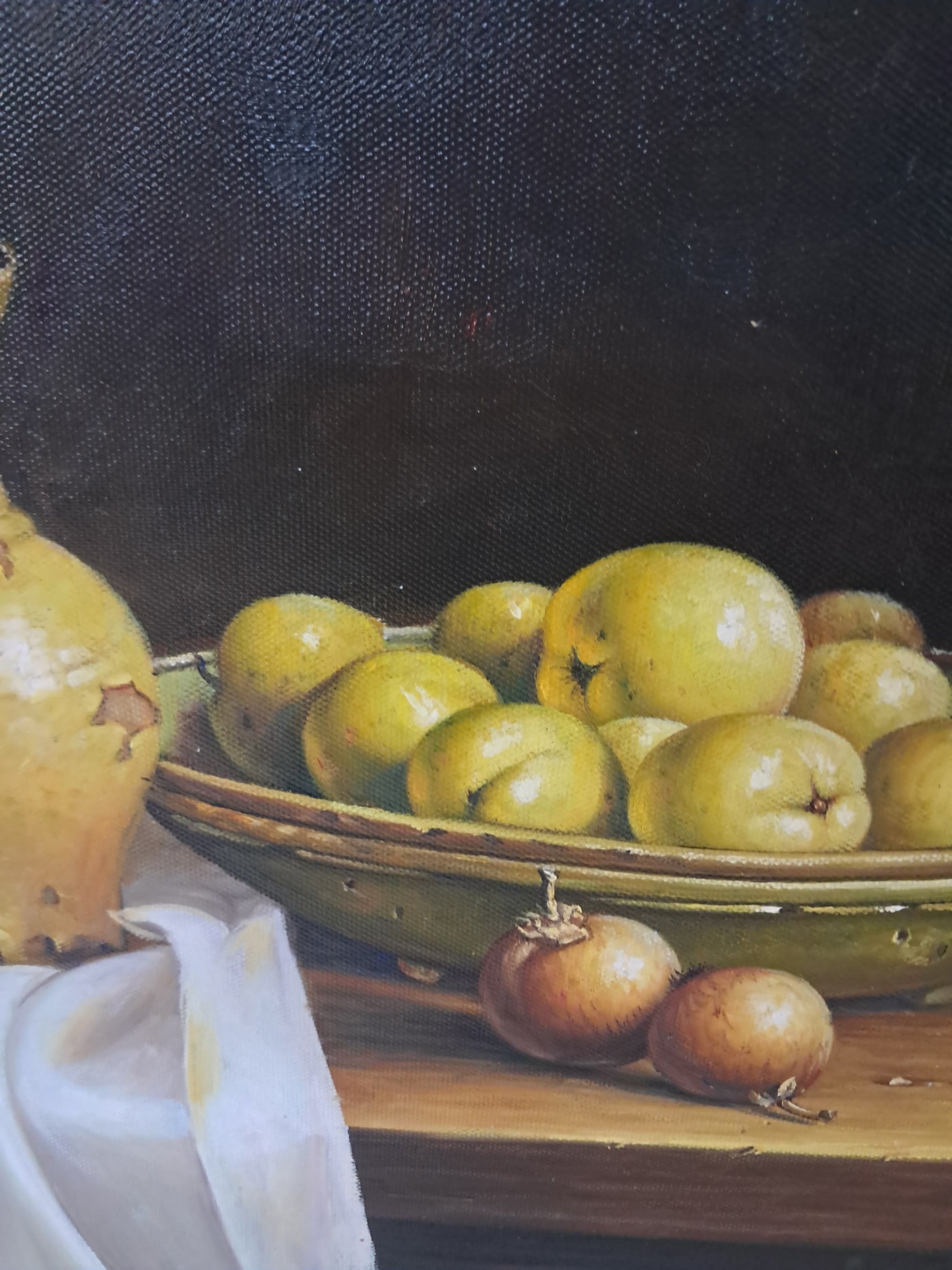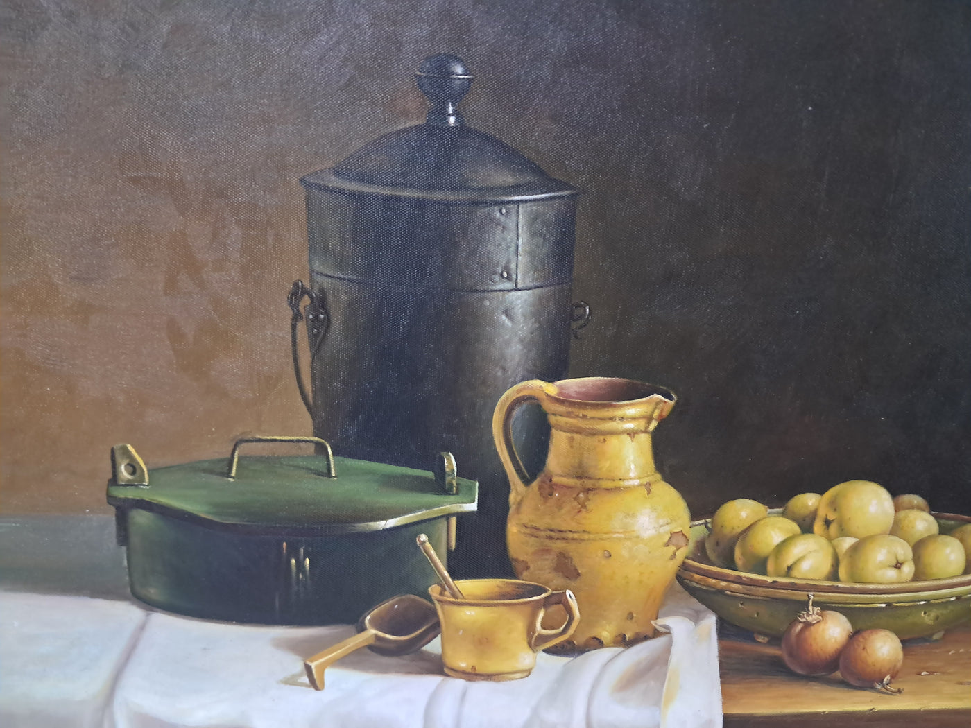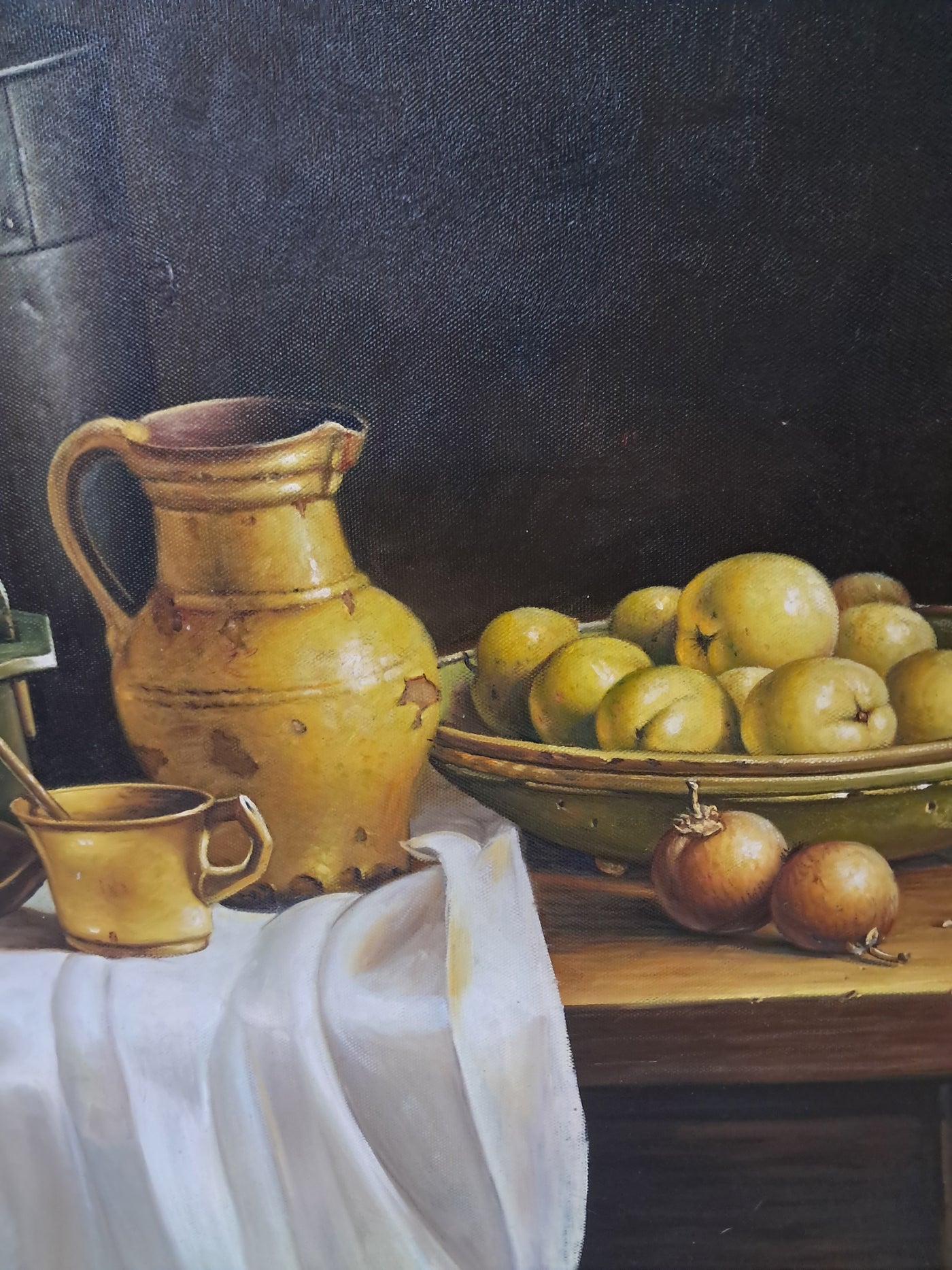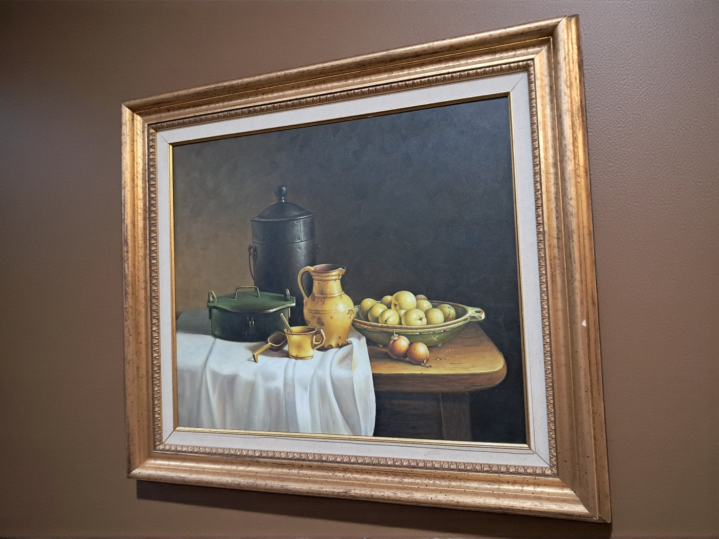 {"id":15606256370042,"title":"Vintage Still Life Oil Painting Canvas Fruit Framed Classical Table Top Scene 1980","handle":"vintage-still-life-oil-painting-canvas-fruit-framed-classical-table-top-scene-1980","description":"\u003cdiv\u003e\n\u003cdiv\u003e\u003cstrong\u003eVintage Still Life Oil Painting on Canvas Gilt Gold Frame Classical Table Top Scene 1980\u003c\/strong\u003e\u003c\/div\u003e\n\u003cdiv\u003e\n\u003cdiv\u003e\u003cbr\u003e\u003c\/div\u003e\n\u003cdiv\u003eThis beautifully composed oil on canvas still life exudes a quiet, classical elegance that will appeal to discerning collectors and lovers of traditional interior styling. This beautifully composed oil on canvas still life exudes a quiet, classical elegance that will appeal to discerning collectors and lovers of traditional interior styling. It is in superb condition.\u003c\/div\u003e\n\u003cdiv\u003e\u003cbr\u003e\u003c\/div\u003e\n\u003cdiv\u003eSet against a dark, atmospheric backdrop, the composition centres on a carefully arranged table top scene: a warm ochre ceramic jug, a lidded metal vessel, a green-painted box, and a shallow bowl of gently glowing fruit. A softly draped white cloth falls over the edge of the table, its subtle folds catching the light and creating a refined contrast with the deeper, earthy tones of the objects around it. The detailing throughout is exceptionally well observed, with crisp yet delicate definition that gives the piece a sense of depth, balance, and quiet realism.\u003c\/div\u003e\n\u003cdiv\u003e\u003cbr\u003e\u003c\/div\u003e\n\u003cdiv\u003eThe painting is presented in an impressive gold gilt wooden frame, delicately flecked and naturally patinated, enhancing its timeless appeal and giving the artwork a refined, gallery-quality presence. It would sit beautifully in a dining room, kitchen, study, or elegant hallway, adding warmth, character, and a sense of classical sophistication to the space.\u003c\/div\u003e\n\u003cdiv\u003e\u003cbr\u003e\u003c\/div\u003e\n\u003cdiv\u003e\u003cb\u003eMeasurements\u003c\/b\u003e\u003c\/div\u003e\n\u003cdiv\u003eOverall, including frame: 77cm L x 72cm H x 7cm D\u003c\/div\u003e\n\u003cdiv\u003eActual canvas: 60cm L x 50cm H\u003c\/div\u003e\n\u003cdiv\u003e\u003cbr\u003e\u003c\/div\u003e\n\u003cdiv\u003eOur motto is to reuse and recycle these wonderful antique and vintage items so that they get a new lease of life and at the same time you will have a unique, personal item of good quality in your home that will also contribute to the world's carbon footprint. We owe it to our future generations NOT to be a throwaway society. \u003c\/div\u003e\n\u003cdiv\u003e\u003cbr\u003e\u003c\/div\u003e\n\u003cdiv\u003eThe delivery quoted in this listing is for mainland UK only.\u003c\/div\u003e\n\u003cdiv\u003ePlease contact us for a delivery quote to Cornwall, Scotland, Highlands or Islands or Offshore UK, Northern Ireland, Jersey, Guernsey, IOW, etc as it may be more than the price quoted.\u003c\/div\u003e\n\u003cdiv\u003e\u003cbr\u003e\u003c\/div\u003e\n\u003cdiv\u003eThis item is available to view at our showroom RetroNovia , 12 New Pond Parade, West End Road, Ruislip Gardens, Middlesex HA4 6LR . Please call us on 01895 675596 to make sure the item is available before coming to view.\u003c\/div\u003e\n\u003cdiv\u003e\u003cbr\u003e\u003c\/div\u003e\n\u003cdiv\u003eWe are located easy access from London and Oxford and are directly off the Main A40 Polish War memorial junction.\u003c\/div\u003e\n\u003c\/div\u003e\n\u003c\/div\u003e","published_at":"2026-01-07T11:49:13+00:00","created_at":"2026-01-07T11:49:13+00:00","vendor":"RetroNovia","type":"Art","tags":["Art","Impressionist","Oil Painting","Woodland"],"price":25000,"price_min":25000,"price_max":25000,"available":true,"price_varies":false,"compare_at_price":null,"compare_at_price_min":0,"compare_at_price_max":0,"compare_at_price_varies":false,"variants":[{"id":56428102156666,"title":"Default Title","option1":"Default Title","option2":null,"option3":null,"sku":null,"requires_shipping":true,"taxable":false,"featured_image":null,"available":true,"name":"Vintage Still Life Oil Painting Canvas Fruit Framed Classical Table Top Scene 1980","public_title":null,"options":["Default Title"],"price":25000,"weight":50000,"compare_at_price":null,"inventory_management":"shopify","barcode":null,"requires_selling_plan":false,"selling_plan_allocations":[]}],"images":["\/\/retronovia.co.uk\/cdn\/shop\/files\/oil_painting_still_life_fruit_1.jpg?v=1767786606","\/\/retronovia.co.uk\/cdn\/shop\/files\/oil_painting_still_life_fruit_33.jpg?v=1767786687","\/\/retronovia.co.uk\/cdn\/shop\/files\/oil_painting_still_life_fruit_32.jpg?v=1767786687","\/\/retronovia.co.uk\/cdn\/shop\/files\/oil_painting_still_life_fruit_1a.jpg?v=1767786687","\/\/retronovia.co.uk\/cdn\/shop\/files\/oil_painting_still_life_fruit_17.jpg?v=1767786687","\/\/retronovia.co.uk\/cdn\/shop\/files\/oil_painting_still_life_fruit_18.jpg?v=1767786687","\/\/retronovia.co.uk\/cdn\/shop\/files\/oil_painting_still_life_fruit_19.jpg?v=1767786687","\/\/retronovia.co.uk\/cdn\/shop\/files\/oil_painting_still_life_fruit_20.jpg?v=1767786687","\/\/retronovia.co.uk\/cdn\/shop\/files\/oil_painting_still_life_fruit_21.jpg?v=1767786687","\/\/retronovia.co.uk\/cdn\/shop\/files\/oil_painting_still_life_fruit_22.jpg?v=1767786687","\/\/retronovia.co.uk\/cdn\/shop\/files\/oil_painting_still_life_fruit_23.jpg?v=1767786687","\/\/retronovia.co.uk\/cdn\/shop\/files\/oil_painting_still_life_fruit_24.jpg?v=1767786687","\/\/retronovia.co.uk\/cdn\/shop\/files\/oil_painting_still_life_fruit_25.jpg?v=1767786687","\/\/retronovia.co.uk\/cdn\/shop\/files\/oil_painting_still_life_fruit_26.jpg?v=1767786687","\/\/retronovia.co.uk\/cdn\/shop\/files\/oil_painting_still_life_fruit_27.jpg?v=1767786687","\/\/retronovia.co.uk\/cdn\/shop\/files\/oil_painting_still_life_fruit_28.jpg?v=1767786687","\/\/retronovia.co.uk\/cdn\/shop\/files\/oil_painting_still_life_fruit_29.jpg?v=1767786687","\/\/retronovia.co.u