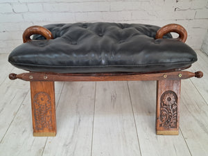 Camel Stool Footstool Black Leatherette Moroccan Style Vintage Antique 1970's
