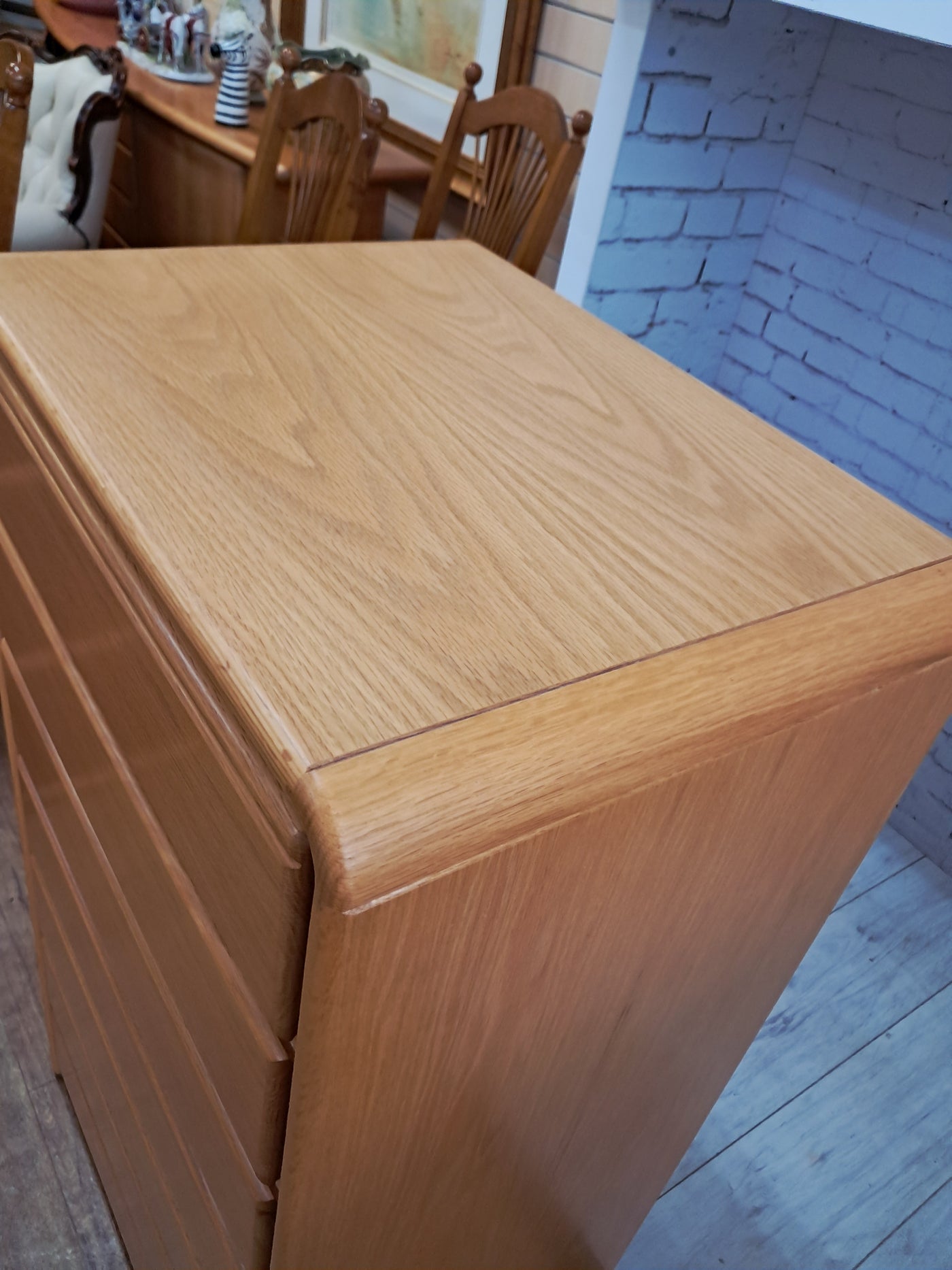 Vintage Mid Century Tallboy Chest of Drawers Solid Oak Danish Style 7 Drawers VGC