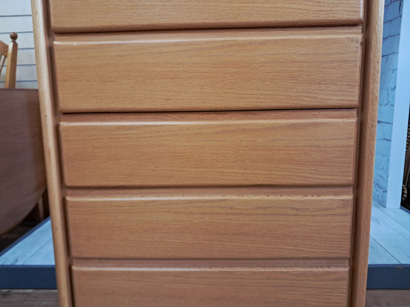 1990s Danish Mid-Century Style Solid Oak Tallboy Chest of Drawers