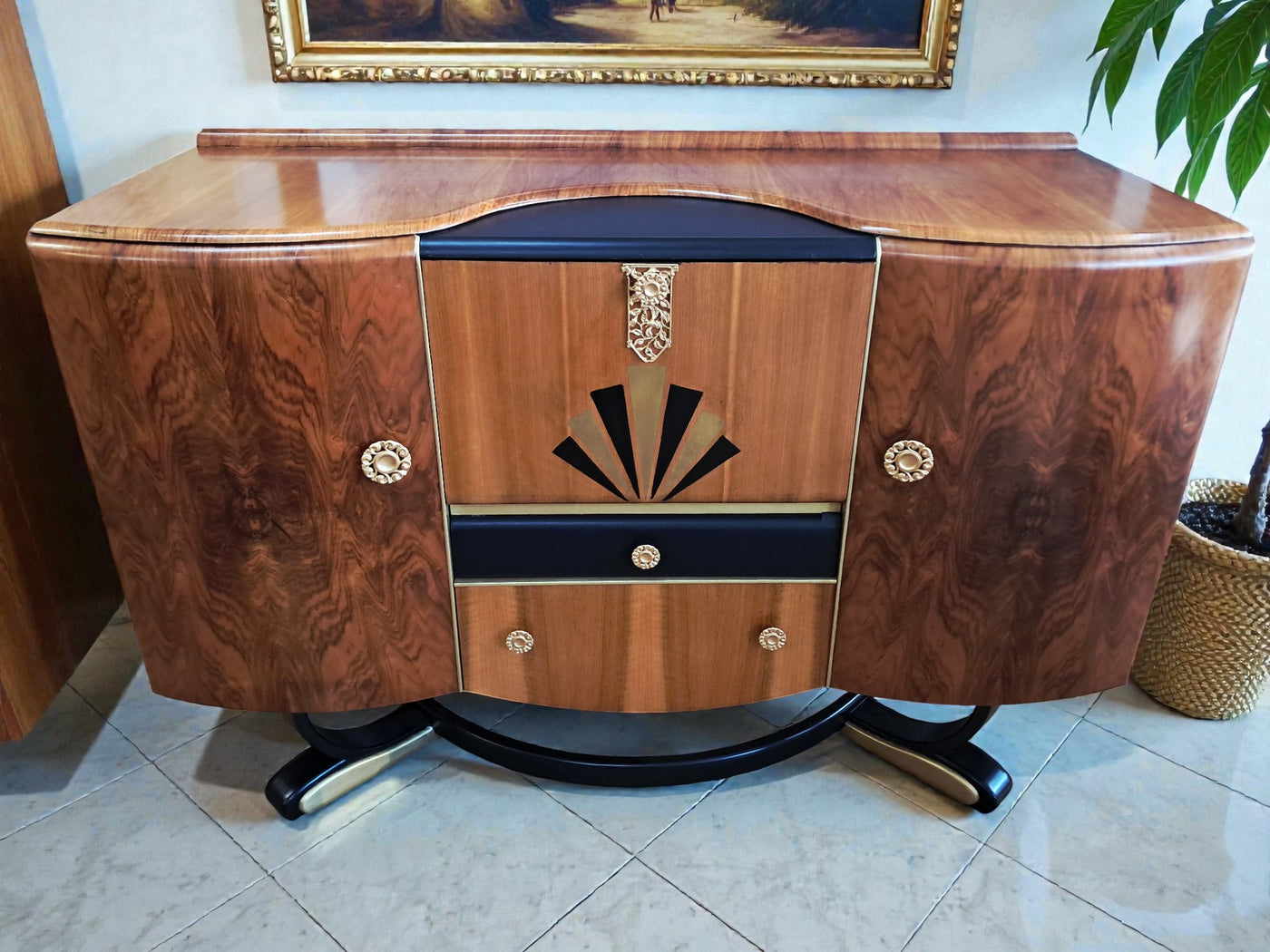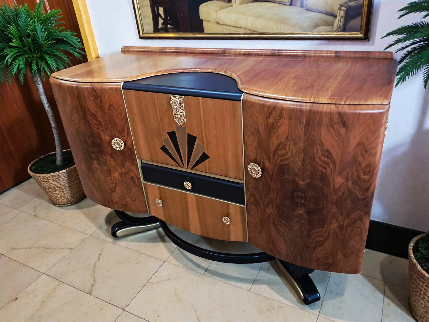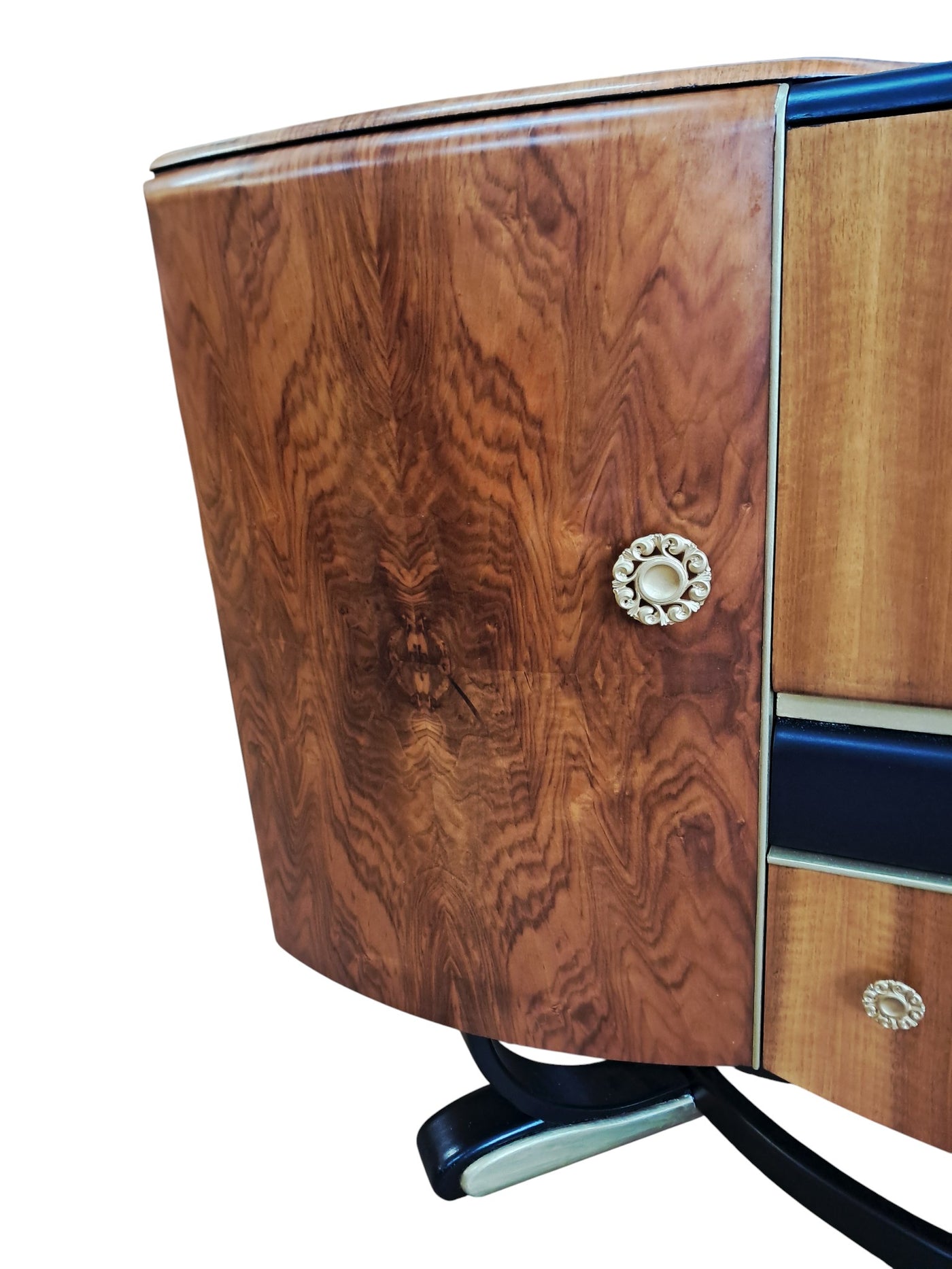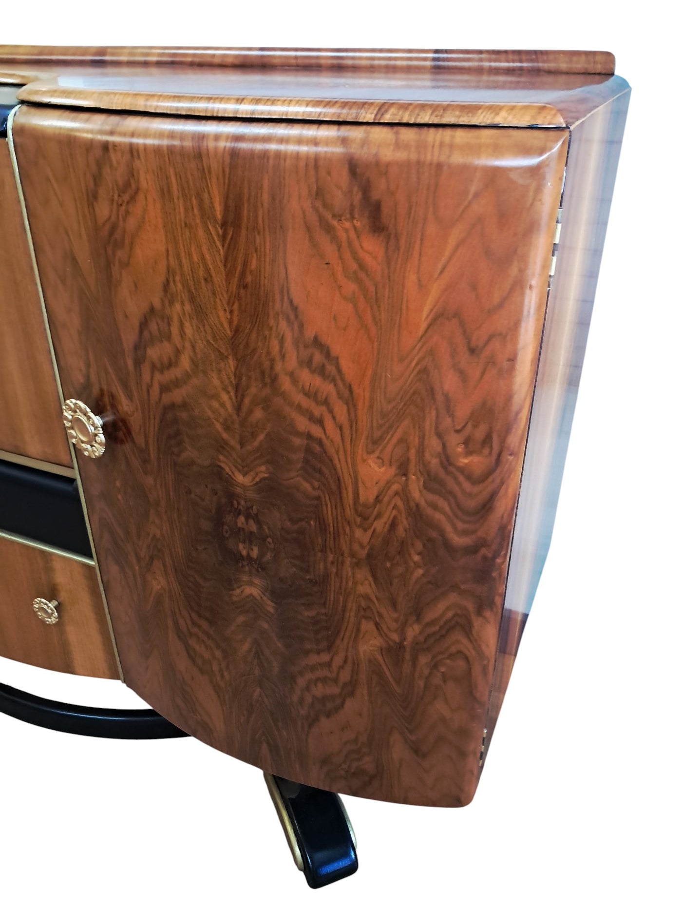 The cabinet stands on beautifully shaped Art Deco legs, finished in complementary black and gold detailing, completing the overall design with poise and balance.