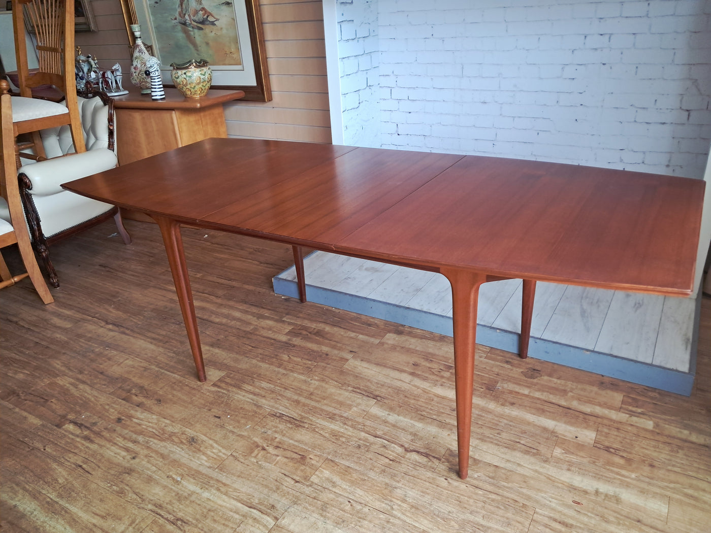 {"id":15436891816314,"title":"Mid Century McIntosh Teak Dining Table Vintage Extending Table Seats 8 Restored","handle":"mid-century-mcintosh-teak-dining-table-vintage-extending-table-seats-8-restored","description":"\u003cdiv data-sleek-node-id=\"23aa9a\"\u003e\n\u003cdiv\u003e\n\u003cdiv\u003e\n\u003cdiv\u003e\u003cspan\u003e\u003cstrong\u003eThis exquisite teak extending dining table was designed and crafted by A.H. McIntosh in the 1960's\u003c\/strong\u003e — a true statement piece from the Mid-Century Modern era. Rare and highly sought after, it combines timeless style with exceptional functionality.\u003c\/span\u003e\u003c\/div\u003e\n\u003cdiv\u003e\u003cspan\u003e\u003cbr\u003e\u003c\/span\u003e\u003c\/div\u003e\n\u003cdiv\u003e\u003cspan\u003e\u003cstrong\u003eThe table’s ingenious design features a hidden extension leaf stored neatly beneath the top\u003c\/strong\u003e, allowing it to expand effortlessly to seat up to eight people — ideal for both intimate dinners and larger gatherings. Its clean, minimalist lines and beautifully figured teak grain showcase the signature craftsmanship and refined simplicity that define McIntosh furniture.\u003c\/span\u003e\u003c\/div\u003e\n\u003cdiv\u003e\u003cspan\u003e\u003cbr\u003e\u003c\/span\u003e\u003c\/div\u003e\n\u003cdiv\u003e\u003cspan\u003e\u003cstrong\u003eProfessionally restored, cleaned, and waxed\u003c\/strong\u003e, this piece is presented in superb vintage condition and bears its \u003cstrong\u003eoriginal maker’s mark, “McIntosh Furniture” \u003c\/strong\u003e— a name synonymous with quality and design excellence.\u003c\/span\u003e\u003c\/div\u003e\n\u003cdiv\u003e\u003cspan\u003e\u003cbr\u003e\u003c\/span\u003e\u003c\/div\u003e\n\u003cdiv\u003e\u003cspan\u003eComfortably seats up to six people, and possibly eight people with a squeeze - making it a perfect centrepiece for any contemporary or retro-inspired dining space.\u003c\/span\u003e\u003c\/div\u003e\n\u003cdiv\u003e\u003cspan\u003e\u003cbr\u003e\u003c\/span\u003e\u003c\/div\u003e\n\u003cdiv\u003e\u003cspan\u003eFREE collection from our showroom available by appointment only. Viewing also available. Tel: 01895675596\u003c\/span\u003e\u003c\/div\u003e\n\u003cdiv\u003e\u003cspan\u003e\u003cbr\u003e\u003c\/span\u003e\u003c\/div\u003e\n\u003cdiv\u003e\u003cspan\u003e\u003cstrong\u003eMeasurements: (Approx)\u003c\/strong\u003e\u003c\/span\u003e\u003c\/div\u003e\n\u003cdiv\u003e\u003cspan\u003e\u003cbr\u003e\u003c\/span\u003e\u003c\/div\u003e\n\u003cdiv\u003e\u003cspan\u003e\u003cstrong\u003eTable extended:\u003c\/strong\u003e\u003c\/span\u003e\u003c\/div\u003e\n\u003cdiv\u003e\u003cspan\u003e199cm L x 92cm D x 74 cm H\u003c\/span\u003e\u003c\/div\u003e\n\u003cdiv\u003e\u003cspan\u003e\u003cbr\u003e\u003c\/span\u003e\u003c\/div\u003e\n\u003cdiv\u003e\u003cspan\u003e\u003cstrong\u003eTable not extended:\u003c\/strong\u003e\u003c\/span\u003e\u003c\/div\u003e\n\u003cdiv\u003e\u003cspan\u003e153 cm L x 92cm D x 74 cm H\u003c\/span\u003e\u003c\/div\u003e\n\u003cdiv\u003e\u003cspan\u003e\u003cbr\u003e\u003c\/span\u003e\u003c\/div\u003e\n\u003cdiv\u003e\u003cspan\u003eOur motto is to reuse and recycle these wonderful antique and vintage items so that they get a new lease of life and at the same time you will have a unique, personal item of good quality in your home that will also contribute to the world's carbon footprint. We owe it to our future generations not to be a throwaway society.\u003c\/span\u003e\u003c\/div\u003e\n\u003cdiv\u003e\u003cspan\u003e\u003cbr\u003e\u003c\/span\u003e\u003c\/div\u003e\n\u003cdiv\u003e\u003cspan\u003eAll of our furniture has been restored\/upcycled professionally with care and attention using quality paints and materials. However, as with all vintage items they may show some characteristics signs of age and some minor imperfections. This only adds to their overall appeal and authenticity. This particular item of furniture is in outstanding condition.\u003c\/span\u003e\u003c\/div\u003e\n\u003cdiv\u003e\u003cspan\u003e\u003cbr\u003e\u003c\/span\u003e\u003c\/div\u003e\n\u003cdiv\u003e\u003cspan\u003eWe can offer local delivery please message for quote \u003c\/span\u003e\u003c\/div\u003e\n\u003cdiv\u003e\u003cspan\u003eThe delivery quoted in this listing is for mainland UK only.\u003c\/span\u003e\u003c\/div\u003e\n\u003cdiv\u003e\u003cspan\u003ePlease contact us for a delivery quote to Cornwall, Scotland, Highlands or Islands or Offshore UK, Northern Ireland, Jersey, Guernsey, IOW, etc as it may be more than the price quote.\u003c\/span\u003e\u003c\/div\u003e\n\u003cdiv\u003e\u003cspan\u003e\u003cbr\u003e\u003c\/span\u003e\u003c\/div\u003e\n\u003cdiv\u003e\u003cspan\u003eCourier price quoted is for one man courier to ground floor level only – help will be needed your end. Timed and exact delivery day requests are not available but delivery will normally be within a two week window. If you wish to have a two man courier then we can give you a quote for this.\u003c\/span\u003e\u003c\/div\u003e\n\u003cdiv\u003e\u003cspan\u003e\u003cbr\u003e\u003c\/span\u003e\u003c\/div\u003e\n\u003cdiv\u003e\u003cspan\u003eThis item is available to view at our showroom RetroNovia , 12 New Pond Parade, West End Road, Ruislip Gardens, Middlesex HA4 6LR . Please call us on 01895 675596 to make sure the item is available before coming to view.\u003c\/span\u003e\u003c\/div\u003e\n\u003cdiv\u003e\u003cspan\u003e\u003cbr\u003e\u003c\/span\u003e\u003c\/div\u003e\n\u003cdiv\u003e\u003cspan\u003eWe are located easy access from London and Oxford and are directly off the Main A40 Polish War memorial junction.\u003c\/span\u003e\u003c\/div\u003e\n\u003c\/div\u003e\n\u003c\/div\u003e\n\u003c\/div\u003e","published_at":"2025-10-22T14:39:33+01:00","created_at":"2025-10-22T14:39:33+01:00","vendor":"McIntosh","type":"Tables","tags":["Dining Table","Mid Century","Tables"],"price":89500,"price_min":89500,"price_max":89500,"available":true,"price_varies":false,"compare_at_price"