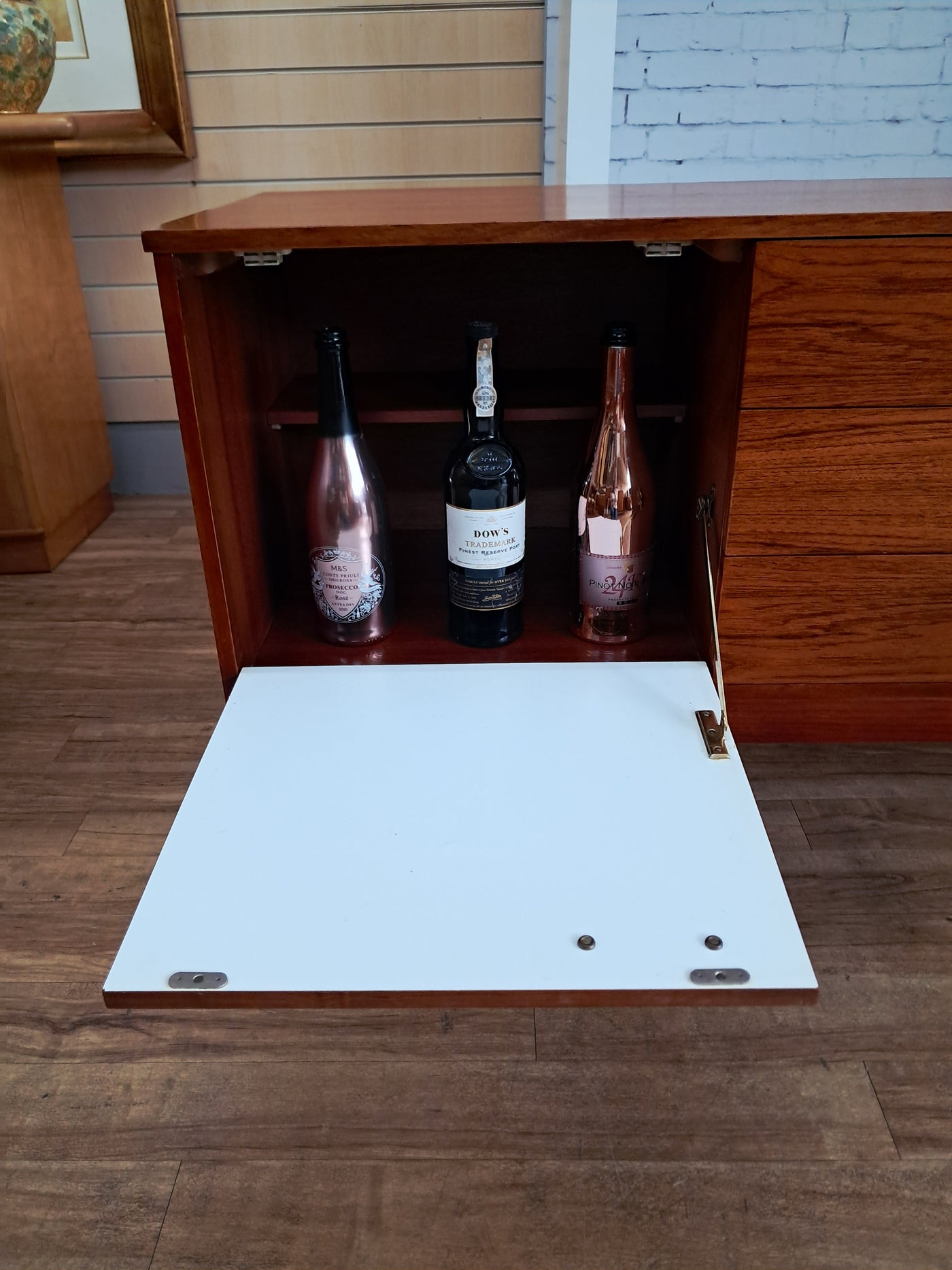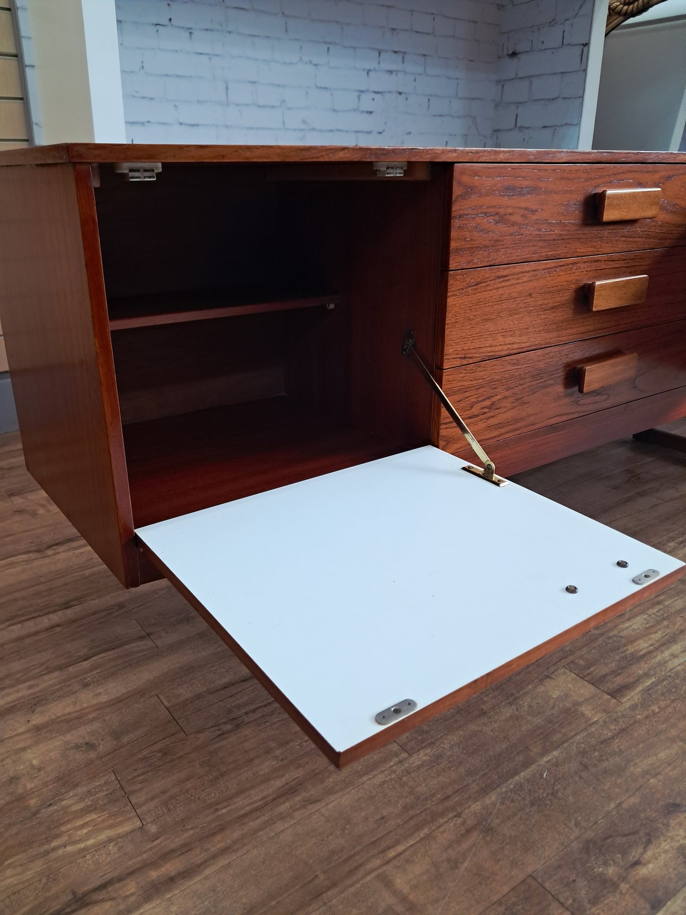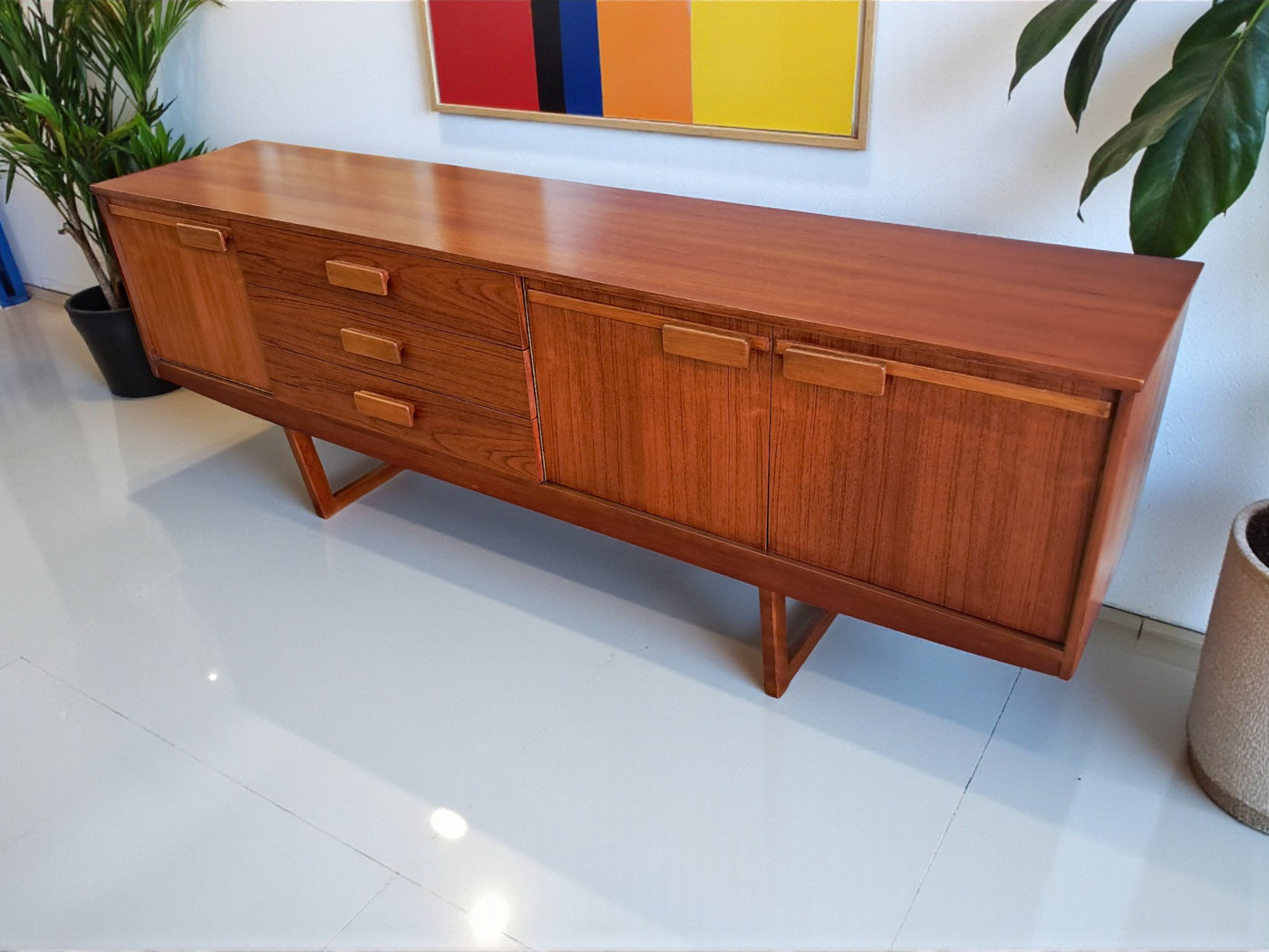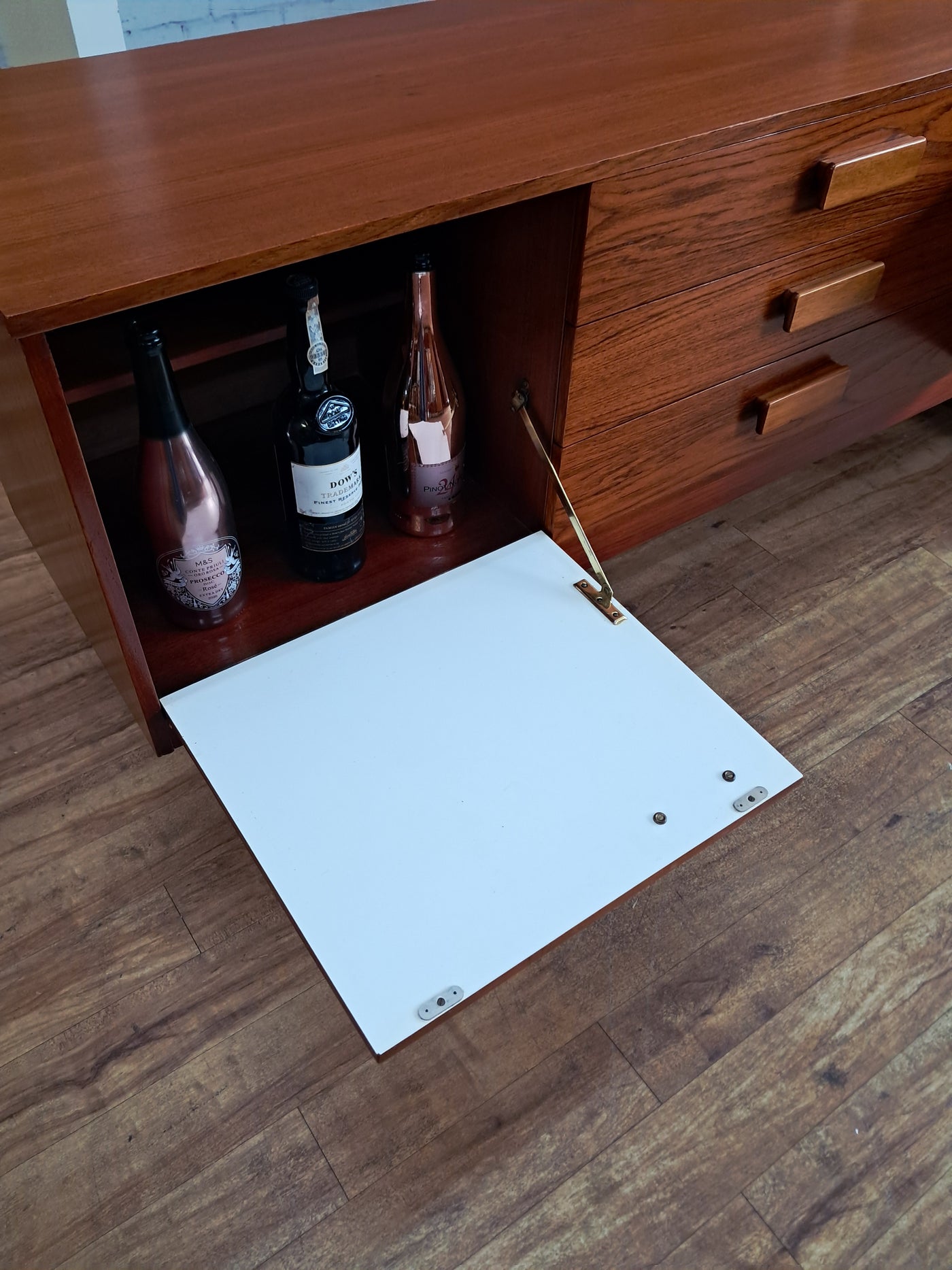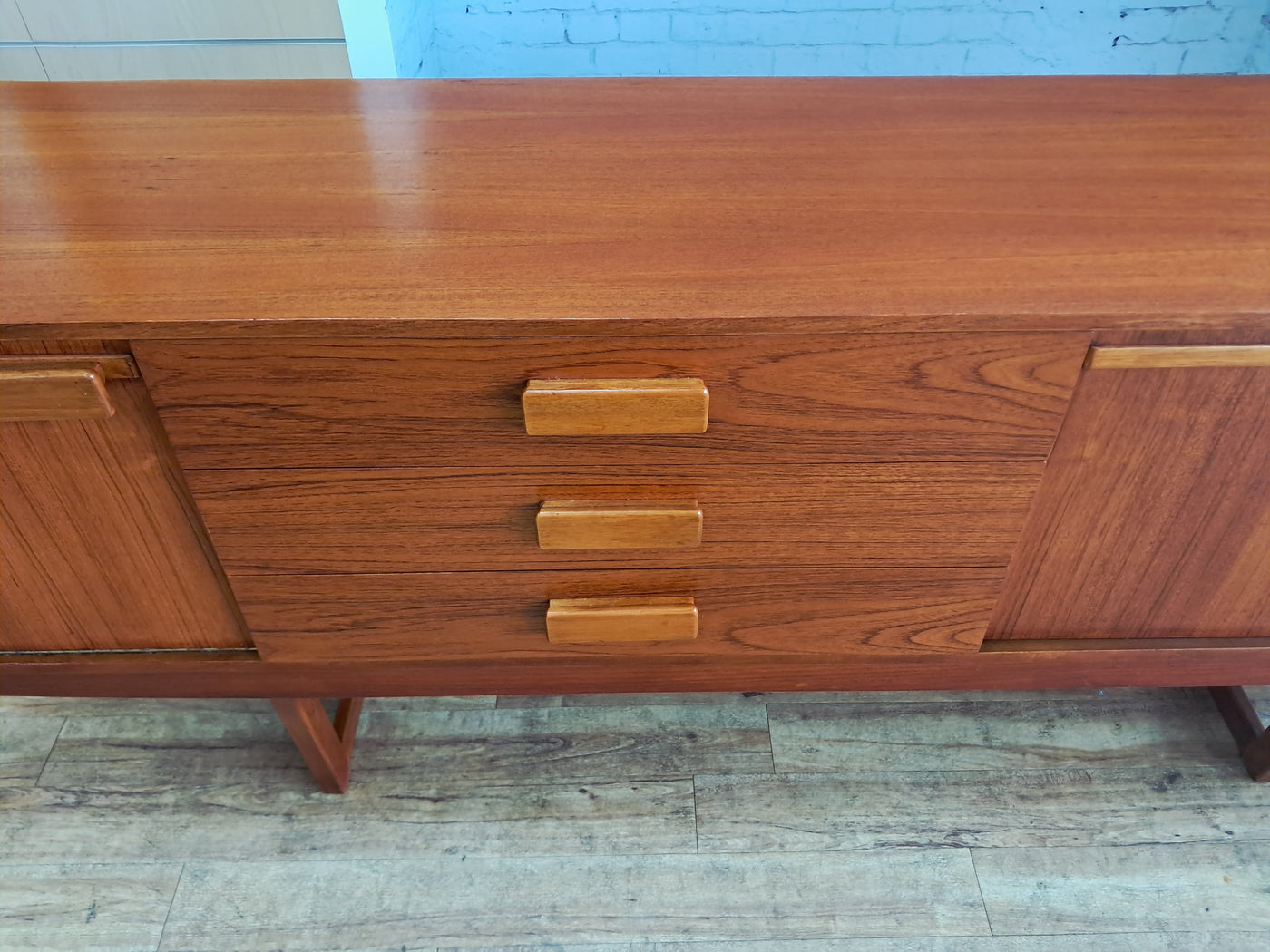 {"id":15466556359034,"title":"Mid-Century Teak Sideboard: Vintage Danish Style 1960s Drinks Cabinet Restored","handle":"mid-century-teak-sideboard-vitntage-danish-style-1960s-drinks-cabinet-restored","description":"\u003cp\u003e\u003cstrong\u003eMid-Century Danish Style Teak Sideboard, c.1960s - Restored to a High Standard\u003c\/strong\u003e\u003c\/p\u003e\n\u003cp\u003eA stunning and exceptionally rare Danish-style teak sideboard dating from the 1960s. Measuring an impressive 250 cm in length, this piece embodies the refined simplicity and craftsmanship synonymous with mid-century Scandinavian design.\u003c\/p\u003e\n\u003cp\u003eThe sideboard showcases a beautiful teak wood grain throughout — rich, warm, and exceptionally well-figured — making it a true statement piece for any interior. It features striking solid teak handles, elegantly sculpted into substantial rectangular forms with softly rounded edges, perfectly complementing its clean, architectural lines.\u003c\/p\u003e\n\u003cp\u003eTo the left-hand side is a pull-down drinks cabinet revealing a white Formica serving surface, ideal for preparing or serving drinks. Inside, a removable shelf offers ample space for bottles and glassware. The central section comprises three drawers, including a top drawer lined in green felt for cutlery or smaller items. To the right, a double-door cupboard opens to reveal generous storage with a removable shelf — perfect for tableware or linens.\u003c\/p\u003e\n\u003cp\u003eThe cabinet stands gracefully on sleek, angled sleigh legs that enhance its light, balanced profile and timeless silhouette.\u003c\/p\u003e\n\u003cp\u003eRestored to an exceptionally high standard, this sideboard is in superb condition throughout. Most likely Danish in origin, it is an extremely rare model, with no identical examples currently found online — a true collector’s piece of exceptional quality and design pedigree.\u003c\/p\u003e\n\u003cp\u003e\u003cstrong\u003eFor Lovers of Vintage Furniture \u0026amp; Accessories\u003c\/strong\u003e\u003c\/p\u003e\n\u003cp\u003eA timeless and stylish addition to any home, this sideboard is perfect for those who appreciate mid-century design, as well as interior designers looking to bring its understated sophistication into their projects.\u003c\/p\u003e\n\u003cp\u003e\u003cstrong\u003eThe measurements are: (approx)\u003c\/strong\u003e\u003c\/p\u003e\n\u003cp\u003eLength: 250cm Depth: 43.5cm Height: 72.5cm\u003c\/p\u003e\n\u003cp\u003e\u003cstrong\u003eFREE collection from our shop\u003cspan\u003e \u003c\/span\u003e\u003c\/strong\u003eand viewing also available. Please telephone: 01895 675596 to make an appointment.\u003c\/p\u003e\n\u003cp\u003eOur motto is to reuse and recycle these wonderful antique and vintage items so that they get a new lease of life and at the same time you will have a unique, personal item of good quality in your home that will also contribute to the world's carbon footprint. We owe it to our future generations NOT to be a throwaway society.\u003c\/p\u003e\n\u003cp\u003eAll of our furniture has been restored\/upcycled professionally with care and attention using quality paints and materials. This sideboard is in exceptional condition.\u003c\/p\u003e\n\u003cp\u003eThe delivery quoted in this listing is for mainland UK only.\u003c\/p\u003e\n\u003cp\u003ePlease contact us for a delivery quote to Cornwall, Scotland, Highlands or Islands or Offshore UK, Northern Ireland, Jersey, Guernsey, IOW, etc as it may be more than the price quote.\u003c\/p\u003e\n\u003cp\u003eCourier price quoted is for one man courier to ground floor level only – help will be needed your end. Timed and exact delivery day requests are not available but delivery will normally be within a two week window. If you wish to have a two man courier then we can give you a quote for this.\u003c\/p\u003e\n\u003cp\u003eThis item is available to view in our showroom RetroNovia, 12 New Pond Parade, West End Road, Ruislip Gardens, Middlesex HA4 6LR . Please call us on 01895 675596 to make sure the item is available before coming to view.\u003c\/p\u003e\n\u003cp\u003eWe are located easy access from London and Oxford and are directly off the Main A40 Polish War memorial junction\u003c\/p\u003e","published_at":"2025-11-06T21:42:20+00:00","created_at":"2025-11-06T21:42:20+00:00","vendor":"RetroNovia","type":"Sideboard","tags":["Mid Century","Sideboard"],"price":114000,"price_min":114000,"price_max":114000,"available":true,"price_varies":false,"compare_at_price":120000,"compare_at_price_min":120000,"compare_at_price_max":120000,"compare_at_price_varies":false,"variants":[{"id":56141723992442,"title":"Default Title","option1":"Default Title","option2":null,"option3":null,"sku":null,"requires_shipping":true,"taxable":false,"featured_image":null,"available":true,"name":"Mid-Century Teak Sideboard: Vintage Danish Style 1960s Drinks Cabinet Restored","public_title":null,"options":["Default Title"],"price":114000,"weight":80000,"compare_at_price":120000,"inventory_management":"shopify","barcode":null,"requires_selling_plan":false,"selling_plan_allocations":[]}],"images":["\/\/retronovia.co.uk\/cdn\/shop\/files\/sideboard_teak_midcentury_1_-Photoroom.jpg?v=1762465494","\/\/retronovia.co.uk\/cdn\/shop\/files\/sideboard_teak_midcentury_2_-Photoroom.jpg?v=1762465494","\/\/retronovia.co.uk\/cdn\/shop\/files\/sideboard_teak_midcentury_3_-Photoroom.jpg?v=1762465495","\/\/retronovia.co.uk\/cdn\/shop\/files\/sideboard_teak_midcentury_4_-Photoroom.jpg?v=1762465494","\/\/retronovia.co.uk\/cdn\/shop\/files\/sideboard_teak_midcentury_5_-Photoroom.jpg?v=1762465495","\/\/retronovia.co.uk\/cdn\/shop\/files\/sideboard_teak_midcentury_6_-Photoroom.jpg?v=1762465495","\/\/retronovia.co.uk\/cdn\/shop\/files\/sideboard_teak_midcentury_7_-Photoroom.jpg?v=1762465495","\/\/retronovia.co.uk\/cdn\/shop\/files\/sideboard_teak_midcentury_8_-Photoroom.jpg?v=1762465495","\/\/retronovia.co.uk\/cdn\/shop\/files\/sideboard_teak_midcentury