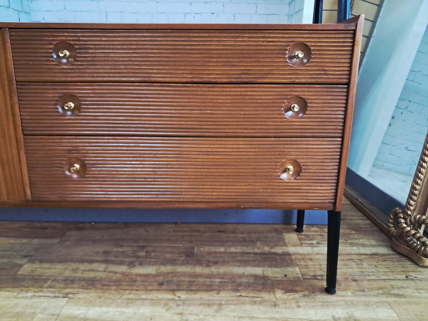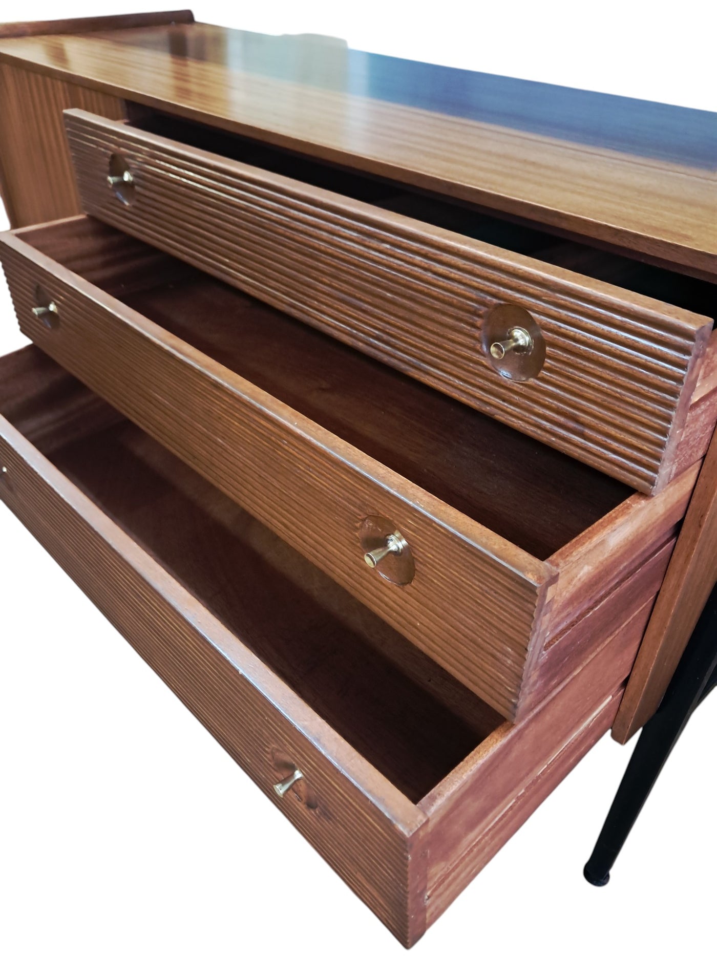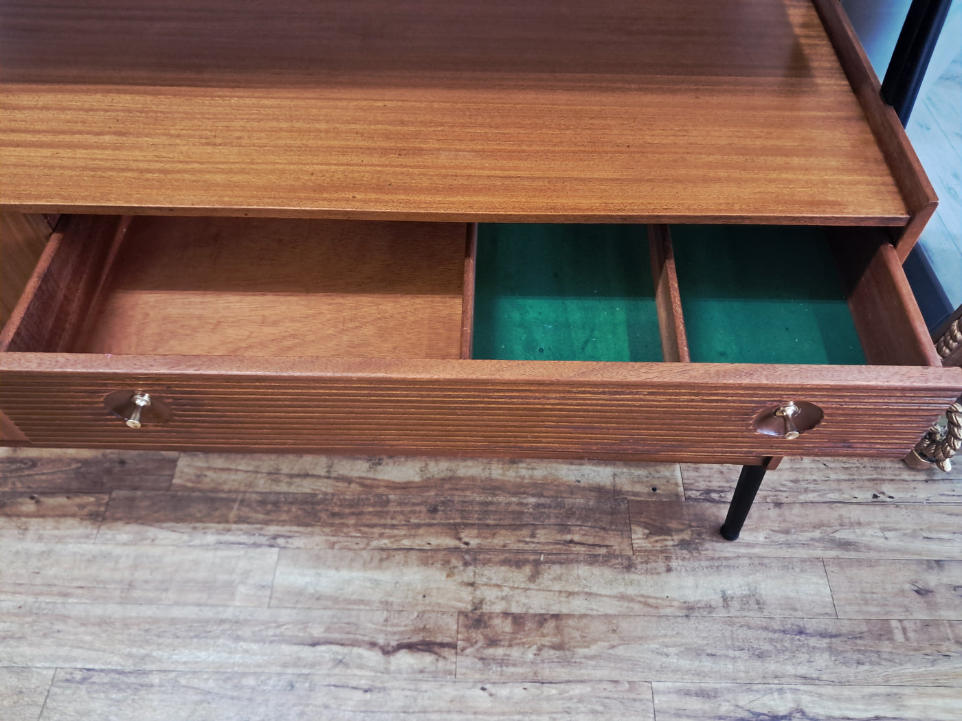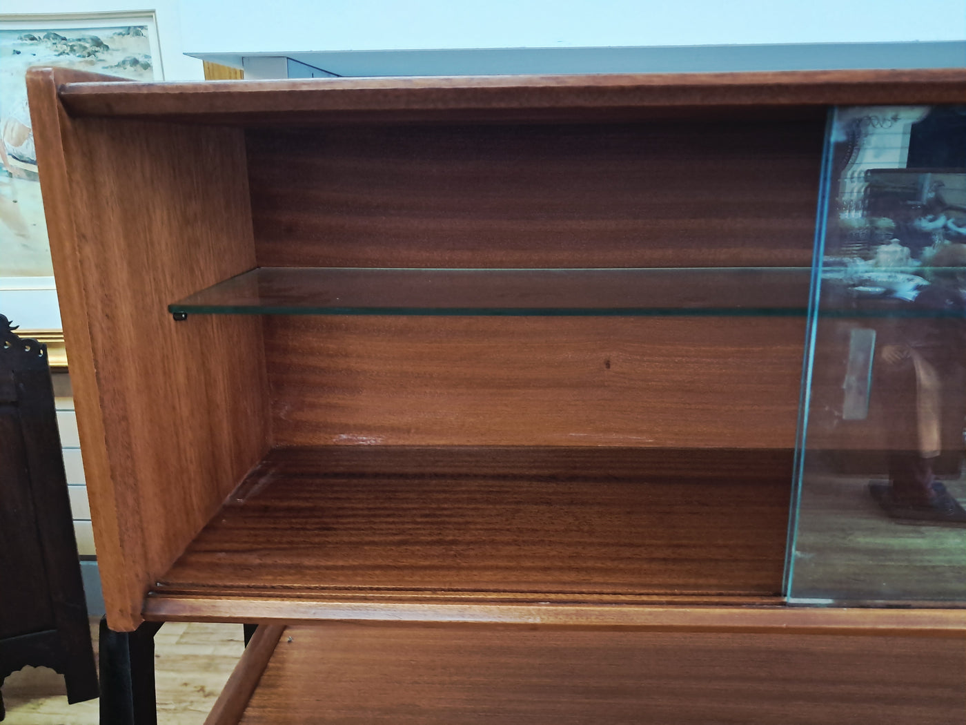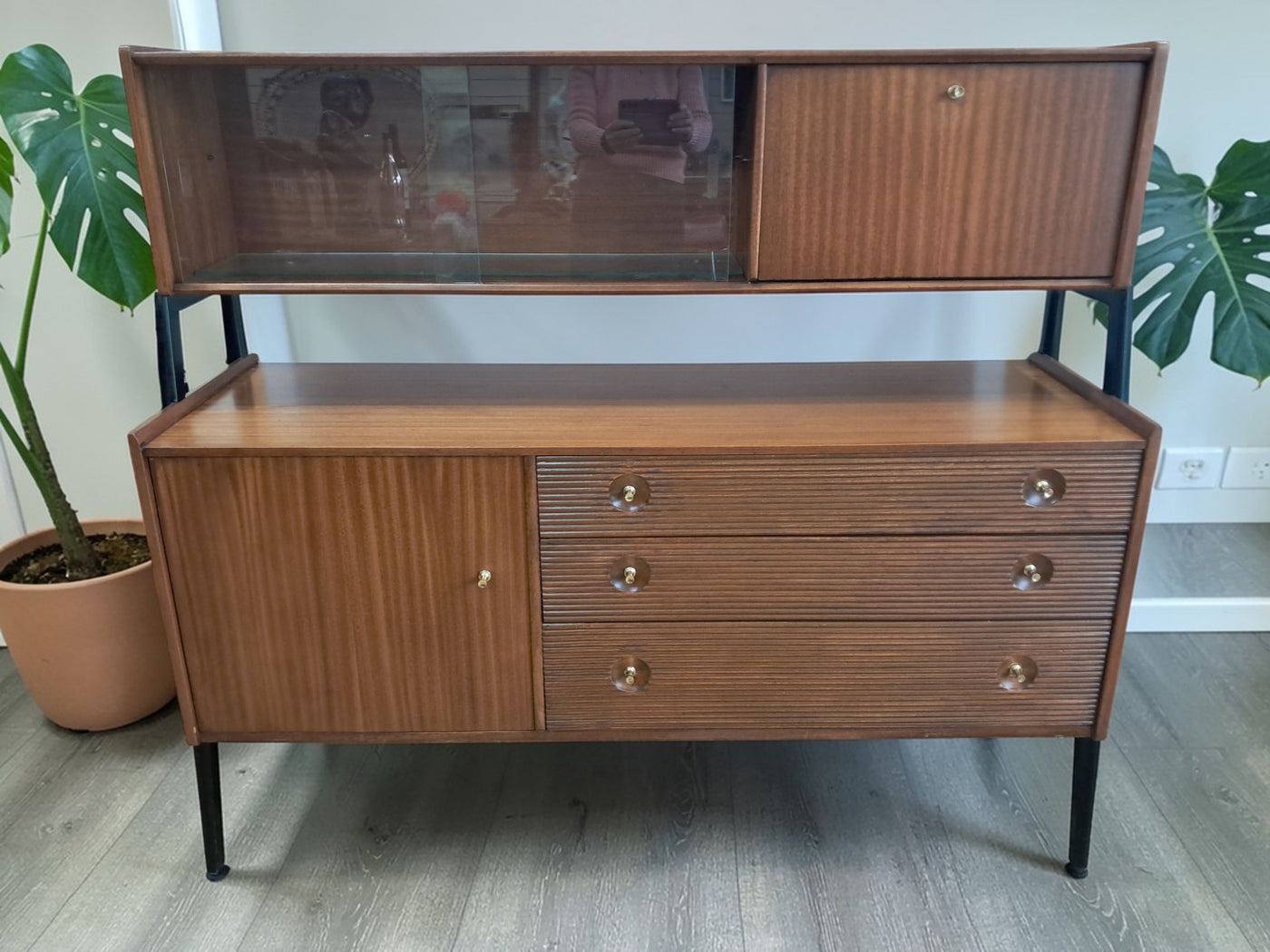 {"id":15775261524346,"title":"Mid Century Vintage Nathan Sideboard Highboard Drinks Cabinet Teak Retro 1960","handle":"mid-century-vintage-nathan-sideboard-highboard-drinks-cabinet-teak-retro-1960","description":"\u003cp\u003e\u003cstrong\u003eNathan Mid-Century Modern Highboard \/ Cocktail Cabinet, 1960s\u003c\/strong\u003e\u003c\/p\u003e\n\u003cp\u003eA refined and architectural Nathan drinks cabinet dating from the mid-1960s, presented in exceptional vintage condition. Crafted in richly toned teak, the cabinet is elevated on a distinctive black trapeze-style frame, giving it a light, floating appearance and strong mid-century presence.\u003c\/p\u003e\n\u003cp\u003eThe upper right section features a fall-front cocktail cabinet, opening to reveal a practical white Formica serving surface—ideal for mixing and serving drinks—along with dedicated internal storage for bottles and barware. To the left, a sliding glass-fronted cupboard with internal glass shelf provides elegant display space, perfect for showcasing glassware or decorative pieces.\u003c\/p\u003e\n\u003cp\u003eBelow, the base offers generous storage. Three wide drawers with reeded fronts and brass pull knobs create striking texture and contrast against the teak grain. The top drawer includes a green felt-lined cutlery compartment, and all drawers are dovetail-jointed, reflecting quality craftsmanship. A single-door cupboard to the left, fitted with an internal shelf, completes the storage arrangement.\u003c\/p\u003e\n\u003cp\u003eThe piece retains its original Nathan label and has been professionally cleaned and oiled to enhance the depth and warmth of the teak. A superb example of 1960s British mid-century design—both functional and visually distinctive.\u003c\/p\u003e\n\u003cp\u003e\u003cstrong\u003eApproximate Dimensions:\u003c\/strong\u003e\u003c\/p\u003e\n\u003cp\u003eWidth: 137 cm\u003c\/p\u003e\n\u003cp\u003eDepth: 45 cm\u003c\/p\u003e\n\u003cp\u003eHeight: 125 cm\u003c\/p\u003e\n\u003cp\u003e\u003cstrong\u003eFREE collection from our shop\u003cspan\u003e \u003c\/span\u003e\u003c\/strong\u003eby appointment only: Tel: 01895 675596\u003c\/p\u003e\n\u003cp\u003eAll of our furniture has been restored\/upcycled professionally with care and attention using quality paints and materials. This item is in exceptional vintage condition.\u003c\/p\u003e\n\u003cp\u003eOur motto is to reuse and recycle these wonderful antique and vintage items so that they get a new lease of life and at the same time you will have a unique, personal item of good quality in your home that will also contribute to the world's carbon footprint. We owe it to our future generations NOT to be a throwaway society.\u003c\/p\u003e\n\u003cp\u003eFREE collection from our shop by appointment only: Tel: 01895 675596\u003c\/p\u003e\n\u003cp\u003eThe delivery quoted in this listing is for mainland UK only.\u003c\/p\u003e\n\u003cp\u003ePlease contact us for a delivery quote to Cornwall, Scotland, Highlands or Islands or Offshore UK, Northern Ireland, Jersey, Guernsey, IOW, etc as it may be more than the price quote.\u003c\/p\u003e\n\u003cp\u003eCourier price quoted is for one man courier to ground floor level only – help will be needed your end. Timed and exact delivery day requests are not available but delivery will normally be within a two week window. If you wish to have a two man courier then we can give you a quote for this.\u003c\/p\u003e\n\u003cp\u003eThis item is available to view at our showroom RetroNovia, 12 New Pond Parade, West End Road, Ruislip Gardens, Middlesex HA4 6LR . Please call us on 01895 675596 to make sure the item is available before coming to view.\u003c\/p\u003e\n\u003cp\u003eWe are located easy access from London and Oxford and are directly off the Main A40 Polish War memorial junction.\u003c\/p\u003e","published_at":"2026-02-28T08:36:19+00:00","created_at":"2026-02-28T08:36:19+00:00","vendor":"Nathan","type":"Sideboard","tags":["Mid Century","Sideboard"],"price":52500,"price_min":52500,"price_max":52500,"available":true,"price_varies":false,"compare_at_price":55000,"compare_at_price_min":55000,"compare_at_price_max":55000,"compare_at_price_varies":false,"variants":[{"id":56632362959226,"title":"Default Title","option1":"Default Title","option2":null,"option3":null,"sku":null,"requires_shipping":true,"taxable":false,"featured_image":null,"available":true,"name":"Mid Century Vintage Nathan Sideboard Highboard Drinks Cabinet Teak Retro 1960","public_title":null,"options":["Default Title"],"price":52500,"weight":80000,"compare_at_price":55000,"inventory_management":"shopify","barcode":null,"requires_selling_plan":false,"selling_plan_allocations":[]}],"images":["\/\/retronovia.co.uk\/cdn\/shop\/files\/nathan_sideboard_drinks_cabinet_1.jpg?v=1772267836","\/\/retronovia.co.uk\/cdn\/shop\/files\/nathan_sideboard_drinks_cabinet_2.jpg?v=1772267835","\/\/retronovia.co.uk\/cdn\/shop\/files\/nathan_sideboard_drinks_cabinet_3.jpg?v=1772267836","\/\/retronovia.co.uk\/cdn\/shop\/files\/nathan_sideboard_drinks_cabinet_4.jpg?v=1772267836","\/\/retronovia.co.uk\/cdn\/shop\/files\/nathan_sideboard_drinks_cabinet_5.jpg?v=1772267836","\/\/retronovia.co.uk\/cdn\/shop\/files\/nathan_sideboard_drinks_cabinet_6.jpg?v=1772267836","\/\/retronovia.co.uk\/cdn\/shop\/files\/nathan_sideboard_drinks_cabinet_7.jpg?v=1772267836","\/\/retronovia.co.uk\/cdn\/shop\/files\/nathan_sideboard_drinks_cabinet_8.jpg?v=1772267836","\/\/retronovia.co.uk\/cdn\/shop\/files\/nathan_sideboard_drinks_cabinet_9.jpg?v=1772267835","\/\/retronovia.co.uk\/cdn\/shop\/files\/nathan_sideboard_drinks_cabinet_10.jpg?v=1772267835","\/\/retronovia.co.uk\/cdn\/shop\/files\/nathan_sideboard_drinks_cabinet_11.jpg?v=1772267837","\/\/retronovia.co.uk\/cdn\/shop\/files\/nathan_sideboard_drinks_cabinet_12.jpg?v=1772267837","\/\/retronovia.co.uk\/cdn\/shop\/files\/nathan_sideboard_drinks_cabinet_13.jpg?v=1772267837","\/\/retronovia.co.uk\/cdn\/shop\/files\/nathan_sideboard_drinks_cabinet_14.jpg?v=1772