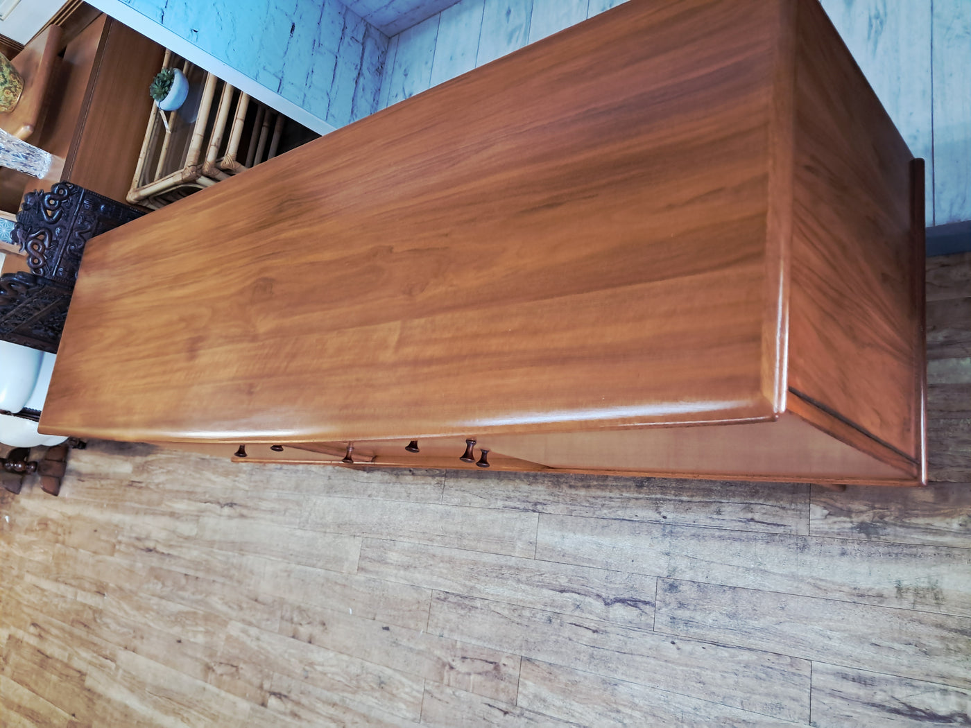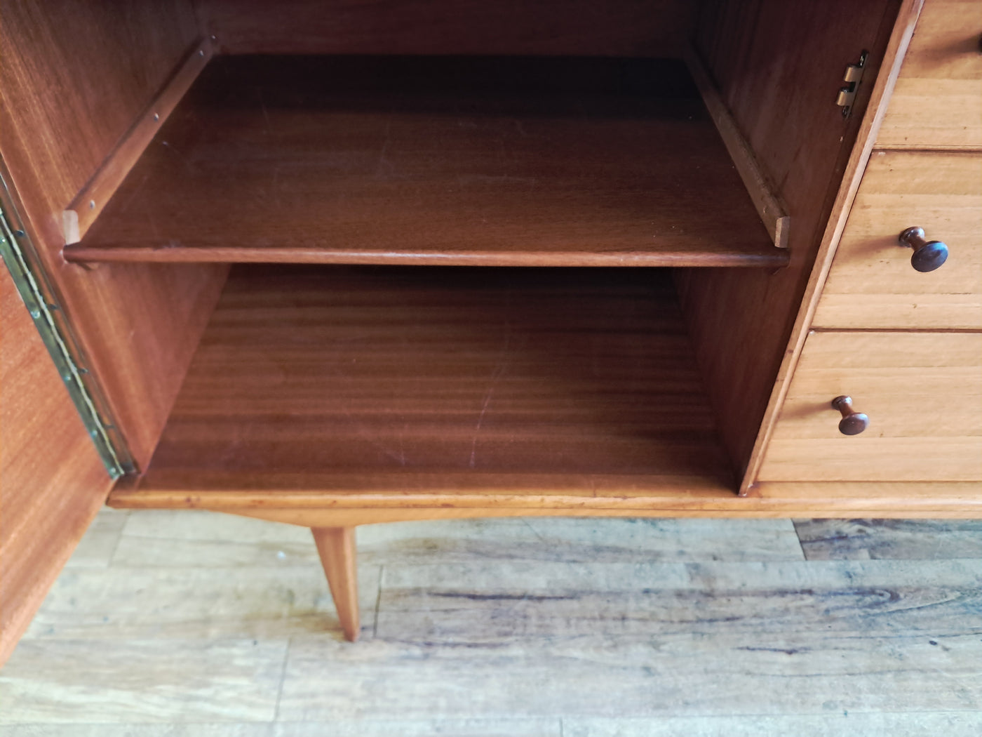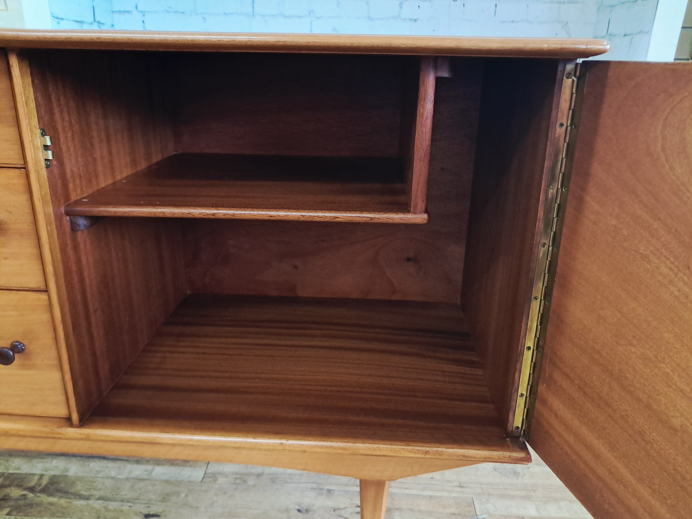 {"id":15609289933178,"title":"Mid Century Vintage Sideboard Alfred Cox Vintage Walnut TV Unit 1950's vgc","handle":"mid-century-vintage-sideboard-alfred-cox-vintage-walnut-tv-unit-restored-1950s","description":"\u003cp\u003e\u003cstrong\u003eAlfred Cox Mid-Century Walnut Sideboard – Professionally Restored, 1950s\u003c\/strong\u003e\u003c\/p\u003e\n\u003cp\u003eThis exceptional mid-century sideboard was designed by the esteemed British furniture maker Alfred Cox and dates to the 1950s, a period synonymous with restrained elegance and exemplary craftsmanship. Originally retailed through Heals of London and other prestigious outlets, this piece has been professionally restored and is presented in superb vintage condition.\u003c\/p\u003e\n\u003cp\u003eCrafted from beautiful walnut wood, the sideboard displays a warm, rich tone and a striking natural grain that is particularly evident across the expansive top and clean-lined frontage. Its well-balanced proportions make it an ideal choice for modern living spaces—substantial yet not overly long—allowing it to function equally well as a refined storage piece or an elegant TV unit.\u003c\/p\u003e\n\u003cp\u003eThe central section comprises three graduated drawers, each constructed with traditional dovetail joints and finished with understated sculpted wooden pull handles. The top drawer retains its original felt lining, designed for cutlery or delicate items. Flanking the drawers are two generously sized cupboards, each offering practical internal shelving for versatile storage.\u003c\/p\u003e\n\u003cp\u003eThe sideboard is raised on four gently tapered wooden legs, lending the piece a light, architectural presence that is characteristic of Alfred Cox’s mid-century designs. Inside one cupboard door, the original metal AC badge and ‘Handcraft’ registered trademark remain intact, confirming the authenticity and heritage of this finely made piece.\u003c\/p\u003e\n\u003cp\u003eA rare and highly desirable example of British mid-century furniture, this Alfred Cox sideboard combines timeless design with everyday practicality—an increasingly scarce find of genuine quality and enduring appeal.\u003c\/p\u003e\n\u003cp\u003e\u003cstrong\u003eFor Lovers of Vintage Furniture \u0026amp; Accessories\u003c\/strong\u003e\u003c\/p\u003e\n\u003cp\u003eA timeless and stylish addition to any home, this piece is perfect for those who appreciate mid-century design, as well as interior designers looking to bring its elegance into their projects.\u003c\/p\u003e\n\u003cp\u003e\u003cstrong\u003eThe measurements are (all measurements are approximate)\u003c\/strong\u003e\u003c\/p\u003e\n\u003cp\u003eLength : 172 cm\u003c\/p\u003e\n\u003cp\u003eDepth 49.5 cm\u003c\/p\u003e\n\u003cp\u003eHeight: 78.5 cm\u003c\/p\u003e\n\u003cp\u003e\u003cstrong\u003eFREE collection from our showroom available\u003c\/strong\u003e\u003cspan\u003e \u003c\/span\u003eby appointment only. Viewing also available. Tel: 01895675596\u003c\/p\u003e\n\u003cp\u003eOur motto is to reuse and recycle these wonderful antique and vintage items so that they get a new lease of life and at the same time you will have a unique, personal item of good quality in your home that will also contribute to the world's carbon footprint. We owe it to our future generations NOT to be a throwaway society.\u003c\/p\u003e\n\u003cp\u003eAll of our furniture has been restored\/upcycled professionally with care and attention using quality paints and materials. This sideboard is in exceptional condition.\u003c\/p\u003e\n\u003cp\u003eThe delivery quoted in this listing is for mainland UK only.\u003c\/p\u003e\n\u003cp\u003ePlease contact us for a delivery quote to Cornwall, Scotland, Highlands or Islands or Offshore UK, Northern Ireland, Jersey, Guernsey, IOW, etc as it may be more than the price quote.\u003c\/p\u003e\n\u003cp\u003eCourier price quoted is for one man courier to ground floor level only – help will be needed your end. Timed and exact delivery day requests are not available but delivery will normally be within a two week window. If you wish to have a two man courier then we can give you a quote for this.\u003c\/p\u003e\n\u003cp\u003eThis item is available to view in our showroom RetroNovia, 12 New Pond Parade, West End Road, Ruislip Gardens, Middlesex HA4 6LR . Please call us on 01895 675596 to make sure the item is available before coming to view.\u003c\/p\u003e\n\u003cp\u003eWe are located easy access from London and Oxford and are directly off the Main A40 Polish War memorial junction.\u003c\/p\u003e","published_at":"2026-01-08T18:18:00+00:00","created_at":"2026-01-08T18:18:00+00:00","vendor":"Alfred Cox","type":"Sideboard","tags":["Mid Century","Sideboard"],"price":69500,"price_min":69500,"price_max":69500,"available":true,"price_varies":false,"compare_at_price":null,"compare_at_price_min":0,"compare_at_price_max":0,"compare_at_price_varies":false,"variants":[{"id":56438021554554,"title":"Default Title","option1":"Default Title","option2":null,"option3":null,"sku":null,"requires_shipping":true,"taxable":false,"featured_image":null,"available":true,"name":"Mid Century Vintage Sideboard Alfred Cox Vintage Walnut TV Unit 1950's vgc","public_title":null,"options":["Default Title"],"price":69500,"weight":80000,"compare_at_price":null,"inventory_management":"shopify","barcode":null,"requires_selling_plan":false,"selling_plan_allocations":[]}],"images":["\/\/retronovia.co.uk\/cdn\/shop\/files\/sideboard_alfred_cox_mid_century_1.jpg?v=1767896338","\/\/retronovia.co.uk\/cdn\/shop\/files\/sideboard_alfred_cox_mid_century_2.jpg?v=1767896338","\/\/retronovia.co.uk\/cdn\/shop\/files\/sideboard_alfred_cox_mid_century_2a.jpg?v=1767896337","\/\/retronovia.co.uk\/cdn\/shop\/files\/sideboard_alfred_cox_mid_century_3.jpg?v=1767896340","\/\/retronovia.co.uk\/cdn\/shop\/files\/sideboard_alfred_cox_mid_century_4.jpg?v=1767896338","\/\/retronovia.co.uk\/cdn\/shop\/files\/sideboard_alfred_cox_mid_century_5.jpg?v=1767896337