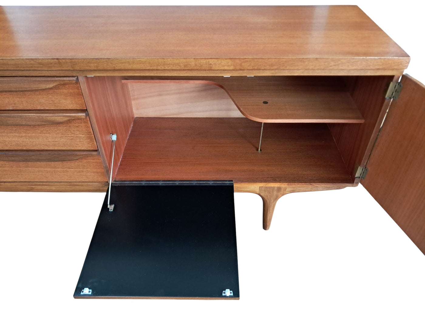 {"id":15363635609978,"title":"Mid Century Vintage Teak Sideboard Restored Retro Greaves \u0026 Thomas 1960","handle":"mid-century-vintage-teak-sideboard-restored-retro-thomas-greaves-1960","description":"\u003ch3 data-start=\"108\" data-end=\"191\"\u003eRare Restored Mid-Century Teak Sideboard by Greaves \u0026amp; Thomas – 1960s Original\u003c\/h3\u003e\n\u003cp data-start=\"193\" data-end=\"578\"\u003eLovingly restored to its former glory, this exceptional mid-century teak sideboard by \u003cstrong data-start=\"279\" data-end=\"299\"\u003eGreaves \u0026amp; Thomas\u003c\/strong\u003e has been carefully cleaned and re-oiled, bringing out the rich depth and warmth of the timber while preserving its authentic character. Free from marks or blemishes, it stands today in \u003cstrong data-start=\"485\" data-end=\"516\"\u003eexcellent vintage condition\u003c\/strong\u003e, ready to grace a new home with elegance and functionality.\u003c\/p\u003e\n\u003cp data-start=\"580\" data-end=\"1033\"\u003eCrafted in the 1960s and retaining its \u003cstrong data-start=\"619\" data-end=\"645\"\u003eoriginal maker’s label\u003c\/strong\u003e, this is a rare example of British mid-century design. Based in London, \u003cstrong data-start=\"718\" data-end=\"738\"\u003eGreaves \u0026amp; Thomas\u003c\/strong\u003e were highly regarded for their high-quality, modernist furniture that blended refined British craftsmanship with the clean, functional lines of Scandinavian design. Their pieces were sold through prestigious retailers and remain prized today for their timeless elegance and exceptional build.\u003c\/p\u003e\n\u003cp data-start=\"1035\" data-end=\"1381\"\u003eThe design is both stylish and highly functional. To the left, a single-door cupboard features a \u003cstrong data-start=\"1132\" data-end=\"1151\"\u003eremovable shelf\u003c\/strong\u003e, providing adaptable storage to suit your needs. Beside it, three drawers include a top drawer fitted with its \u003cstrong data-start=\"1263\" data-end=\"1307\"\u003eoriginal red felt-lined cutlery division\u003c\/strong\u003e, a detail that showcases the quality and thoughtfulness of manufacture.\u003c\/p\u003e\n\u003cp data-start=\"1383\" data-end=\"1829\"\u003eTo the right, two cupboard doors are arranged with different functions: one opens conventionally to reveal versatile shelving, while the other cleverly drops down to form a \u003cstrong data-start=\"1556\" data-end=\"1587\"\u003ecocktail and drinks cabinet\u003c\/strong\u003e. The pull-down door is fitted with a wipe-clean laminate surface, perfect for preparing and serving drinks. Inside, a shaped shelf provides storage for glassware and bottles, set back to allow room for taller items such as wine or spirits.\u003c\/p\u003e\n\u003cp data-start=\"1831\" data-end=\"2110\"\u003eEvery aspect of this sideboard reflects \u003cstrong data-start=\"1871\" data-end=\"1898\"\u003eexcellent craftsmanship\u003c\/strong\u003e, from the dovetail joints and smooth-gliding drawers to its beautifully balanced proportions. Its restored finish enhances the natural teak grain, ensuring it looks as striking today as when it was first made.\u003c\/p\u003e\n\u003ch3 data-start=\"2112\" data-end=\"2153\"\u003eA Statement of Mid-Century Elegance\u003c\/h3\u003e\n\u003cp data-start=\"2154\" data-end=\"2463\"\u003eThis Greaves \u0026amp; Thomas sideboard is both a \u003cstrong data-start=\"2196\" data-end=\"2227\"\u003efunctional storage solution\u003c\/strong\u003e and a \u003cstrong data-start=\"2234\" data-end=\"2253\"\u003estatement piece\u003c\/strong\u003e, equally suited to a dining room, living space, or as a stylish media unit beneath a widescreen television. Its blend of practicality and mid-century design makes it as versatile as it is timelessly elegant.\u003c\/p\u003e\n\u003chr data-start=\"2465\" data-end=\"2468\"\u003e\n\u003ch3 data-start=\"2470\" data-end=\"2521\"\u003eFor Lovers of Vintage Furniture \u0026amp; Accessories\u003c\/h3\u003e\n\u003cp data-start=\"2522\" data-end=\"2816\"\u003eA timeless and stylish addition to any home, this sideboard is perfect for discerning collectors and those who appreciate the beauty of mid-century design. It offers not only exceptional craftsmanship and restored condition, but also rare provenance in the form of its original maker’s label.\u003c\/p\u003e\n\u003cp data-start=\"2818\" data-end=\"3091\"\u003eFor interior designers, this piece provides an opportunity to introduce a touch of mid-century sophistication into projects, whether styled as a centrepiece in a dining room, a chic addition to a modern living space, or an elegant solution for a multifunctional interior.\u003c\/p\u003e\n\u003cp data-start=\"3093\" data-end=\"3241\"\u003e\u003cstrong data-start=\"3093\" data-end=\"3239\"\u003eGreaves \u0026amp; Thomas sideboards of this calibre are seldom found in such pristine, restored condition—making this an opportunity not to be missed.\u003c\/strong\u003e\u003c\/p\u003e\n\u003cp\u003e\u003cstrong\u003eFREE collection from our shop\u003c\/strong\u003e\u003cspan\u003e \u003c\/span\u003eand viewing also available. Please telephone: 01895 675596 to make an appointment.\u003c\/p\u003e\n\u003cp\u003eThe measurements are: (approx)\u003c\/p\u003e\n\u003cp\u003eLength: 176 cm Depth: 45 cm Height: 77.5 cm\u003c\/p\u003e\n\u003cp\u003eOur motto is to reuse and recycle these wonderful antique and vintage items so that they get a new lease of life and at the same time you will have a unique, personal item of good quality in your home that will also contribute to the world's carbon footprint. We owe it to our future generations NOT to be a throwaway society.\u003c\/p\u003e\n\u003cp\u003eAll of our furniture has been restored\/upcycled professionally with care and attention using quality paints and materials. This sideboard is in exceptional condition.\u003c\/p\u003e\n\u003cp\u003eFREE collection from our shop and viewing also available. Please telephone: 01895 675596 to ma