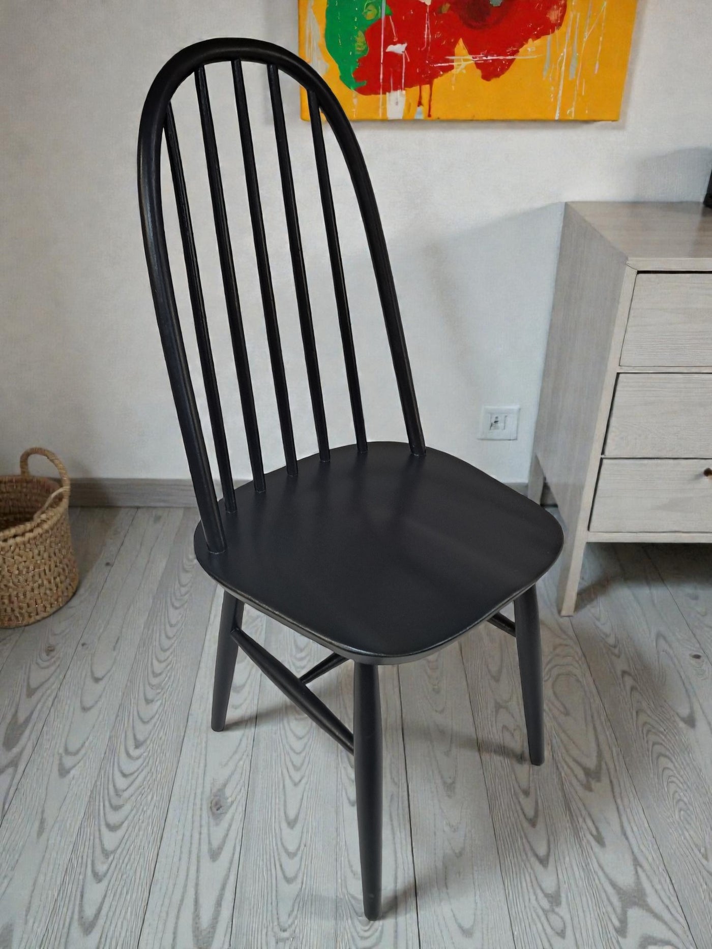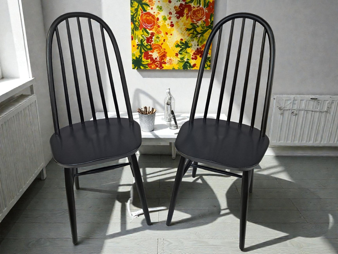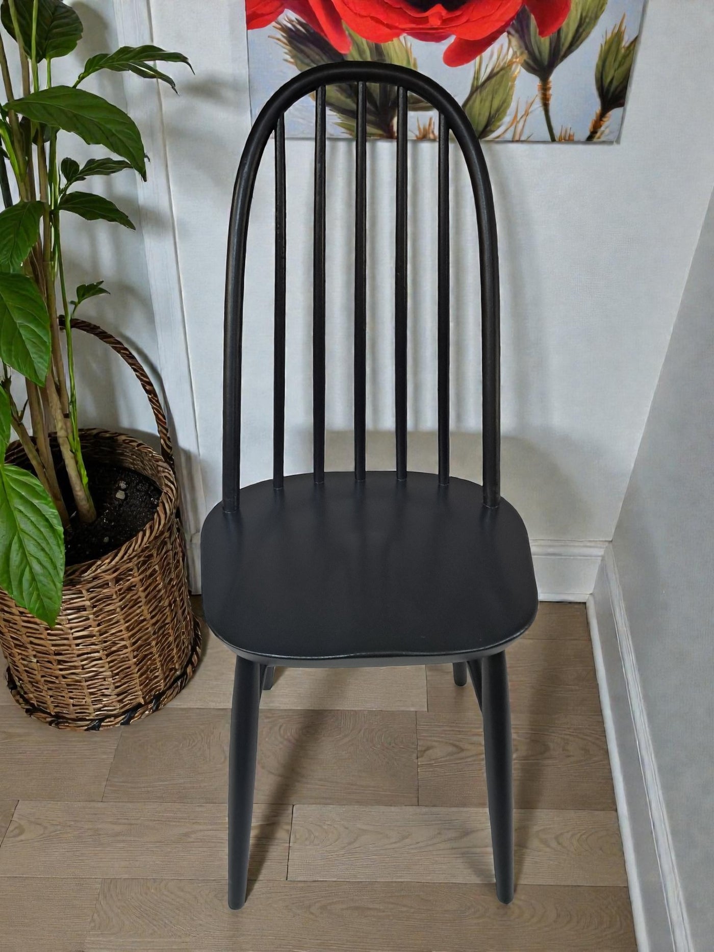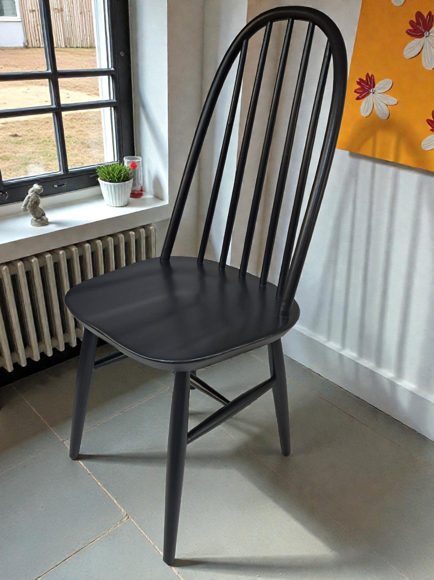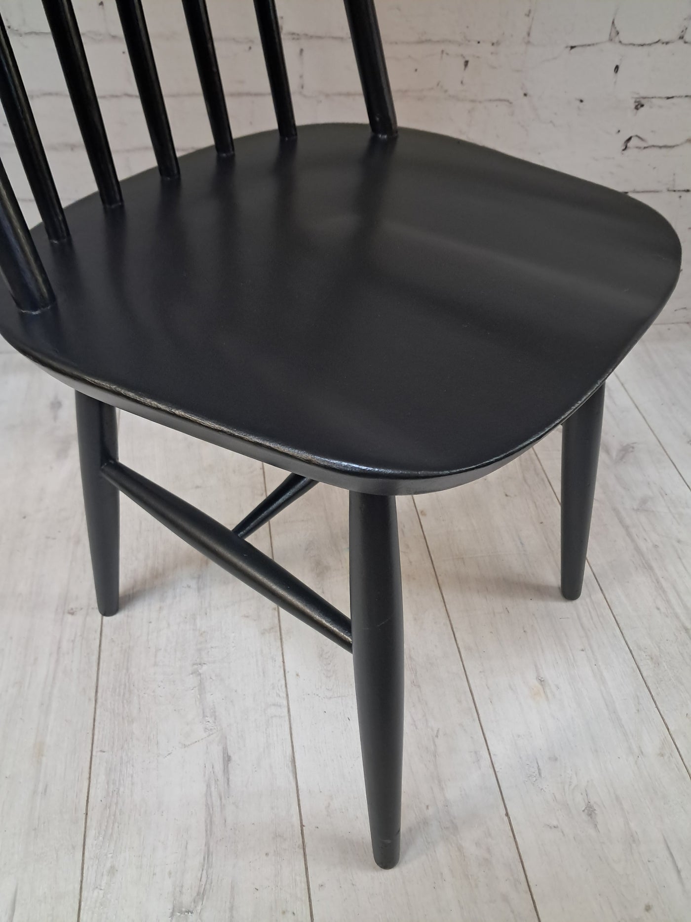 {"id":15606160294266,"title":"Vintage Ercol Windsor Quaker Dining Chairs x 2 - Black Mid Century Chairs Restored 1970","handle":"vintage-ercol-windsor-quaker-dining-chairs-x-2-black-mid-century-chairs-restored-1970","description":"\u003cp\u003e\u003cstrong\u003eMid Century Ercol Windsor Quaker Dining Chairs x 2 - Black Vintage Chairs Restored 1970\u003c\/strong\u003e\u003c\/p\u003e\n\u003cdiv\u003e\n\u003cstrong\u003eA beautifully refined pair of Mid Century Ercol dining chairs, expertly revitalised in a striking Coal Black finish\u003c\/strong\u003e. Originally designed by the celebrated Luciano Ercolani for Ercol in England, this pair from the 1970's showcases everything that makes Mid Century design so timeless — clean lines, sculptural silhouettes, and impeccable craftsmanship. \u003c\/div\u003e\n\u003cdiv\u003e\u003cbr\u003e\u003c\/div\u003e\n\u003cdiv\u003eEach chair features a solid Elm seat paired with a Beech frame, highlighting the natural strength and integrity of Ercol’s materials. The elegant splayed legs, connected with sturdy stretchers, ensure superb stability, while the iconic high hoop backs with five slim spindles offer both style and comfort in equal measure.\u003c\/div\u003e\n\u003cdiv\u003e\u003cbr\u003e\u003c\/div\u003e\n\u003cdiv\u003e\n\u003cstrong\u003eProfessionally sprayed in a luxurious Coal Black paint,\u003c\/strong\u003e\u003cspan\u003e \u003c\/span\u003ethese chairs now carry a refined modern edge while still honouring their Mid Century roots. Their flawless, smooth finish enhances their sculptural form, making them an understated yet commanding addition to any dining room. Beautiful, practical, and steeped in design history, this pair promises to elevate any interior with sophistication and charm.\u003c\/div\u003e\n\u003cdiv\u003e\u003cbr\u003e\u003c\/div\u003e\n\u003cdiv\u003e\n\u003cstrong\u003eFREE collection available from our shop\u003c\/strong\u003e\u003cspan\u003e \u003c\/span\u003eby appointment only. Viewing also available by appointment — Tel: 01895 675596\u003c\/div\u003e\n\u003cdiv\u003e\u003cbr\u003e\u003c\/div\u003e\n\u003cdiv\u003e\u003cstrong\u003eMeasurements (Approx):\u003c\/strong\u003e\u003c\/div\u003e\n\u003cdiv\u003eOverall Height: 98cm Overall Width: 44cm Overall Depth: 42.5cm\u003c\/div\u003e\n\u003cdiv\u003eSeat Height: 46cm Seat Width: 44cm Seat Depth: 42.5cm\u003c\/div\u003e\n\u003cdiv\u003e\u003cbr\u003e\u003c\/div\u003e\n\u003cdiv\u003e\u003cstrong\u003eFor Lovers of Vintage Furniture \u0026amp; Accessories\u003c\/strong\u003e\u003c\/div\u003e\n\u003cdiv\u003e\u003cbr\u003e\u003c\/div\u003e\n\u003cdiv\u003eA timeless and stylish addition to any home, this pair is perfect for those who appreciate Mid Century design, offering practicality and enduring beauty in equal measure.\u003c\/div\u003e\n\u003cdiv\u003e\u003cbr\u003e\u003c\/div\u003e\n\u003cdiv\u003e\u003cb\u003eFor Interior Designers\u003c\/b\u003e\u003c\/div\u003e\n\u003cdiv\u003e\u003cbr\u003e\u003c\/div\u003e\n\u003cdiv\u003eThese chairs provide an elegant, sculptural accent ideal for sophisticated design schemes. A timeless and stylish addition to any home, this set is perfect for those who appreciate mid-century design, as well as interior designers looking to bring its elegance into their projects.\u003c\/div\u003e\n\u003cdiv\u003e\u003cbr\u003e\u003c\/div\u003e\n\u003cdiv\u003eAt our vintage furniture emporium, we wholeheartedly embrace the ethos of reusing and recycling these remarkable antique and vintage treasures. By breathing new life into these items, we not only provide them with a fresh start but also offer you the opportunity to adorn your home with a truly distinctive and high-quality piece, all while making a positive impact on the planet's carbon footprint.\u003c\/div\u003e\n\u003cdiv\u003e\u003cbr\u003e\u003c\/div\u003e\n\u003cdiv\u003eEvery item in our collection has undergone either meticulous restoration, thoughtful upcycling or sympathetic cleaning \u0026amp; oiling, depending on the amount of work needed to bring the item back to its former glory and this is carried out with utmost care and attention. We employ top-notch paints and materials to ensure a professional finish that stands the test of time. It's important to note that, given their antique nature, our pieces may exhibit charming signs of age and minor imperfections, which only add to their character and authenticity.\u003c\/div\u003e\n\u003cdiv\u003e\u003cbr\u003e\u003c\/div\u003e\n\u003cdiv\u003eChoose to be a part of our sustainable journey and relish the chance to own a personalised item of exceptional quality, enriching your living space with a touch of history and reducing environmental impact in the process.\u003c\/div\u003e\n\u003cdiv\u003e\u003cbr\u003e\u003c\/div\u003e\n\u003cdiv\u003eThe delivery quoted in this listing is for mainland UK only.\u003c\/div\u003e\n\u003cdiv\u003ePlease contact us for a delivery quote to Cornwall, Scotland, Highlands or Islands or Offshore UK, Northern Ireland, Jersey, Guernsey, IOW, etc as it may be more than the price quote.\u003c\/div\u003e\n\u003cdiv\u003e\u003cbr\u003e\u003c\/div\u003e\n\u003cdiv\u003eCourier price quoted is for specialist antique courier to ground floor level only. Timed and exact delivery day requests are not available but delivery will normally be within a two week window. If you wish to have a two man courier then we can give you a quote for this.\u003c\/div\u003e\n\u003cdiv\u003e\u003cbr\u003e\u003c\/div\u003e\n\u003cdiv\u003eThis item is available to view at our showroom RetroNovia , 12 New Pond Parade, West End Road, Ruislip Gardens, Middlesex HA4 6LR . Please call us on 01895 675596 to make sure the item is available before coming to view.\u003c\/div\u003e\n\u003cdiv\u003e\u003cbr\u003e\u003c\/div\u003e\n\u003cdiv\u003eWe are located easy access from London and Oxford and are directly off the Main A40 Polish War memorial junction.\u003c\/div\u003e\n\u003cdiv\u003eThis item is available to view at our showroom R