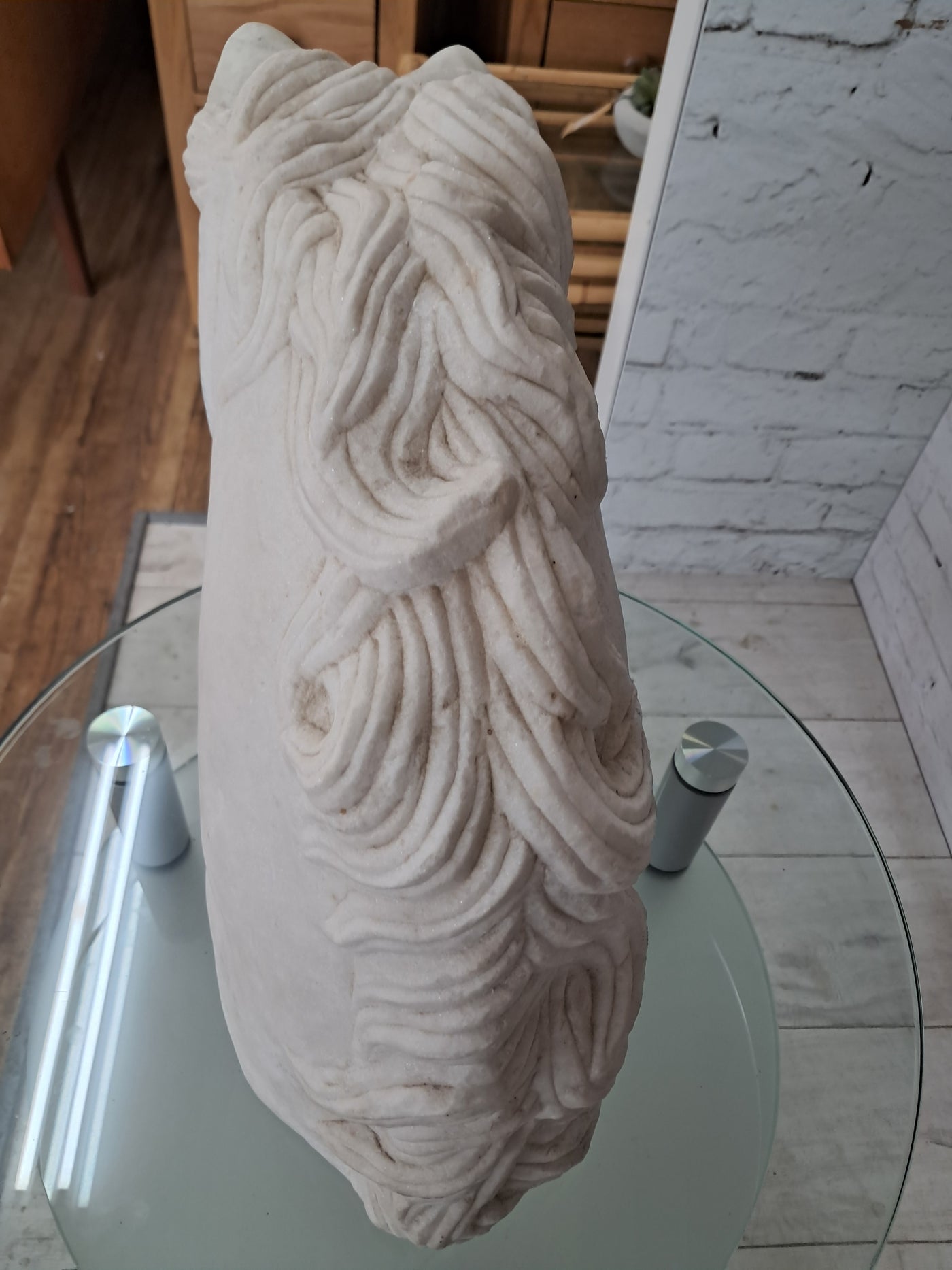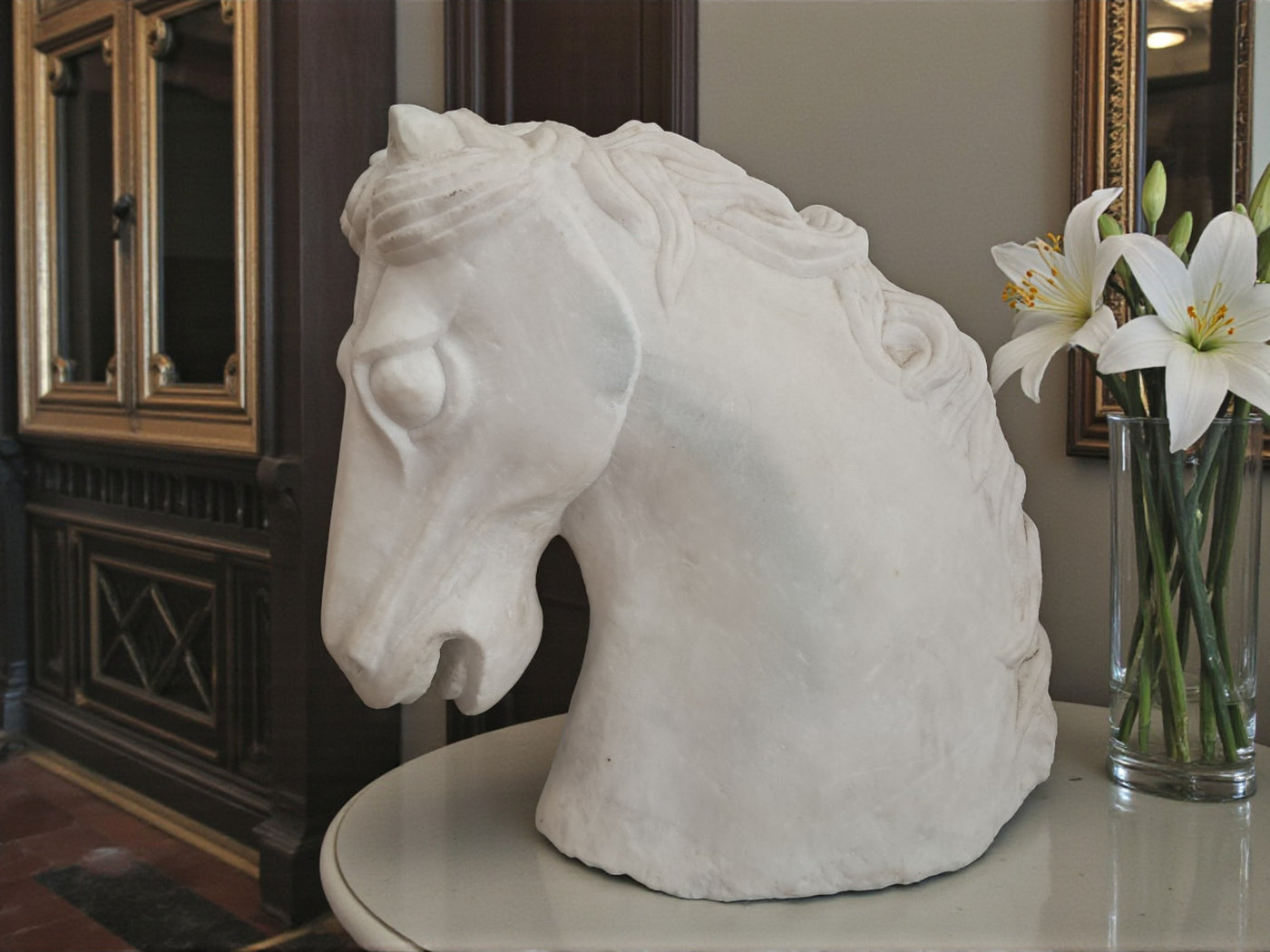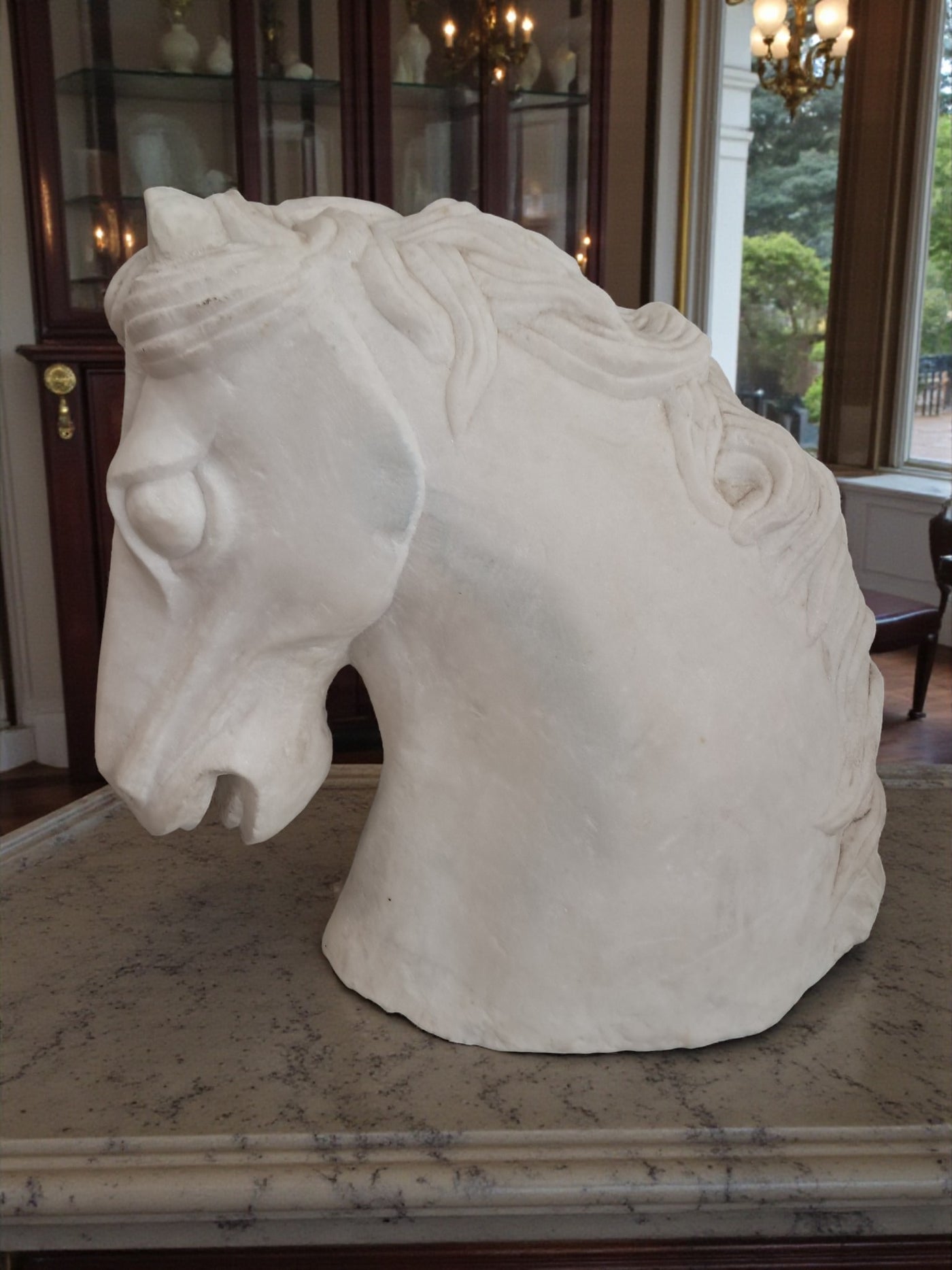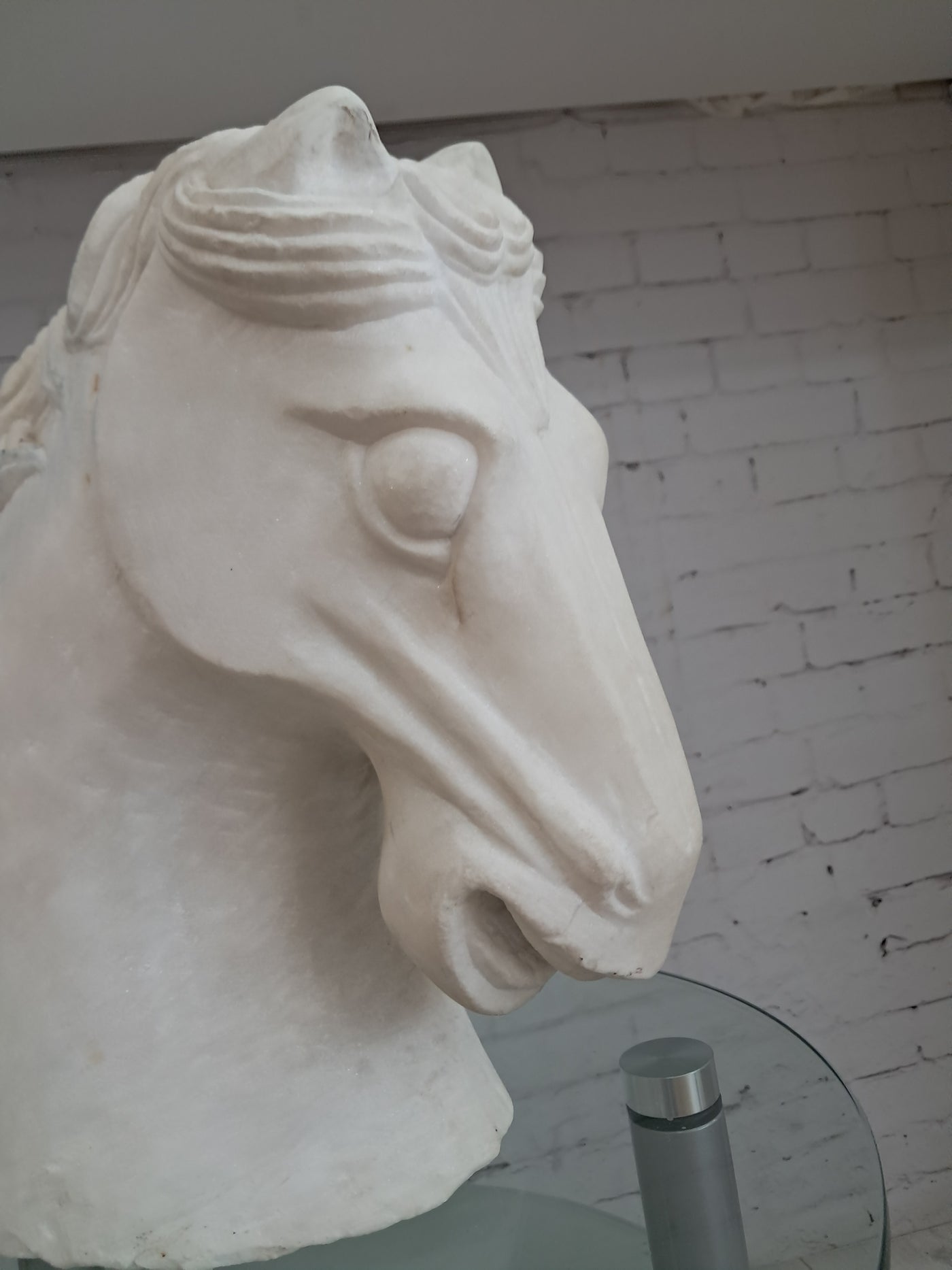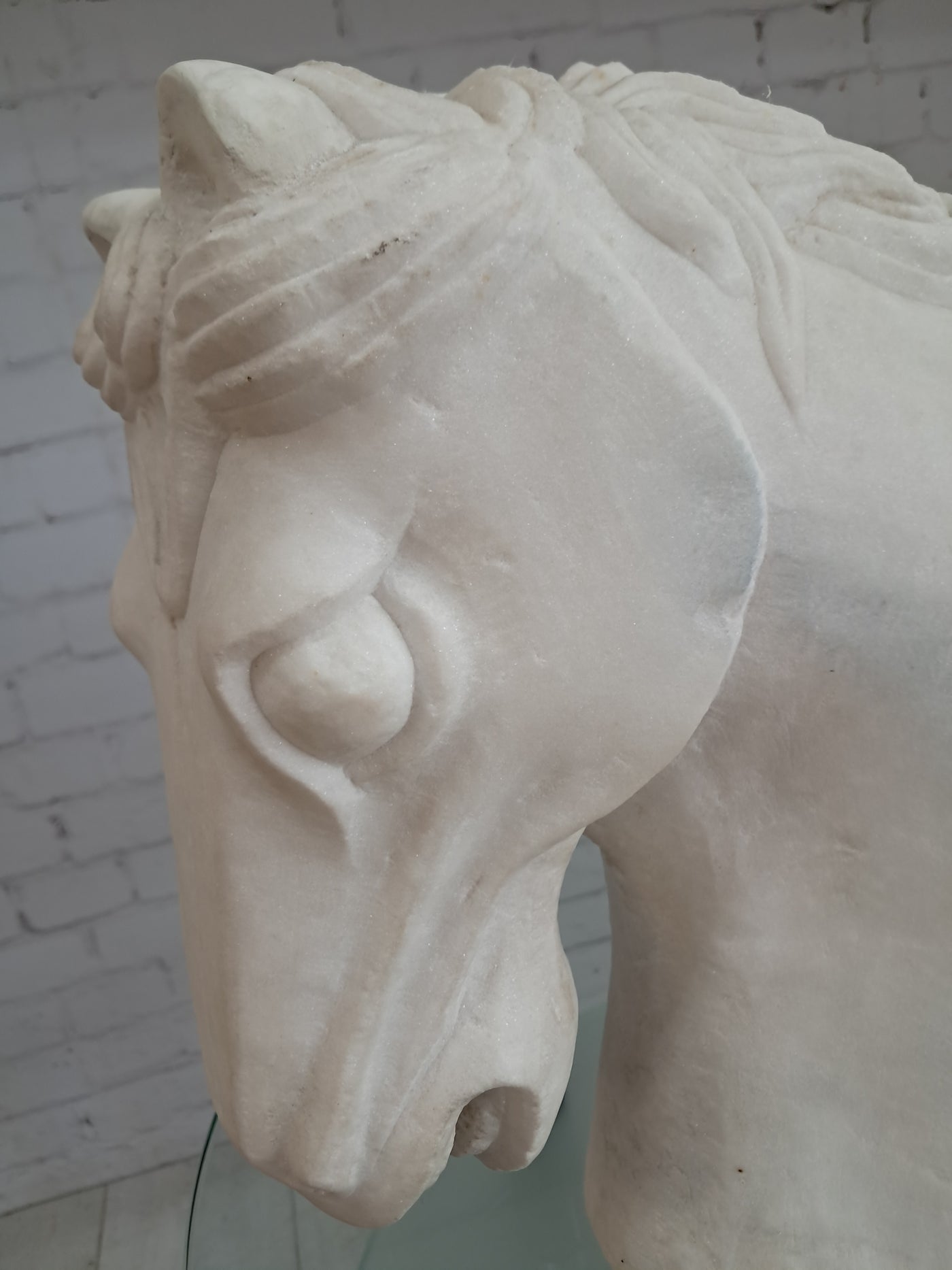 {"id":15627865031034,"title":"Vintage LARGE Horse Head Bust Sculpture White Marble Ancient Greek Style 35cm Tall","handle":"vintage-large-horse-head-bust-sculpture-white-marble-ancient-greek-style-35cm-tall","description":"\u003cdiv\u003e\u003cstrong\u003eMonumental Vintage White Marble Horse Head Bust – Classical Greek Style - In superb Condition\u003c\/strong\u003e\u003c\/div\u003e\n\u003cdiv\u003e\u003cbr\u003e\u003c\/div\u003e\n\u003cdiv\u003eThis magnificent vintage horse head bust is a striking sculptural piece carved from solid white marble, exuding classical elegance and timeless presence. Substantial in both scale and weight, it is an unmistakably high-quality object that commands attention the moment it is placed within a space.\u003c\/div\u003e\n\u003cdiv\u003e\u003cbr\u003e\u003c\/div\u003e\n\u003cdiv\u003eThe sculpture is executed in a Greco-classical style, with beautifully proportioned features and a strong, noble profile. The flowing mane is expertly carved with rhythmic movement and depth, while the softly contoured musculature of the neck conveys strength, poise, and restrained power—hallmarks of classical Greek influence. The marble itself has a gentle, natural patina, enhancing its authenticity and lending warmth to the otherwise crisp white surface.\u003c\/div\u003e\n\u003cdiv\u003e\u003cbr\u003e\u003c\/div\u003e\n\u003cdiv\u003eThis is a very heavy and large piece, clearly intended as a statement object rather than a decorative afterthought. Its weight and solidity speak to its quality and durability, making it suitable for both private and commercial environments.\u003c\/div\u003e\n\u003cdiv\u003e\u003cbr\u003e\u003c\/div\u003e\n\u003cdiv\u003e\u003cstrong\u003eInterior \u0026amp; Styling Suggestions\u003c\/strong\u003e\u003c\/div\u003e\n\u003cdiv\u003e\u003cbr\u003e\u003c\/div\u003e\n\u003cdiv\u003e\u003cstrong\u003eResidential Settings:\u003c\/strong\u003e\u003c\/div\u003e\n\u003cdiv\u003e\u003cbr\u003e\u003c\/div\u003e\n\u003cdiv\u003eIdeal as a dramatic focal point in a grand hallway or entrance hall, where its sculptural form can be appreciated from multiple angles.\u003c\/div\u003e\n\u003cdiv\u003e\u003cbr\u003e\u003c\/div\u003e\n\u003cdiv\u003eExceptionally well-suited to period homes, Georgian or Victorian properties, or modern interiors seeking a bold classical contrast.\u003c\/div\u003e\n\u003cdiv\u003e\u003cbr\u003e\u003c\/div\u003e\n\u003cdiv\u003eLooks particularly striking in minimalist or neutral interiors, where the purity of the white marble can take centre stage.\u003c\/div\u003e\n\u003cdiv\u003e\u003cbr\u003e\u003c\/div\u003e\n\u003cdiv\u003eA superb addition to a study, library, or living room styled with classical, equestrian, or art-led influences.\u003c\/div\u003e\n\u003cdiv\u003e\u003cbr\u003e\u003c\/div\u003e\n\u003cdiv\u003e\u003cstrong\u003eCommercial \u0026amp; Professional Spaces:\u003c\/strong\u003e\u003c\/div\u003e\n\u003cdiv\u003e\u003cbr\u003e\u003c\/div\u003e\n\u003cdiv\u003ePerfect for boutique hotels, luxury spas, private members’ clubs, or high-end restaurants seeking an atmosphere of refinement and heritage.\u003c\/div\u003e\n\u003cdiv\u003e\u003cbr\u003e\u003c\/div\u003e\n\u003cdiv\u003eAn outstanding statement piece for reception areas in law firms, architectural practices, galleries, or design studios.\u003c\/div\u003e\n\u003cdiv\u003e\u003cbr\u003e\u003c\/div\u003e\n\u003cdiv\u003eWorks beautifully in upscale retail environments, especially those focused on luxury goods, interiors, or art and design.\u003c\/div\u003e\n\u003cdiv\u003e\u003cbr\u003e\u003c\/div\u003e\n\u003cdiv\u003eA rare and powerful decorative object, this marble horse head bust embodies classical beauty and enduring craftsmanship. It is a piece for those who appreciate sculptural art with presence, history, and gravitas—equally at home in a refined private residence or a distinguished commercial setting.\u003c\/div\u003e\n\u003cdiv\u003e\u003cbr\u003e\u003c\/div\u003e\n\u003cdiv\u003eThis would make a great gift for anyone who loves horses or the equestrian life.\u003c\/div\u003e\n\u003cdiv\u003e\u003cstrong\u003e\u003cbr\u003e\u003c\/strong\u003e\u003c\/div\u003e\n\u003cdiv\u003e\u003cstrong\u003eMeasurements: approx\u003c\/strong\u003e\u003c\/div\u003e\n\u003cdiv\u003e35 cm H x 19cm W x 37cm D \u003c\/div\u003e\n\u003cdiv\u003e\u003cbr\u003e\u003c\/div\u003e\n\u003cdiv\u003eThis item is available to view by appointment only - Tel: 01895675596. FREE collection by appointment only.\u003c\/div\u003e\n\u003cdiv\u003e\u003cbr\u003e\u003c\/div\u003e\n\u003cdiv\u003eOur guiding principle is to breathe new life into these exceptional antique and vintage pieces, offering them a fresh opportunity for use. By doing so, you not only acquire a distinctive and high-quality item for your home but also play a part in reducing the world's carbon footprint. Join us in supporting future generations and avoid adopting a disposable mindset.\u003c\/div\u003e\n\u003cdiv\u003e\u003cbr\u003e\u003c\/div\u003e\n\u003cdiv\u003eFREE collection from our shop is available by appointment only.\u003c\/div\u003e\n\u003cdiv\u003eThe delivery quoted in this listing is for mainland UK only.\u003c\/div\u003e\n\u003cdiv\u003ePlease contact us for a delivery quote to Cornwall, Scotland, Highlands or Islands or Offshore UK, Northern Ireland, Jersey, Guernsey, IOW, etc as it may be more than the price quote.\u003c\/div\u003e\n\u003cdiv\u003e\u003cbr\u003e\u003c\/div\u003e\n\u003cdiv\u003eDue to the delicate nature of this item Courier price quoted is for specialist furniture courier. Timed and exact delivery day requests are not available but delivery will normally be within a two week window. \u003c\/div\u003e\n\u003cdiv\u003e\u003cbr\u003e\u003c\/div\u003e\n\u003cdiv\u003eThis item is available to view in our showroom RetroNovia, 12 New Pond Parade, West End Road, Ruislip Gardens, Middlesex HA4 6LR . Please call us on 01895 675596 to make sure the item is available before coming to vie