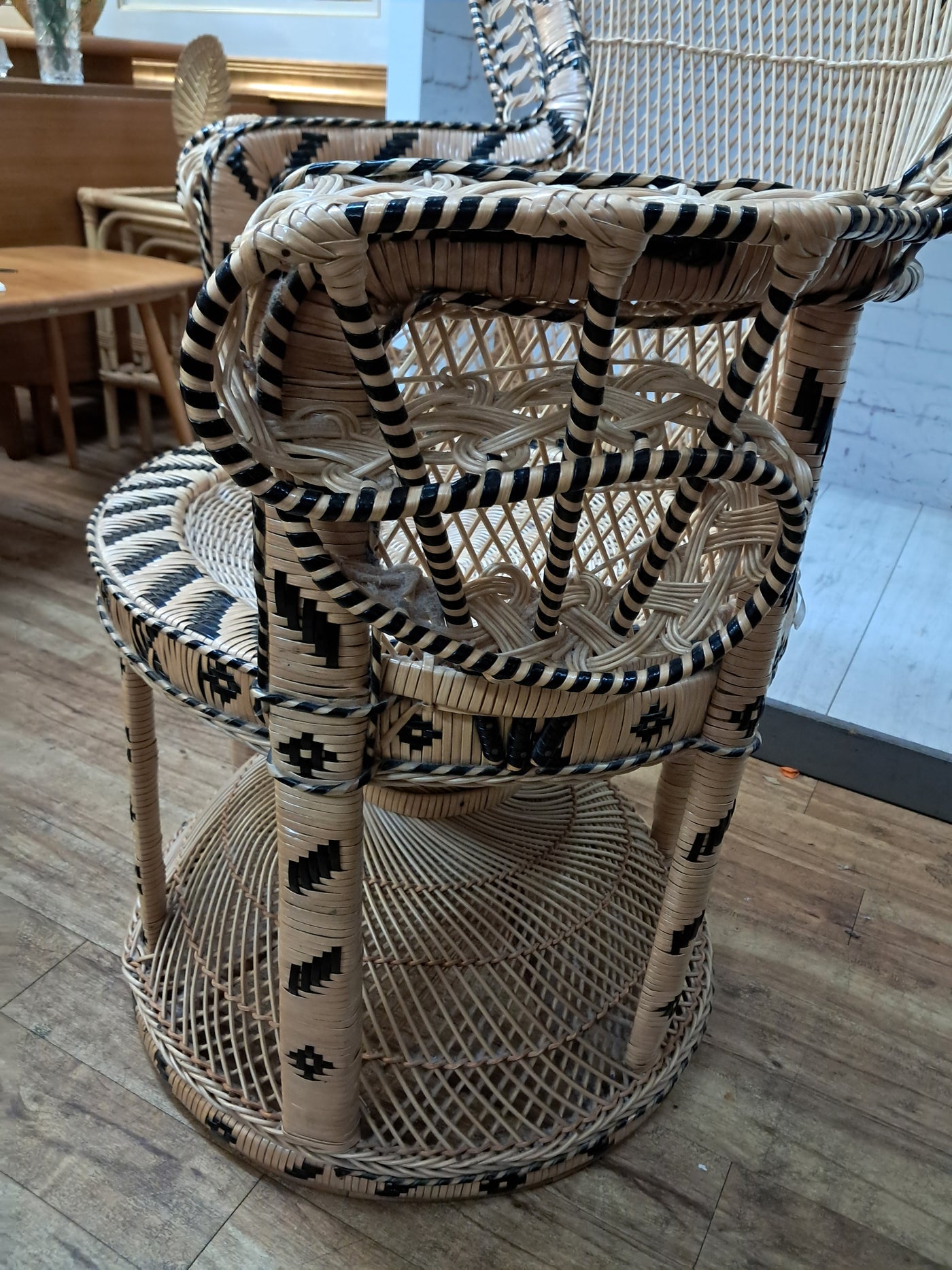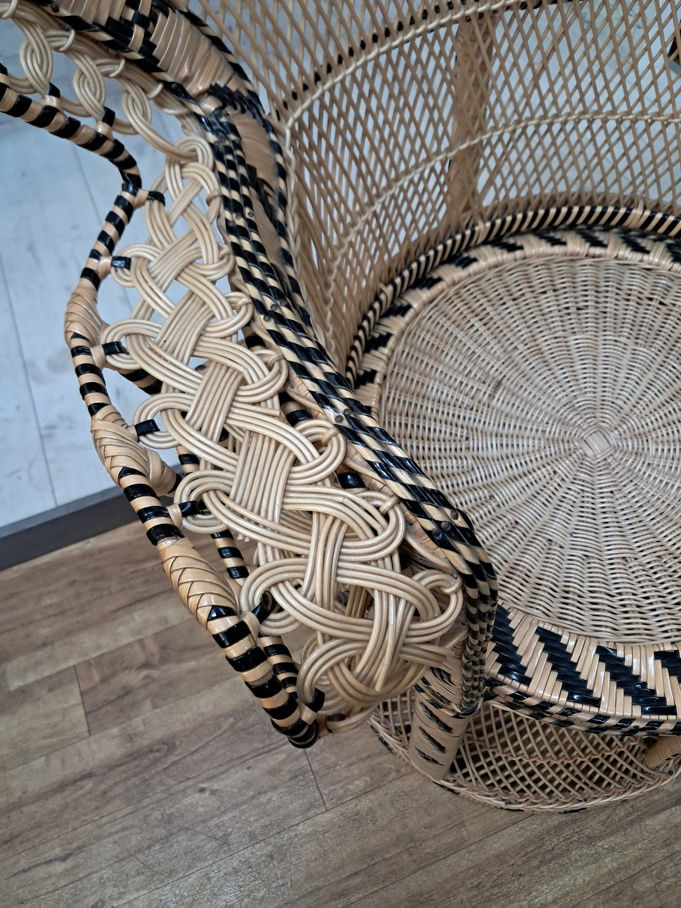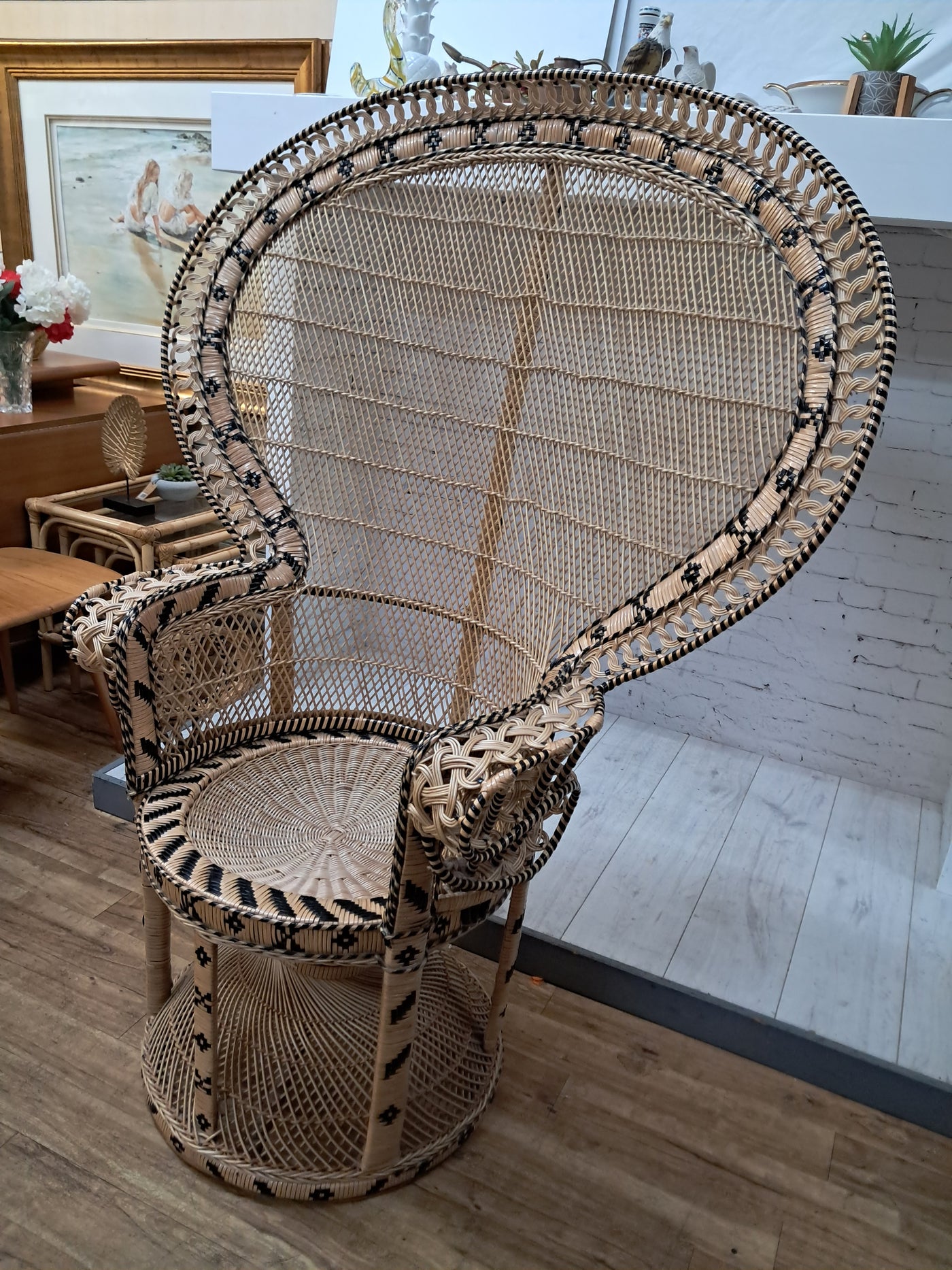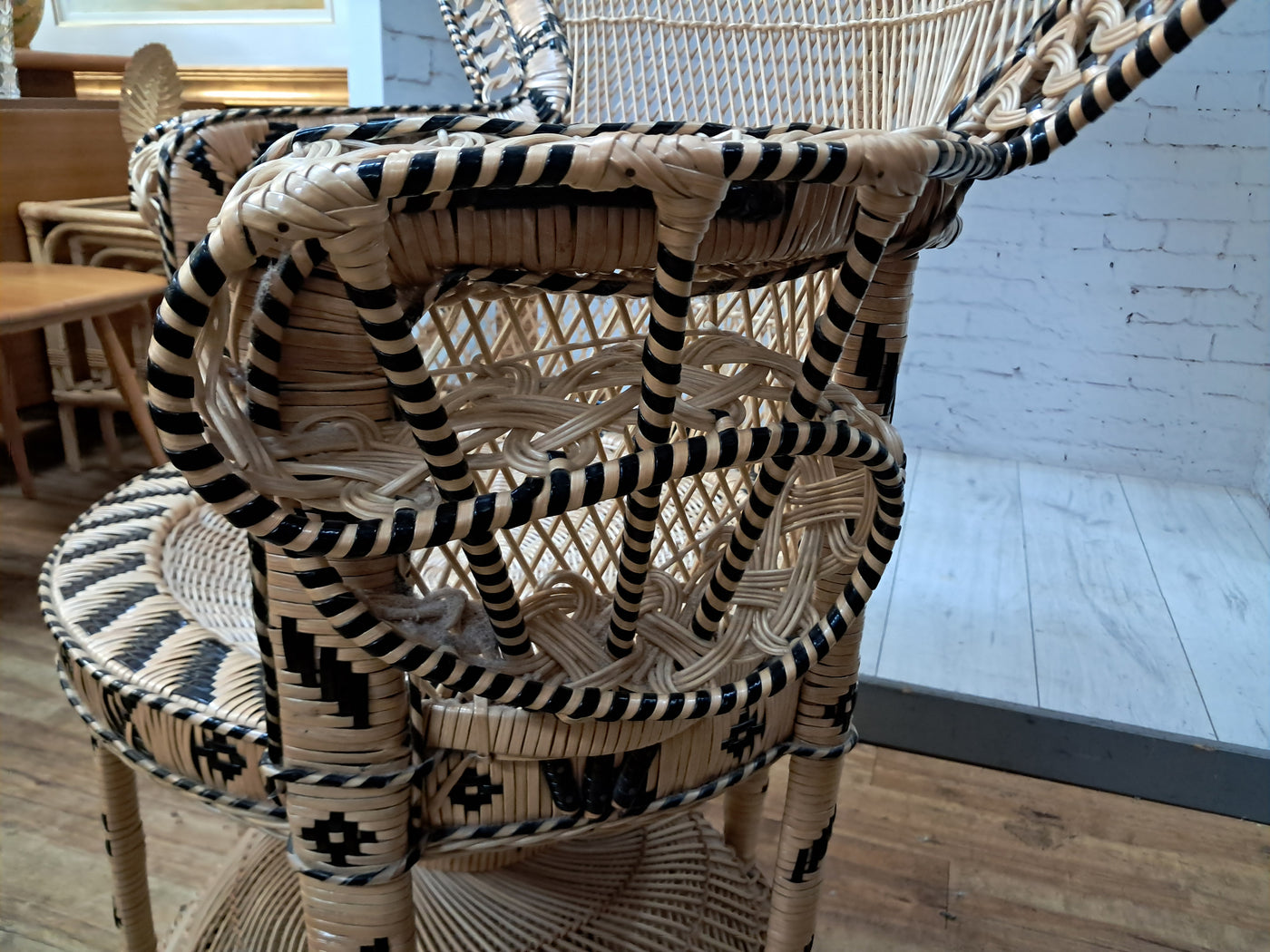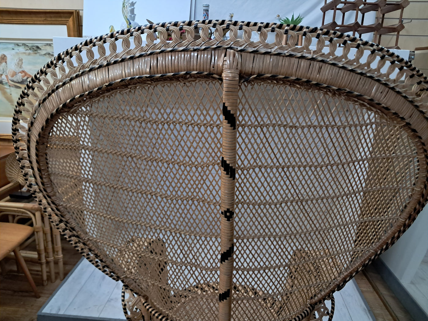{"id":15563356242298,"title":"Mid Century Peacock Chair Emmanuelle Wicker Throne Rattan Bohemian 1970's LARGE","handle":"vintage-mid-century-white-rattan-peacock-chair-wicker-chair-conservatory-large-copy","description":"\u003cp\u003e\u003cstrong\u003eIconic 1970s Emmanuelle Peacock Chair with Twisted Base\u003c\/strong\u003e\u003c\/p\u003e\n\u003cp\u003eThis beautiful and highly decorative Emmanuelle Peacock Chair dates from the 1970s and is a striking example of this iconic design. Crafted from natural rattan, the chair features the classic high fan-shaped back with intricate woven detailing, elegant scroll arms and a distinctive twisted pedestal base, giving it both visual drama and excellent structural strength.\u003c\/p\u003e\n\u003cp\u003eThe Emmanuelle chair rose to fame through its appearances in popular culture, most notably in The Addams Family and the cult film Emmanuelle. As a result, it is commonly referred to as an “Emmanuelle” chair in France and remains one of the most recognisable and sought-after rattan designs of the 20th century.\u003c\/p\u003e\n\u003cp\u003eThis example is particularly well made and notably heavy, reflecting the quality of materials and craftsmanship. The level of detail throughout the weaving is excellent, from the patterned edging around the backrest to the finely constructed seat and base. The chair is in superb condition, with all rattan intact, tight, and free from damage, making it both decorative and functional.\u003c\/p\u003e\n\u003cp\u003eA removable seat cushion is included, providing added comfort while complementing the natural tones of the rattan.\u003c\/p\u003e\n\u003cp\u003e\u003cstrong\u003eFor Bohemian Beach House Vibes:\u003c\/strong\u003e\u003c\/p\u003e\n\u003cp\u003ePerfect for creating relaxed, bohemian beach house interiors, this Emmanuelle chair brings effortless style and warmth to any space. It works beautifully in a conservatory, where natural light enhances the woven rattan and creates an inviting, tranquil setting for reading or relaxation. Whether placed in a sunroom, coastal living area, bedroom, or styled corner, it evokes laid-back luxury with a hint of 1970s glamour, making it an ideal statement piece for interiors inspired by natural textures and easy living.\u003c\/p\u003e\n\u003cp\u003eA timeless and stylish addition to any home, this piece is perfect for those who appreciate iconic design, as well as interior designers looking to incorporate a bold and elegant focal point into their projects. It would also make an exceptional prop for weddings, photoshoots, and events, or for use within retail spaces, boutique hotels, salons, or hospitality interiors, where its instantly recognisable silhouette adds character, drama, and visual impact.\u003c\/p\u003e\n\u003cp\u003e\u003cstrong\u003eMeasurements: (approx)\u003c\/strong\u003e\u003cbr\u003eOverall: 147cm Height x 56 cm depth 113cm width\u003cbr\u003eHeight to seat: 46cm with cushion: 51cm\u003cbr\u003eSeat: Width 50cm x Depth: 50cm \u003c\/p\u003e\n\u003cp\u003eThis peacock chair is truly magnificent and will look very regal in any beach house, home interior, garden room, business reception or entryway, designer home interior.\u003c\/p\u003e\n\u003cp\u003eFor discerning lovers of bohemian vintage and interior connoisseurs, this piece offers an unparalleled blend of comfort and prestige. \u003c\/p\u003e\n\u003cp\u003eAll of our furniture has been restored\/upcycled or professionally cleaned with care and attention using quality paints and materials. \u003c\/p\u003e\n\u003cp\u003eOur motto is to reuse and recycle these wonderful antique and vintage items so that they get a new lease of life and at the same time you will have a unique, personal item of good quality in your home that will also contribute to the world's carbon footprint. We owe it to our future generations NOT to be a throwaway society.\u003c\/p\u003e\n\u003cp\u003eFREE collection is available from our shop by appointment only. Viewing by appointment - 01895 675596\u003c\/p\u003e\n\u003cp\u003eWe can offer local delivery please message for quote\u003cbr\u003eThe delivery quoted in this listing is for mainland UK only.\u003cbr\u003ePlease contact us for a delivery quote to Cornwall, Scotland, Highlands or Islands or Offshore UK, Northern Ireland, Jersey, Guernsey, IOW, etc as it may be more than the price quote.\u003c\/p\u003e\n\u003cp\u003eCourier price quoted is for one man courier to ground floor level only – help will be needed your end. Timed and exact delivery day requests are not available but delivery will normally be within a two week window. If you wish to have a two man courier then we can give you a quote for this.\u003c\/p\u003e\n\u003cp\u003eThis item is available to view at our showroom RetroNovia, 12 New Pond Parade, West End Road, Ruislip Gardens, Middlesex HA4 6LR . Please call us on 01895 675596 to make sure the item is available before coming to view.\u003c\/p\u003e\n\u003cp\u003eWe are located easy access from London and Oxford and are directly off the Main A40 Polish War memorial junction.\u003c\/p\u003e","published_at":"2025-12-17T15:52:43+00:00","created_at":"2025-12-17T15:52:43+00:00","vendor":"RetroNovia","type":"Peacock Chair","tags":["Chair","Peacock Chair","Rattan Chair","Wicker Chair"],"price":52500,"price_min":52500,"price_max":52500,"available":true,"price_varies":false,"compare_at_price":55000,"compare_at_price_min":55000,"compare_at_price_max":55000,"compare_at_price_varies":false,"variants":[{"id":56349986521466,"title":"Default Title","option1":"Default Title","option2":null,"option3":null,"sku":"1555","requires_shipping":true,"taxable":false,"featured_image":null,"available":true,"name":"Mid Century Peacock Chair Emmanuelle Wicker Throne Rattan Bohemian 1970's LARGE","public_title":null,"options":["Default Title"],"price":52500,"weight":70000,"compare_at_price":55000,"inventory_management":"shopify","barcode":null,"requires_selling_plan":false,"selling_plan_alloca