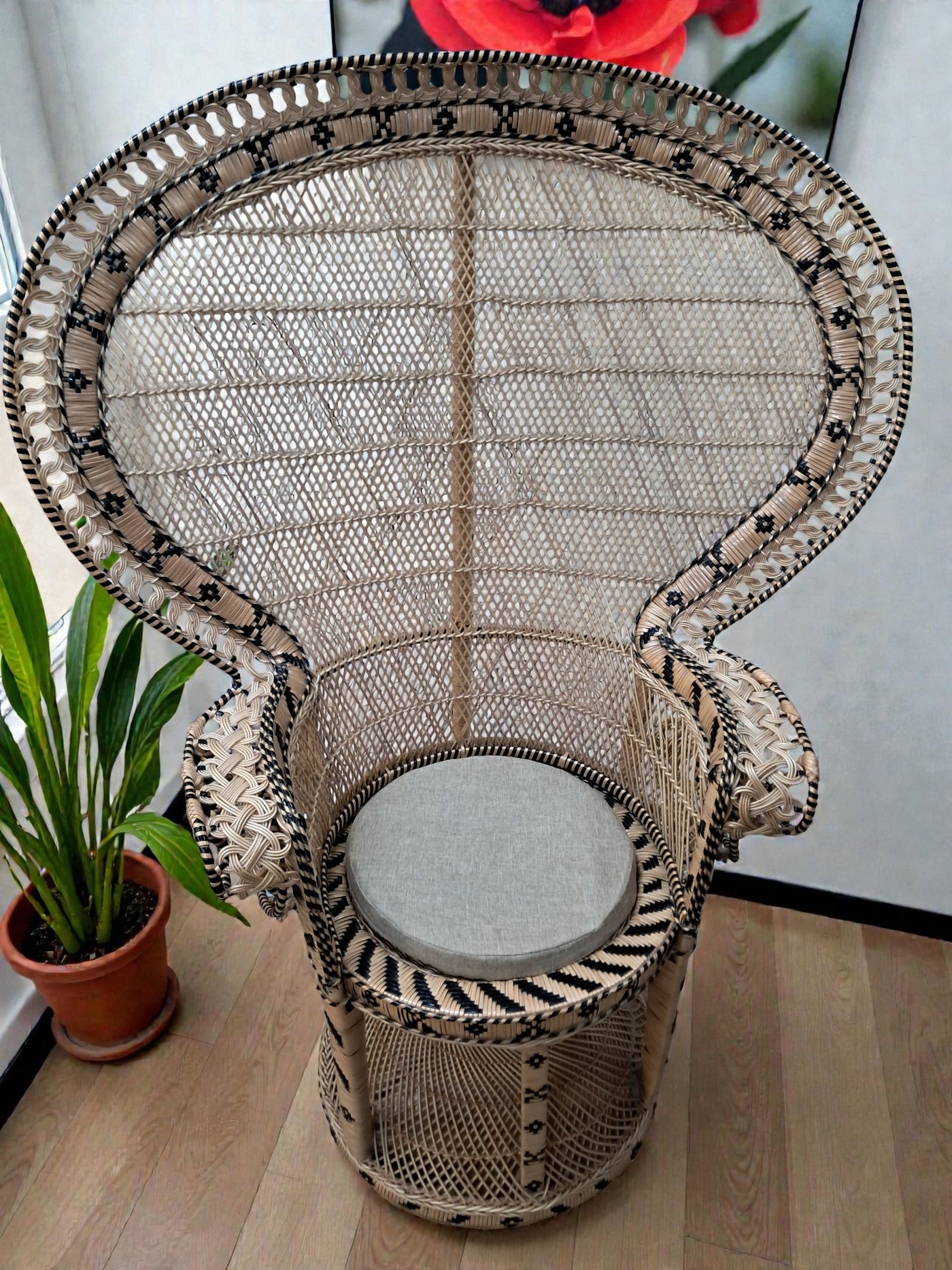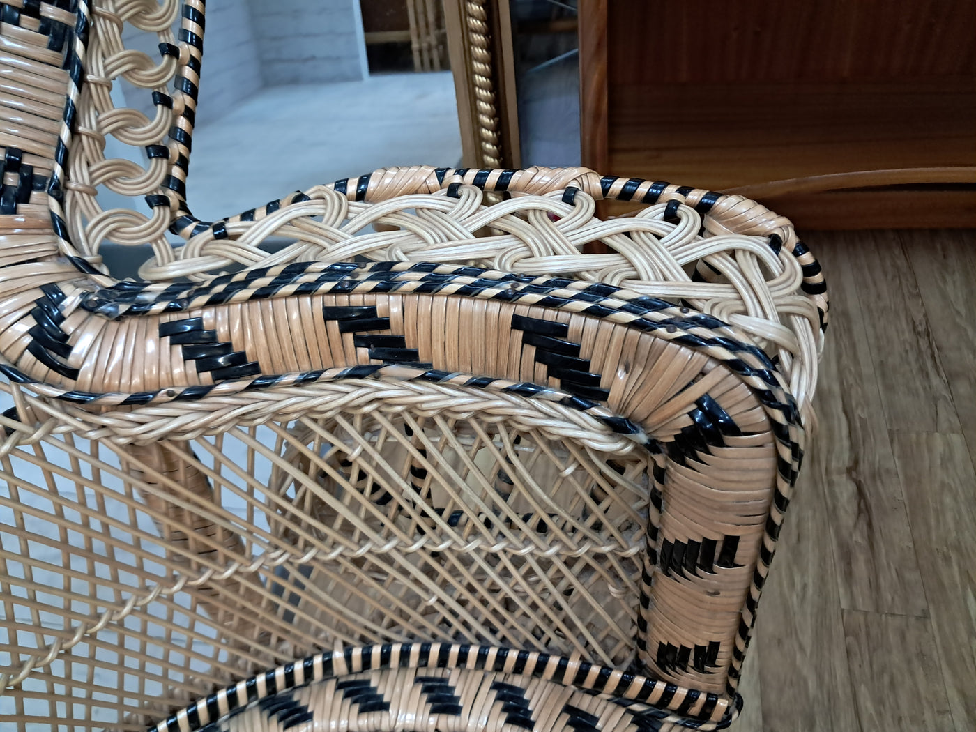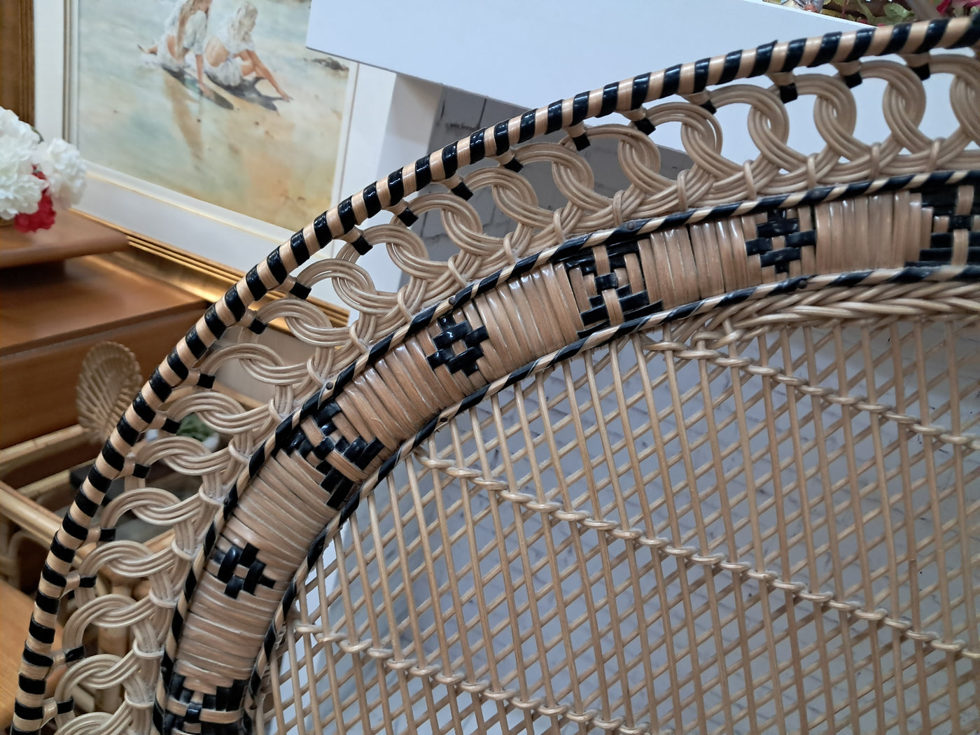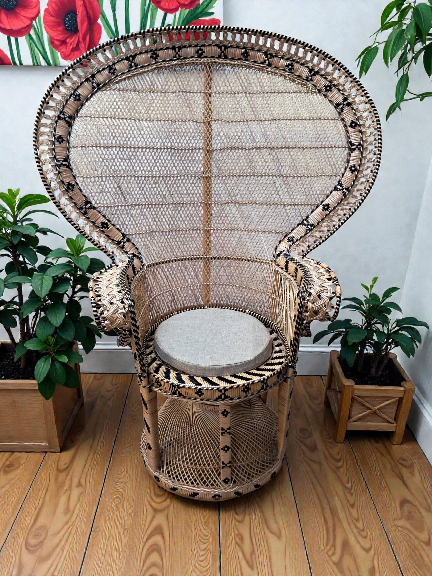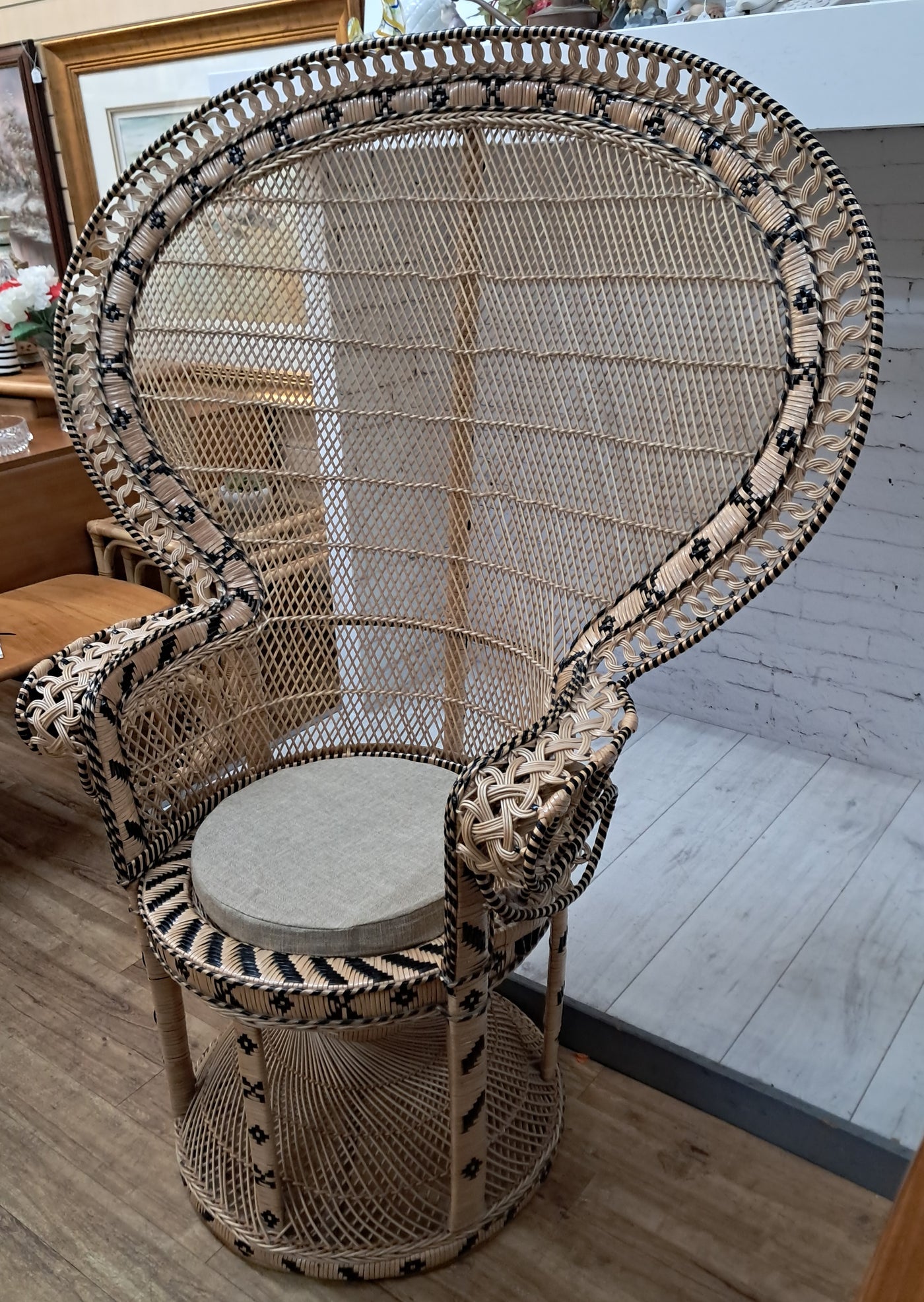 {"id":15563356242298,"title":"Mid Century Peacock Chair Emmanuelle Wicker Throne Rattan Bohemian 1970's LARGE","handle":"vintage-mid-century-white-rattan-peacock-chair-wicker-chair-conservatory-large-copy","description":"\u003cp\u003e\u003cstrong\u003eIconic 1970s Emmanuelle Peacock Chair with Twisted Base\u003c\/strong\u003e\u003c\/p\u003e\n\u003cp\u003eThis beautiful and highly decorative Emmanuelle Peacock Chair dates from the 1970s and is a striking example of this iconic design. Crafted from natural rattan, the chair features the classic high fan-shaped back with intricate woven detailing, elegant scroll arms and a distinctive twisted pedestal base, giving it both visual drama and excellent structural strength.\u003c\/p\u003e\n\u003cp\u003eThe Emmanuelle chair rose to fame through its appearances in popular culture, most notably in The Addams Family and the cult film Emmanuelle. As a result, it is commonly referred to as an “Emmanuelle” chair in France and remains one of the most recognisable and sought-after rattan designs of the 20th century.\u003c\/p\u003e\n\u003cp\u003eThis example is particularly well made and notably heavy, reflecting the quality of materials and craftsmanship. The level of detail throughout the weaving is excellent, from the patterned edging around the backrest to the finely constructed seat and base. The chair is in superb condition, with all rattan intact, tight, and free from damage, making it both decorative and functional.\u003c\/p\u003e\n\u003cp\u003eA removable seat cushion is included, providing added comfort while complementing the natural tones of the rattan.\u003c\/p\u003e\n\u003cp\u003e\u003cstrong\u003eFor Bohemian Beach House Vibes:\u003c\/strong\u003e\u003c\/p\u003e\n\u003cp\u003ePerfect for creating relaxed, bohemian beach house interiors, this Emmanuelle chair brings effortless style and warmth to any space. It works beautifully in a conservatory, where natural light enhances the woven rattan and creates an inviting, tranquil setting for reading or relaxation. Whether placed in a sunroom, coastal living area, bedroom, or styled corner, it evokes laid-back luxury with a hint of 1970s glamour, making it an ideal statement piece for interiors inspired by natural textures and easy living.\u003c\/p\u003e\n\u003cp\u003eA timeless and stylish addition to any home, this piece is perfect for those who appreciate iconic design, as well as interior designers looking to incorporate a bold and elegant focal point into their projects. It would also make an exceptional prop for weddings, photoshoots, and events, or for use within retail spaces, boutique hotels, salons, or hospitality interiors, where its instantly recognisable silhouette adds character, drama, and visual impact.\u003c\/p\u003e\n\u003cp\u003e\u003cstrong\u003eMeasurements: (approx)\u003c\/strong\u003e\u003cbr\u003eOverall: 147cm Height x 56 cm depth 113cm width\u003cbr\u003eHeight to seat: 46cm with cushion: 51cm\u003cbr\u003eSeat: Width 50cm x Depth: 50cm \u003c\/p\u003e\n\u003cp\u003eThis peacock chair is truly magnificent and will look very regal in any beach house, home interior, garden room, business reception or entryway, designer home interior.\u003c\/p\u003e\n\u003cp\u003eFor discerning lovers of bohemian vintage and interior connoisseurs, this piece offers an unparalleled blend of comfort and prestige. \u003c\/p\u003e\n\u003cp\u003eAll of our furniture has been restored\/upcycled or professionally cleaned with care and attention using quality paints and materials. \u003c\/p\u003e\n\u003cp\u003eOur motto is to reuse and recycle these wonderful antique and vintage items so that they get a new lease of life and at the same time you will have a unique, personal item of good quality in your home that will also contribute to the world's carbon footprint. We owe it to our future generations NOT to be a throwaway society.\u003c\/p\u003e\n\u003cp\u003eFREE collection is available from our shop by appointment only. Viewing by appointment - 01895 675596\u003c\/p\u003e\n\u003cp\u003eWe can offer local delivery please message for quote\u003cbr\u003eThe delivery quoted in this listing is for mainland UK only.\u003cbr\u003ePlease contact us for a delivery quote to Cornwall, Scotland, Highlands or Islands or Offshore UK, Northern Ireland, Jersey, Guernsey, IOW, etc as it may be more than the price quote.\u003c\/p\u003e\n\u003cp\u003eCourier price quoted is for one man courier to ground floor level only – help will be needed your end. Timed and exact delivery day requests are not available but delivery will normally be within a two week window. If you wish to have a two man courier then we can give you a quote for this.\u003c\/p\u003e\n\u003cp\u003eThis item is available to view at our showroom RetroNovia, 12 New Pond Parade, West End Road, Ruislip Gardens, Middlesex HA4 6LR . Please call us on 01895 675596 to make sure the item is available before coming to view.\u003c\/p\u003e\n\u003cp\u003eWe are located easy access from London and Oxford and are directly off the Main A40 Polish War memorial junction.\u003c\/p\u003e","published_at":"2025-12-17T15:52:43+00:00","created_at":"2025-12-17T15:52:43+00:00","vendor":"RetroNovia","type":"Peacock Chair","tags":["Chair","Peacock Chair","Rattan Chair","Wicker Chair"],"price":52500,"price_min":52500,"price_max":52500,"available":true,"price_varies":false,"compare_at_price":55000,"compare_at_price_min":55000,"compare_at_price_max":55000,"compare_at_price_varies":false,"variants":[{"id":56349986521466,"title":"Default Title","option1":"Default Title","option2":null,"option3":null,"sku":"1555","requires_shipping":true,"taxable":false,"featured_image":null,"available":true,"name":"Mid Century Peacock Chair Emmanuelle Wicker Throne Rattan Bohemian 1970's LARGE","public_title":null,"options":["Default Title"],"price":52500,"weight":70000,"compare_at_price":55000,"inventory_management":"shopify","barcode":null,"requires_selling_plan":false,"selling_plan_alloca